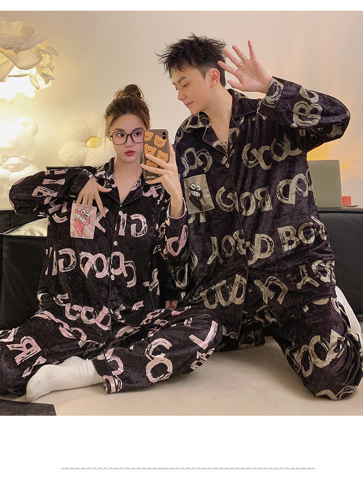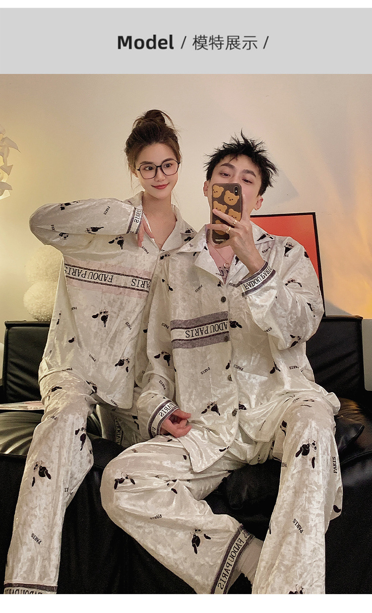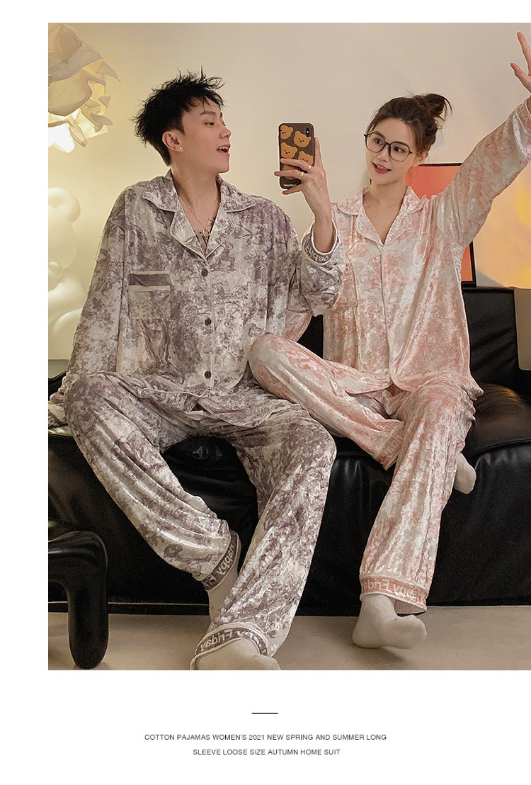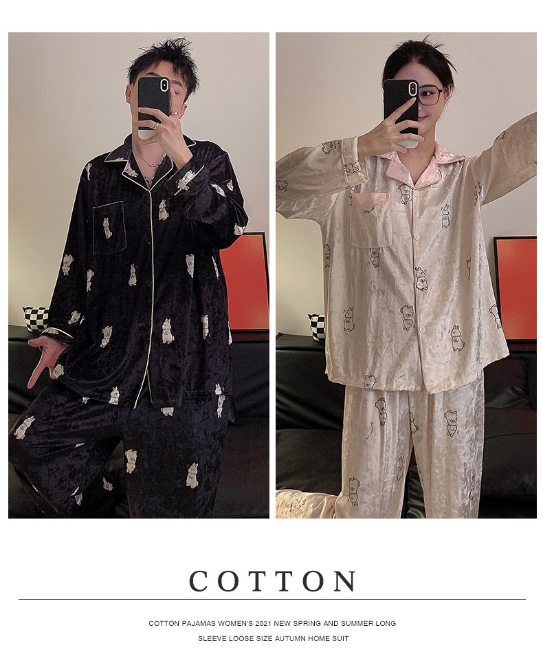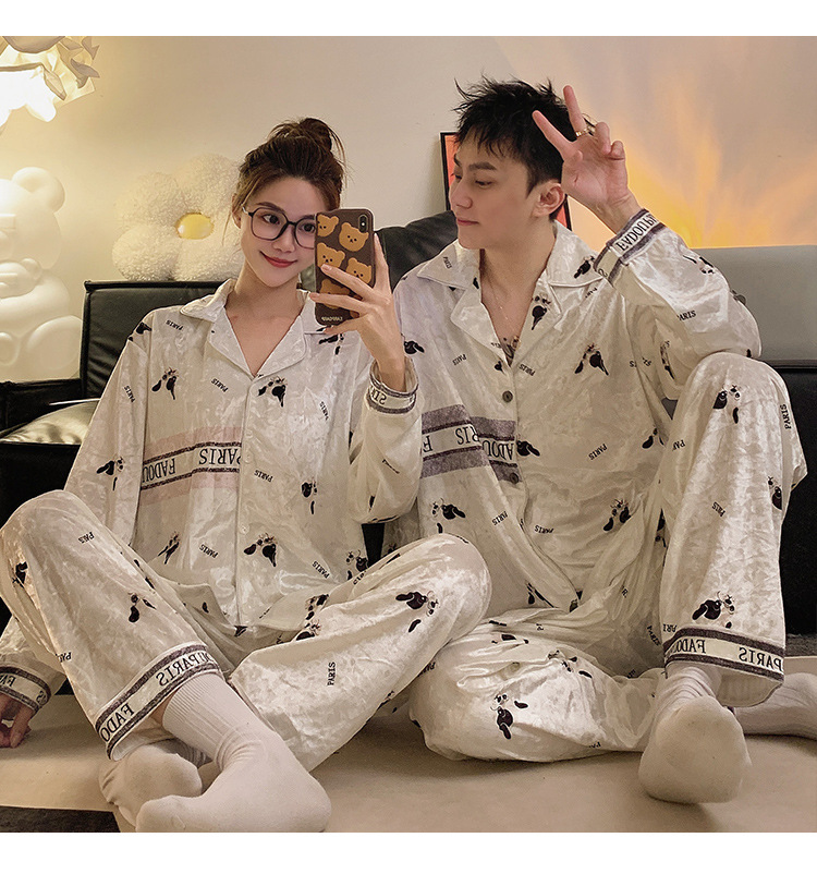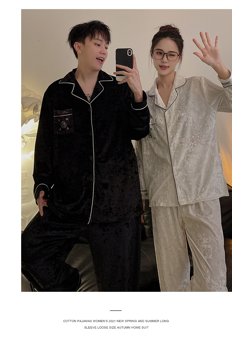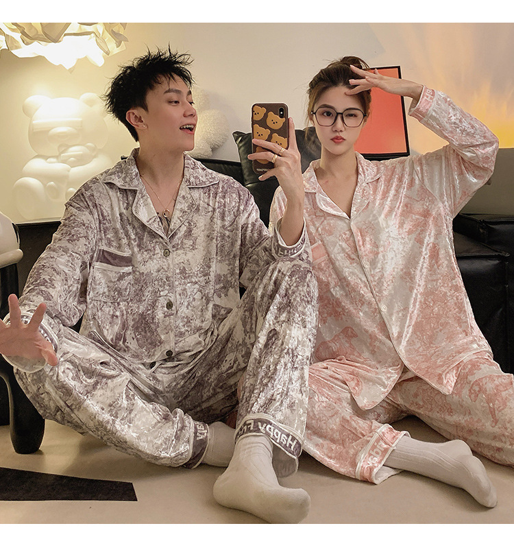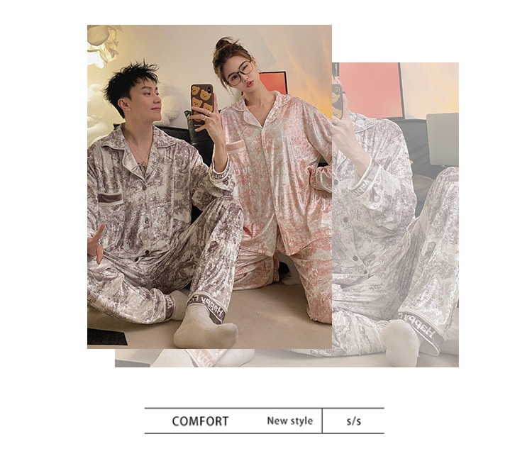 Pajamas de pareja primavera y otoño de terciopelo dorado de mangas largas de alta calidad para mujeres 2024 nuevo lindo hombre ropa de invierno para el hogar