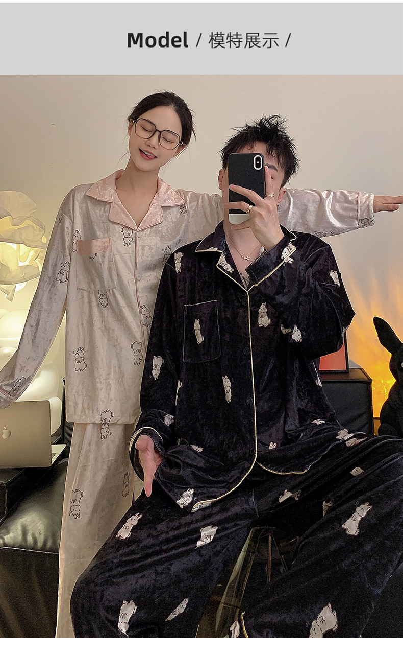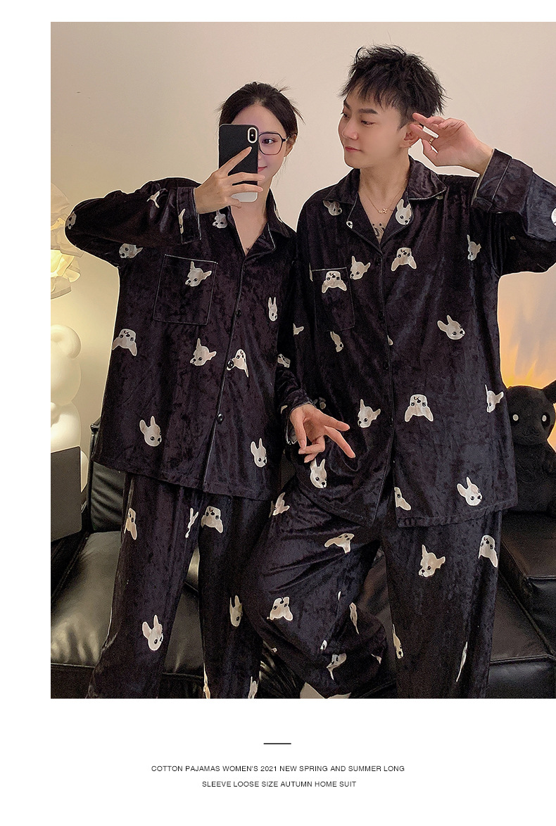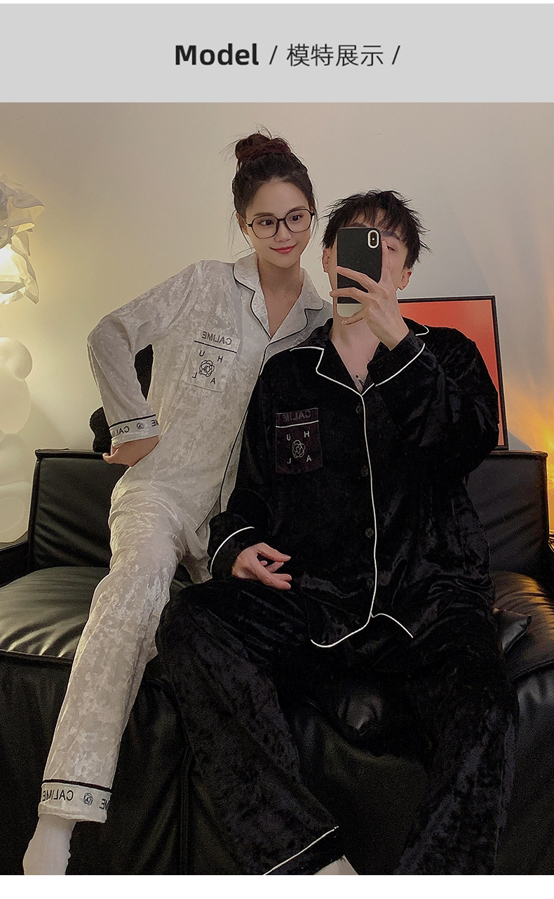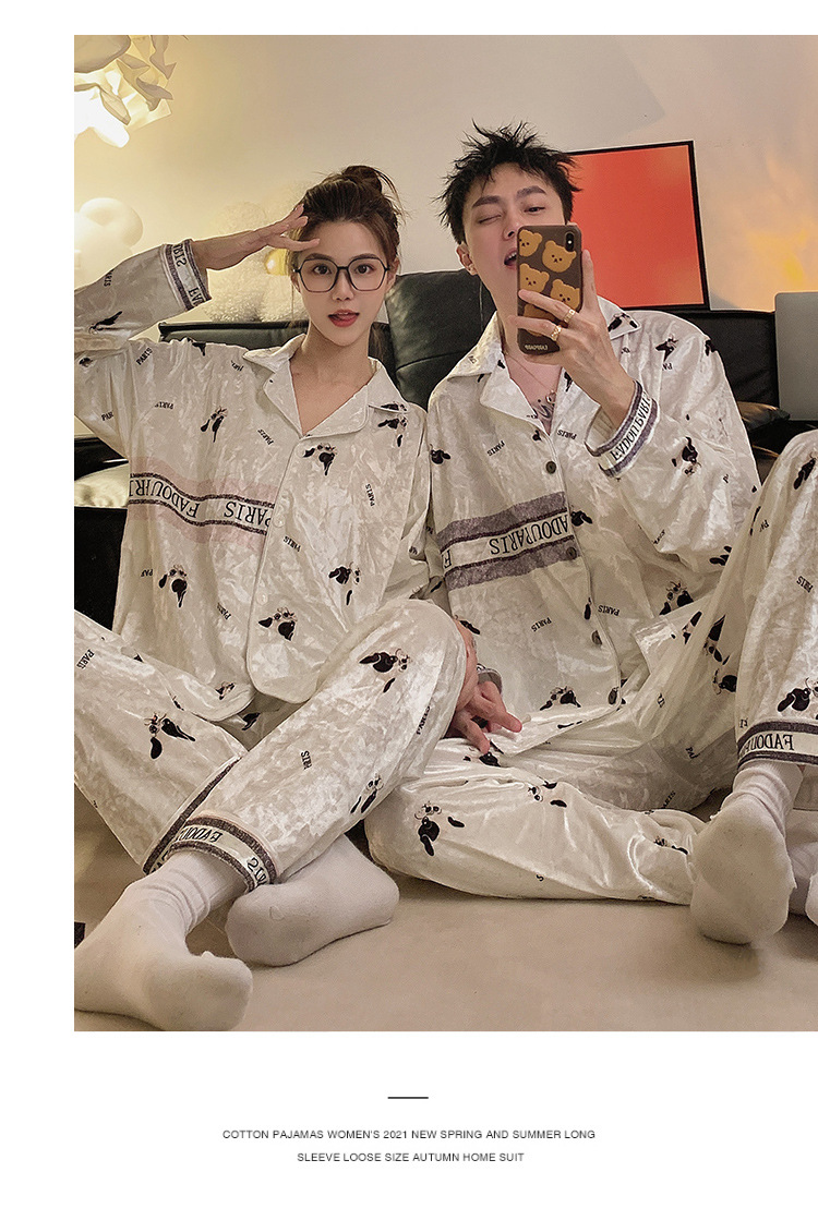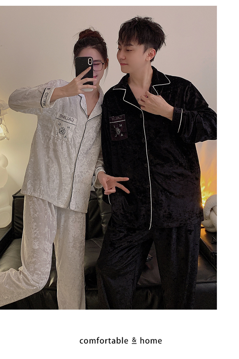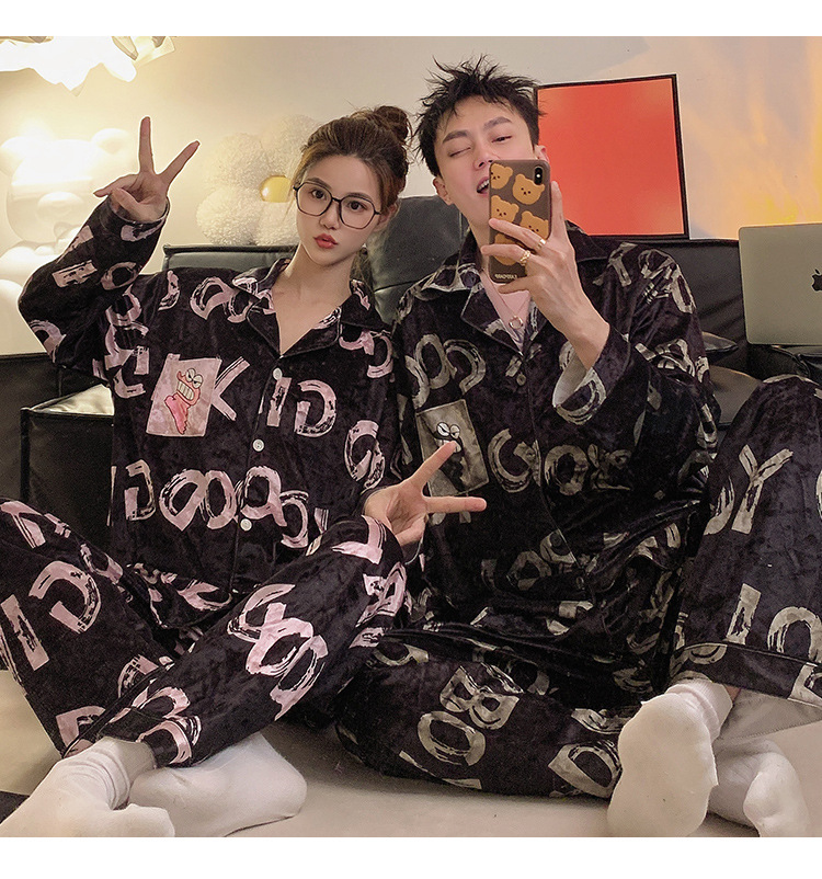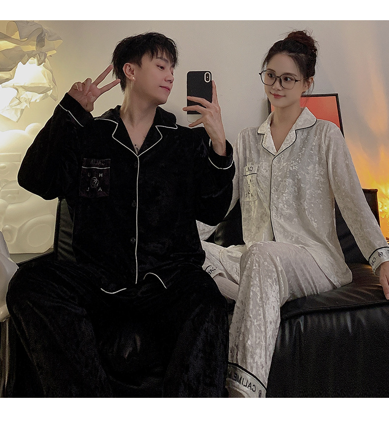 Pajamas de pareja primavera y otoño de terciopelo dorado de mangas largas de alta calidad para mujeres 2024 nuevo lindo hombre ropa de invierno para el hogar