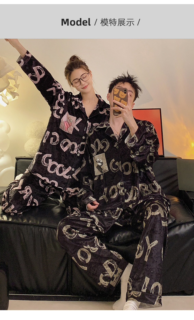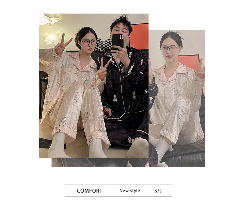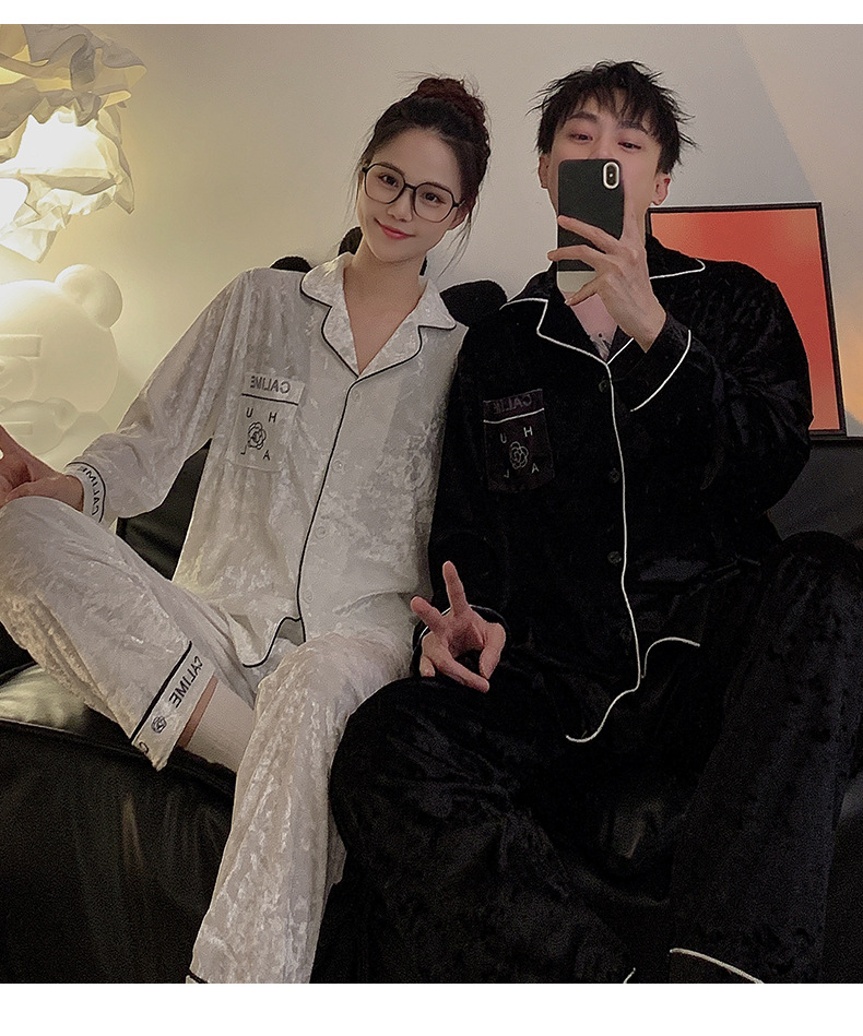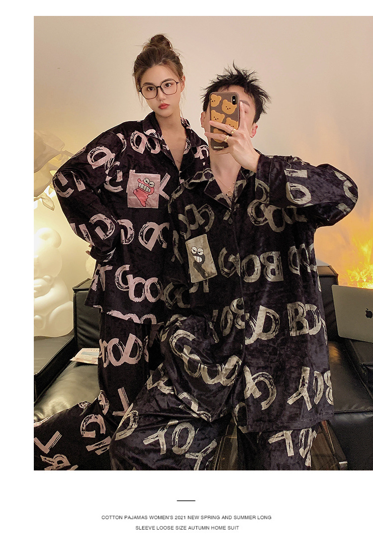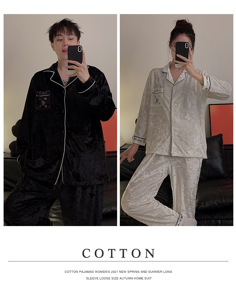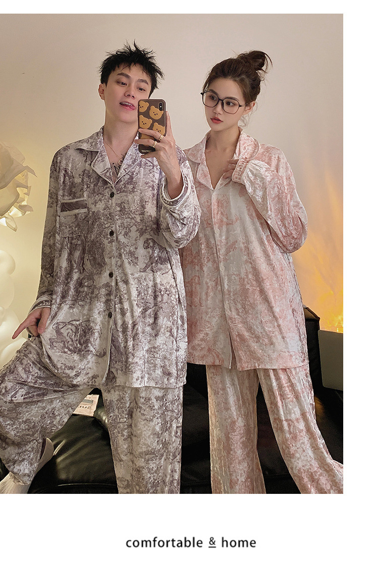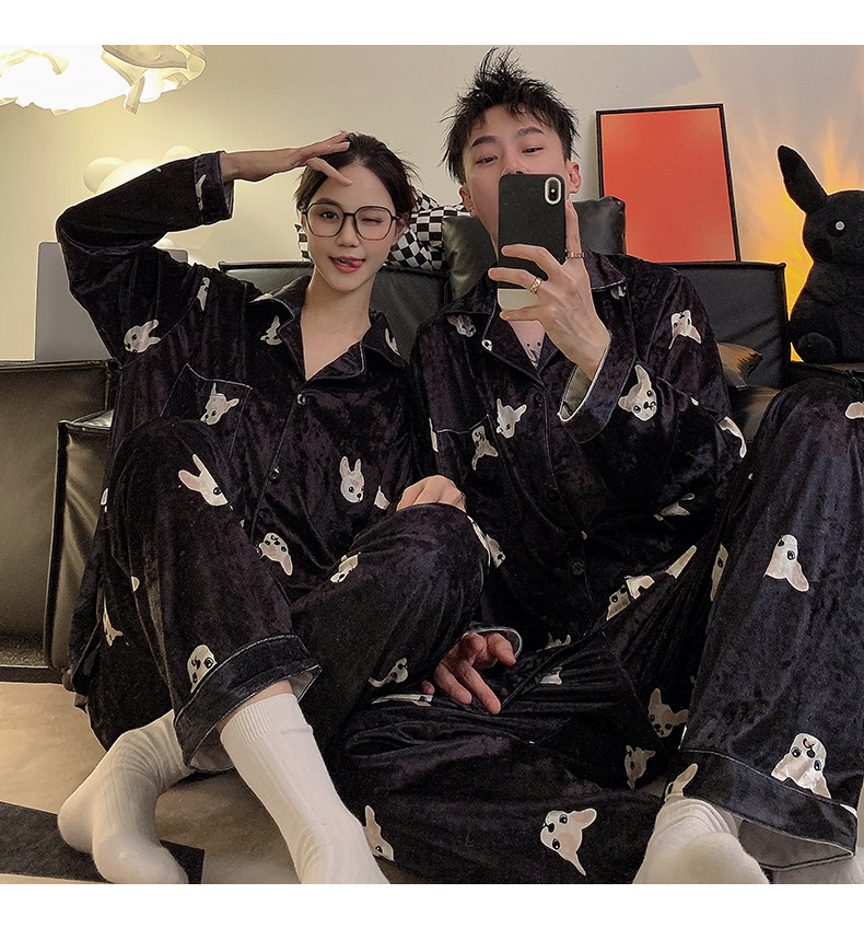 Pajamas de pareja primavera y otoño de terciopelo dorado de mangas largas de alta calidad para mujeres 2024 nuevo lindo hombre ropa de invierno para el hogar