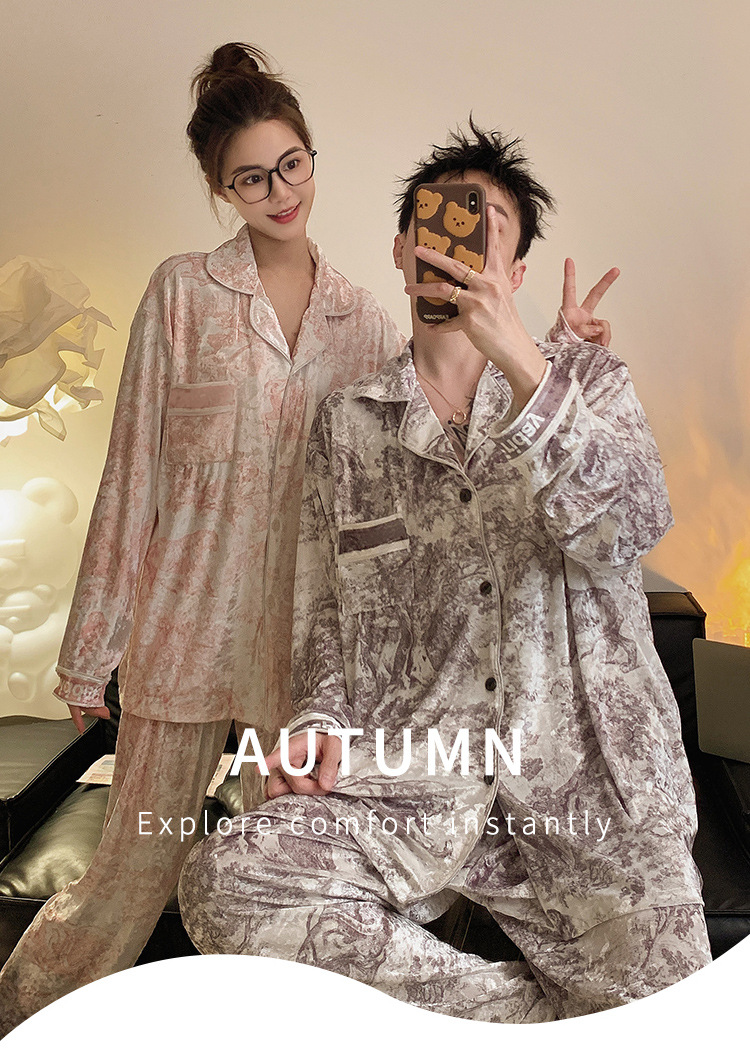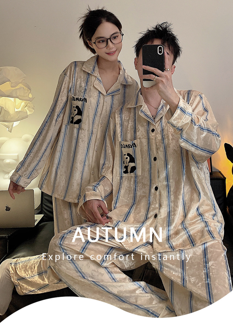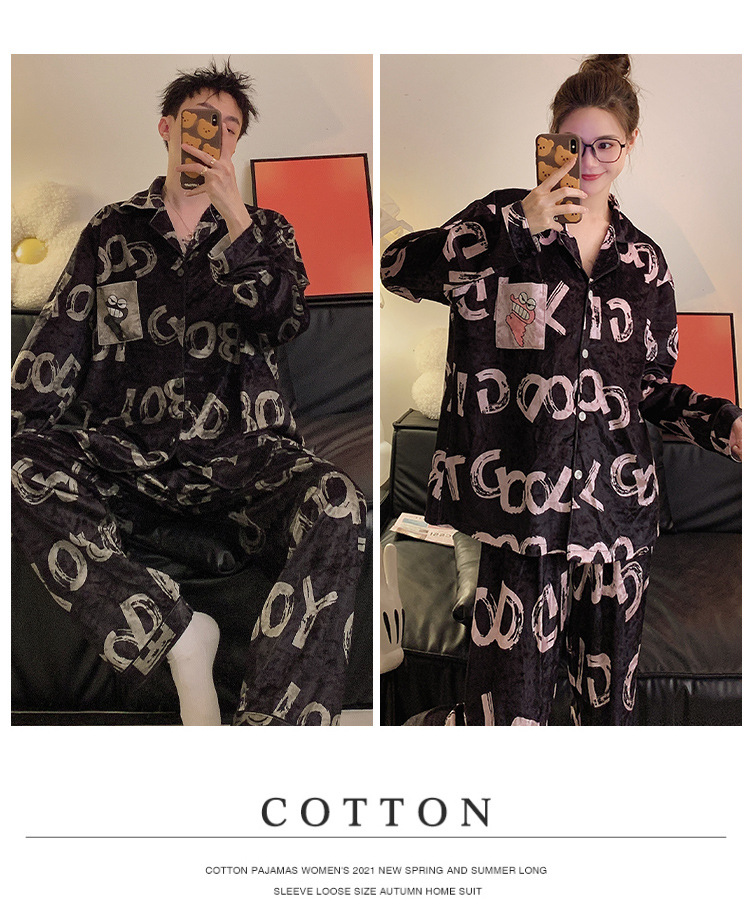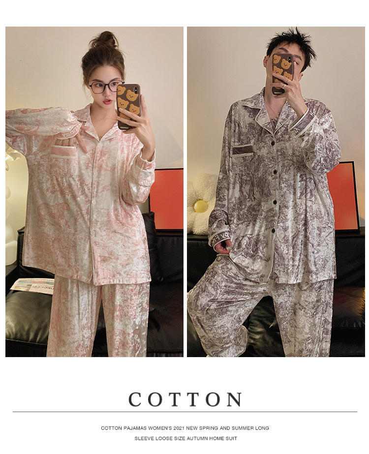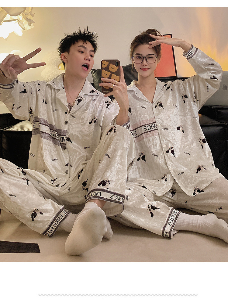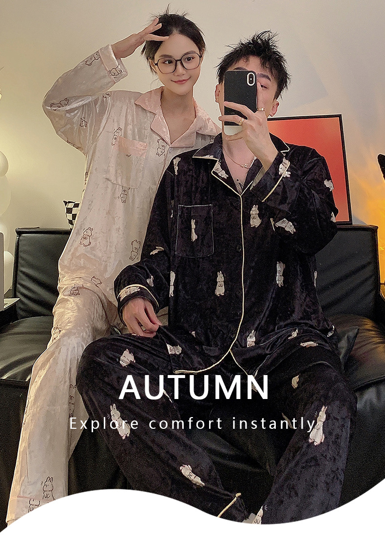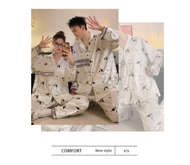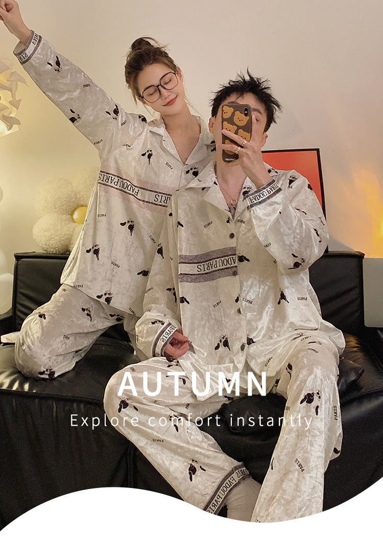 Pajamas de pareja primavera y otoño de terciopelo dorado de mangas largas de alta calidad para mujeres 2024 nuevo lindo hombre ropa de invierno para el hogar