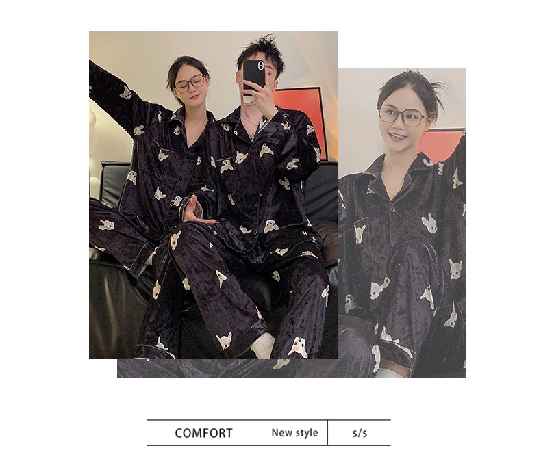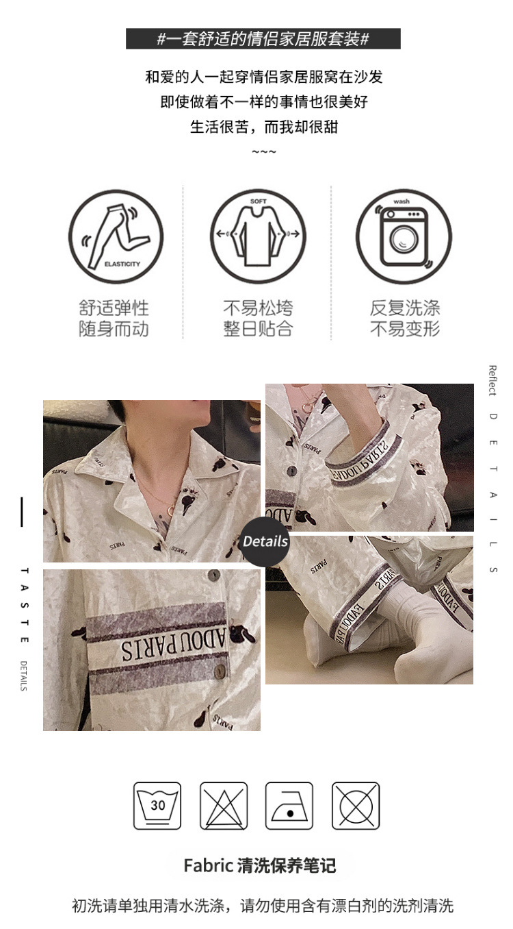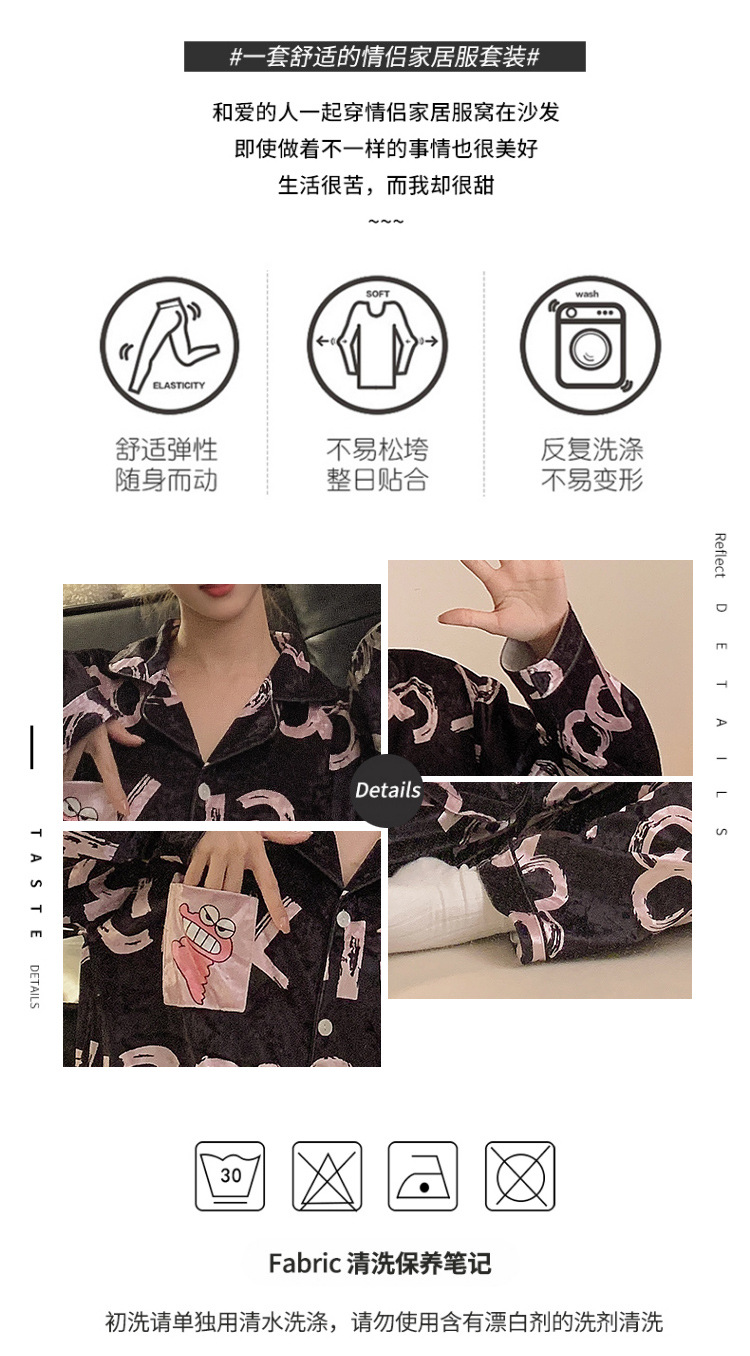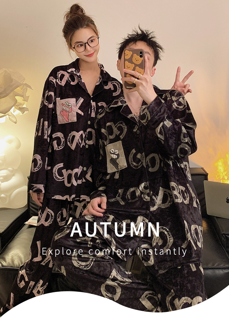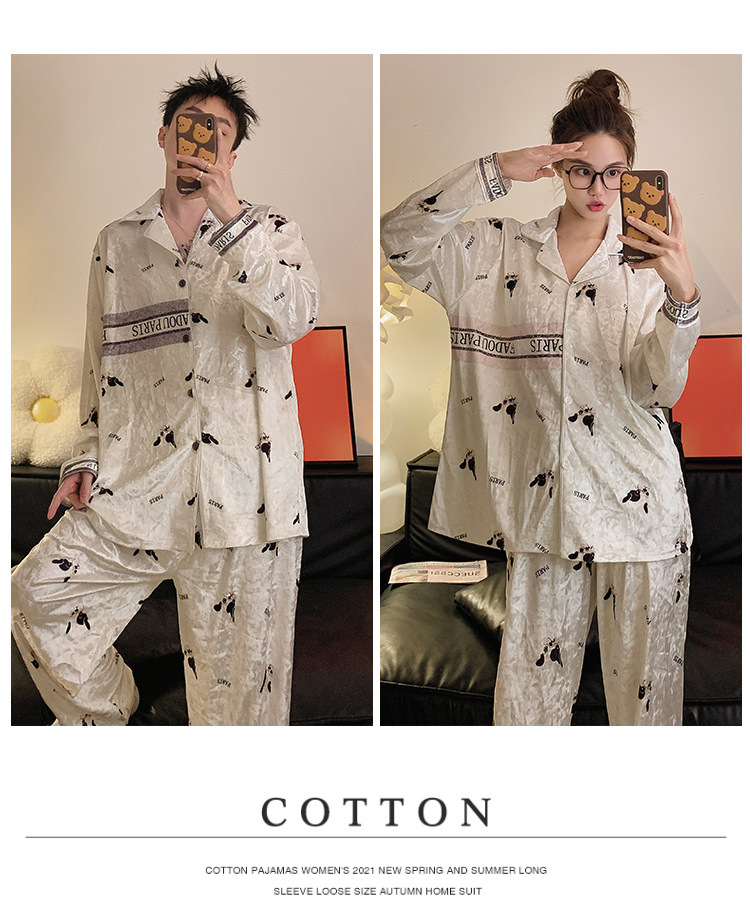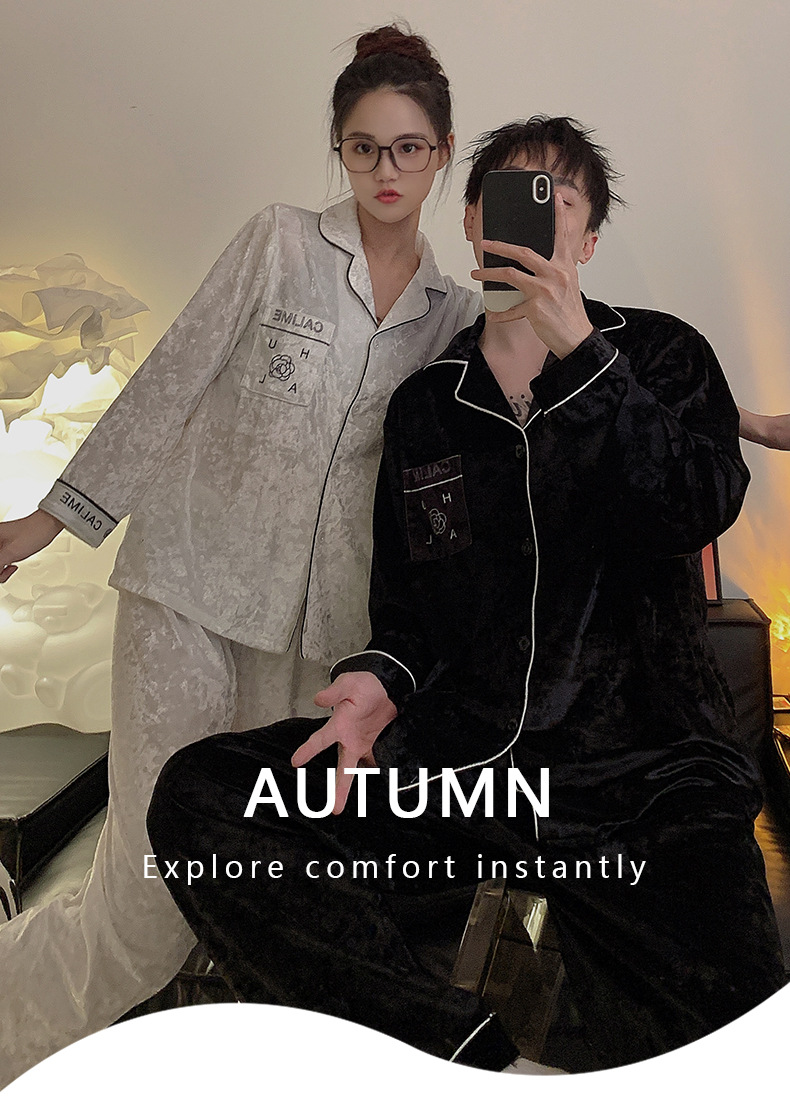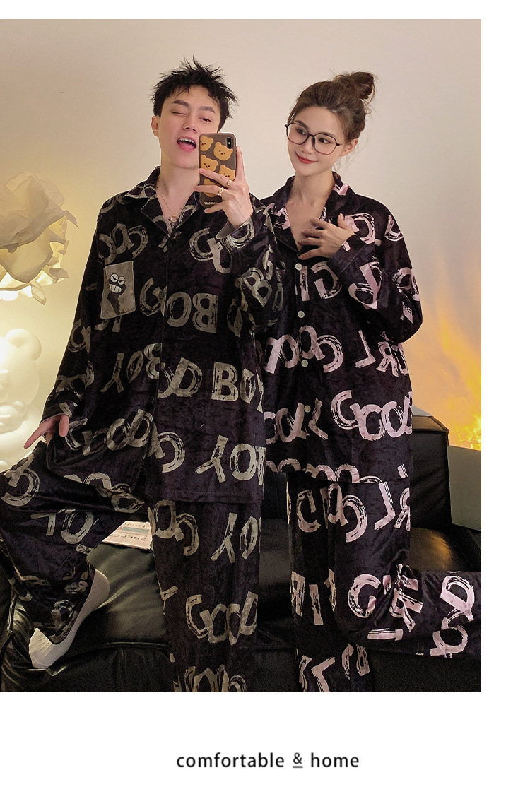 Pajamas de pareja primavera y otoño de terciopelo dorado de mangas largas de alta calidad para mujeres 2024 nuevo lindo hombre ropa de invierno para el hogar