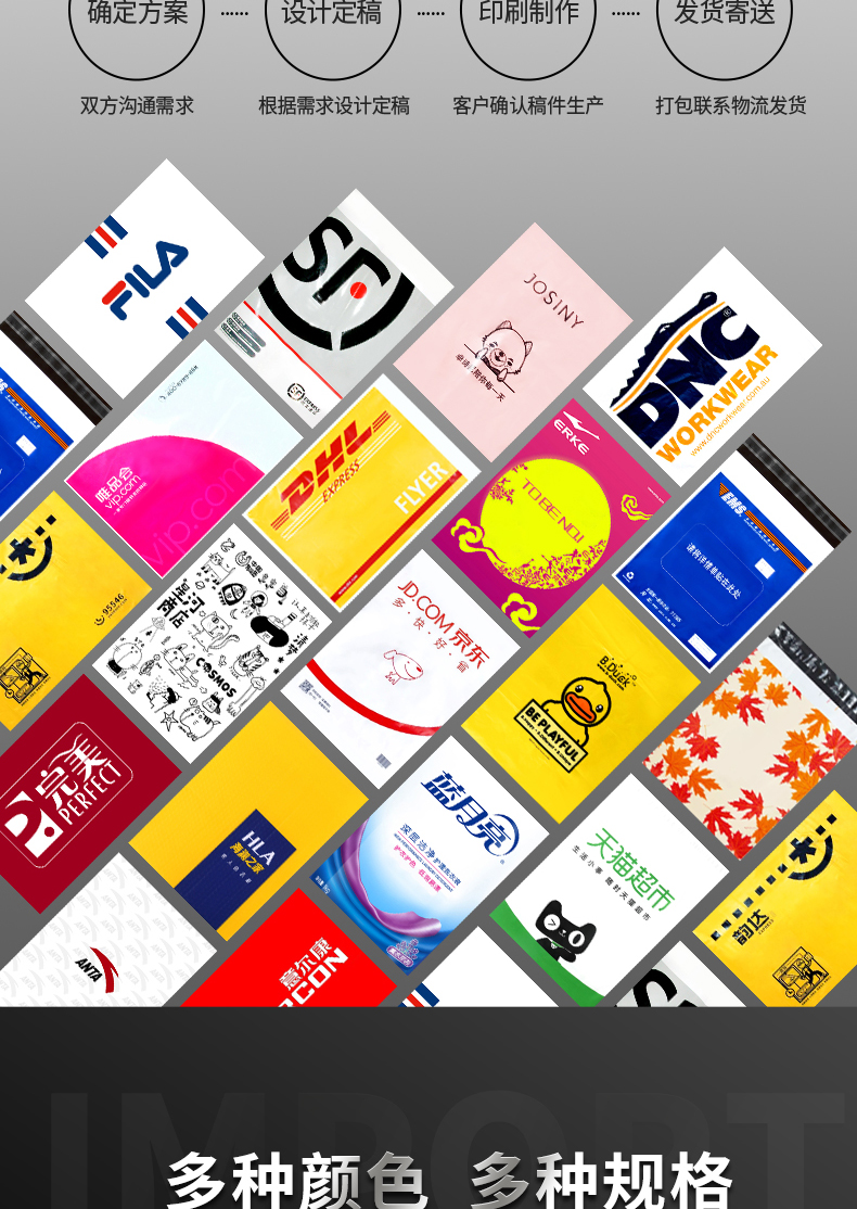 Nuevo material expreso bolsa de embalaje de espesamiento impermeable azul púrpura blanco bolsa de embalaje logístico paquete completo al por mayor fijo