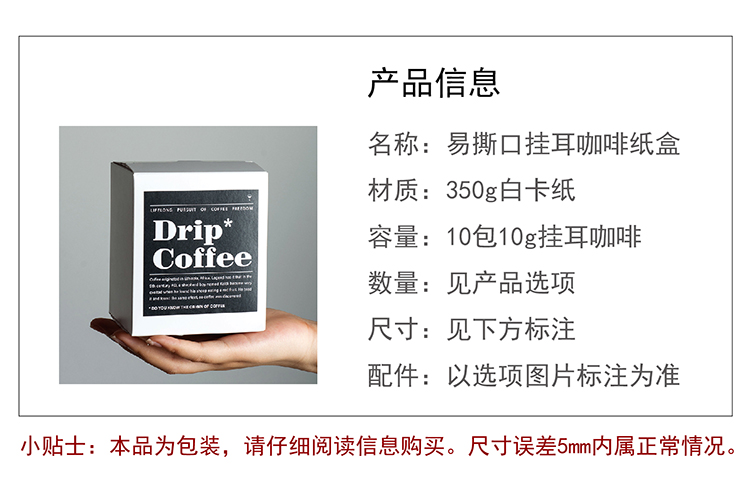 Caja de embalaje de café cuelga fácil de rasgar caja de papel en blanco bolsa de té caja de regalo pequeña caja de dulces DIY se puede personalizar