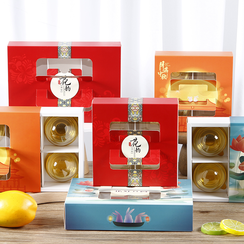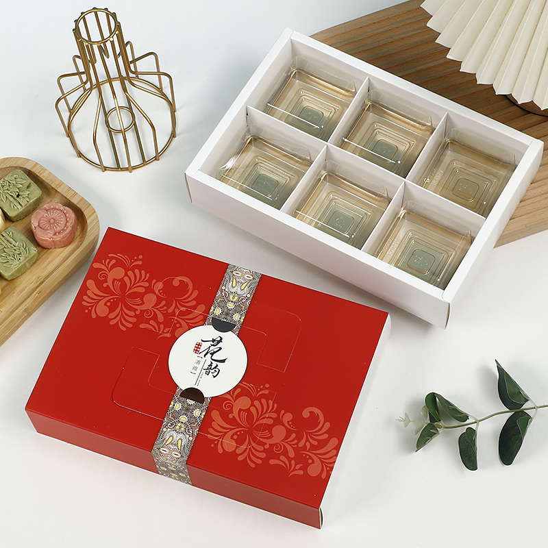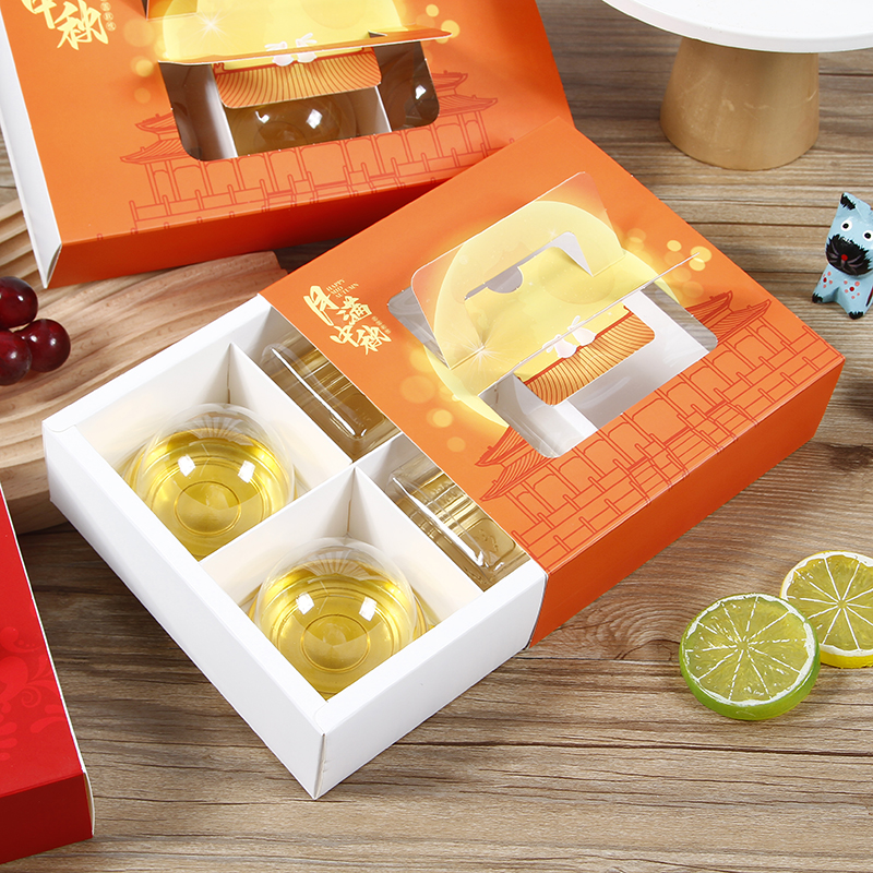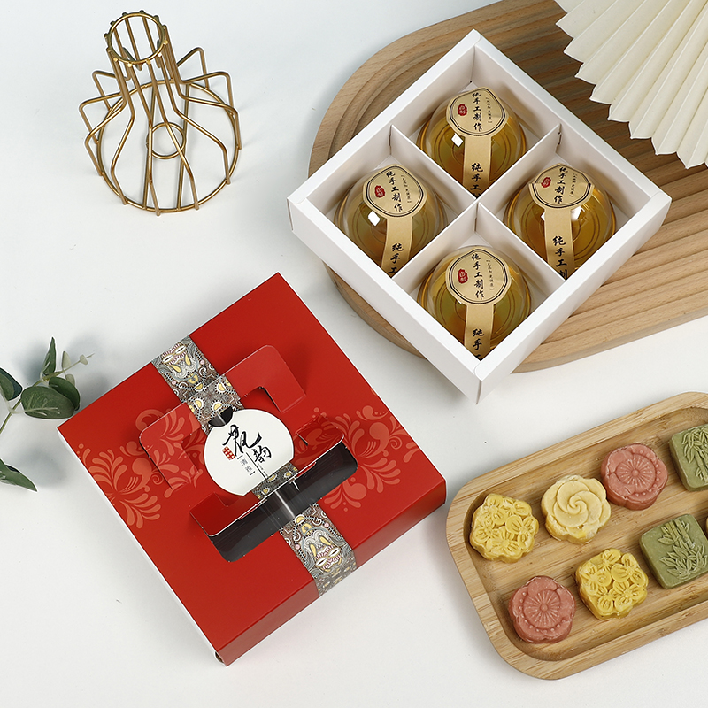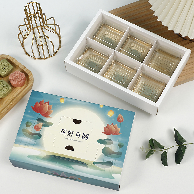 Caja de pastel de luna de mediodía de otoño, caja de embalaje portátil de yemas de huevo, caja de regalo de 4 / 6 cápsulas, belleza de nieve, flores de nieve, 80g.