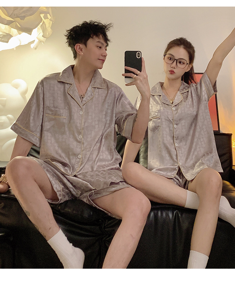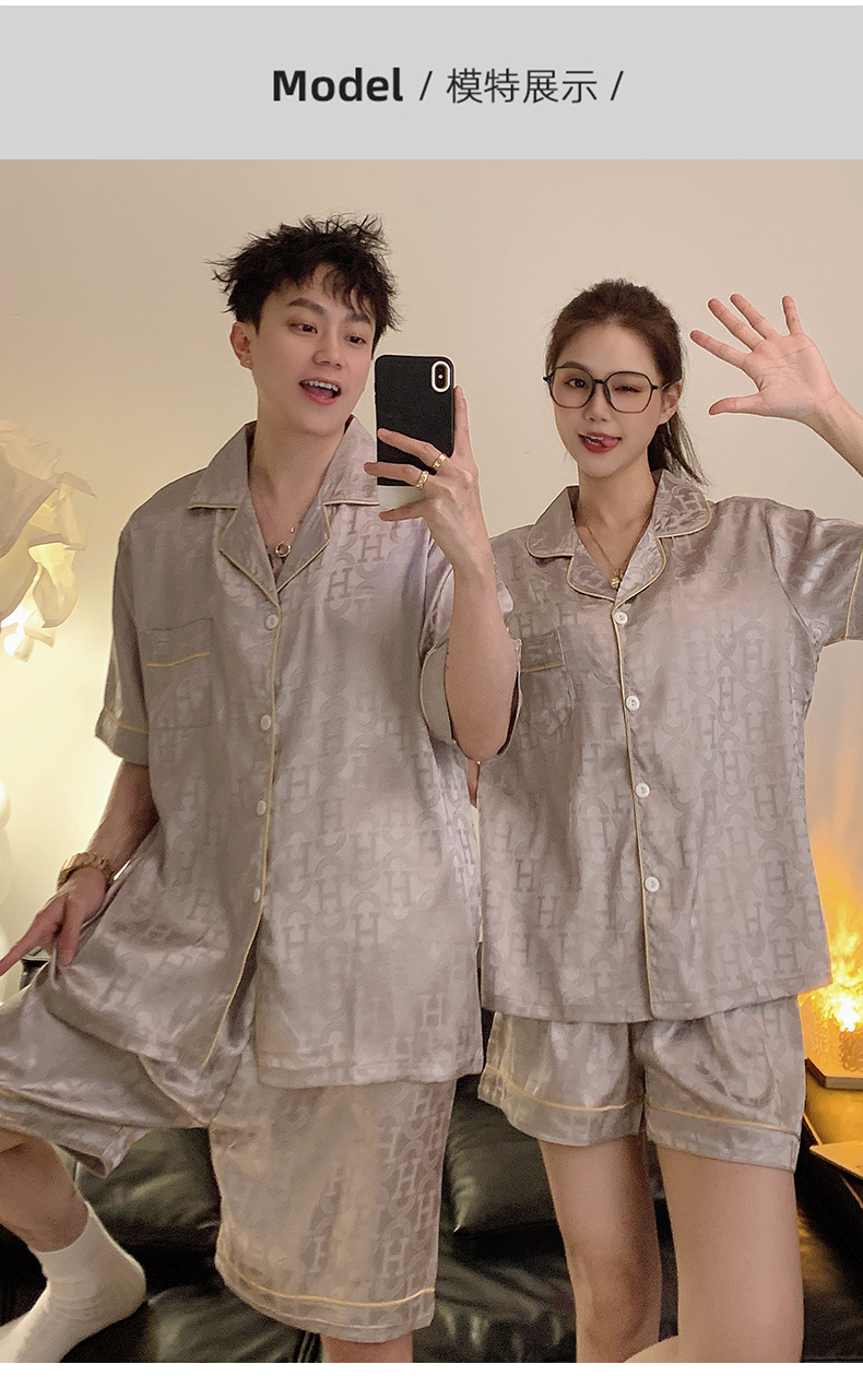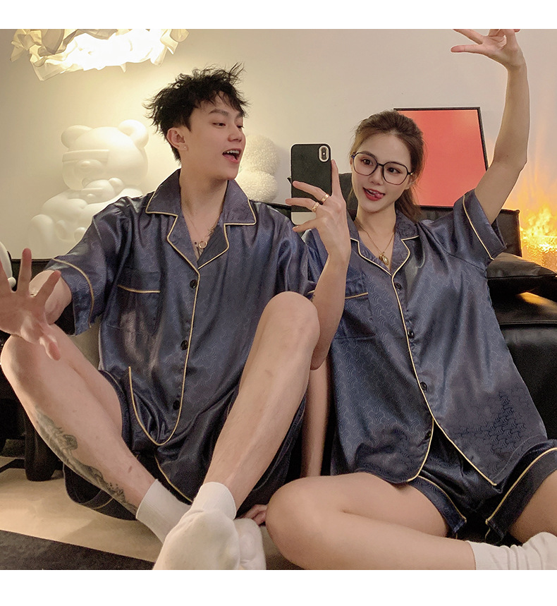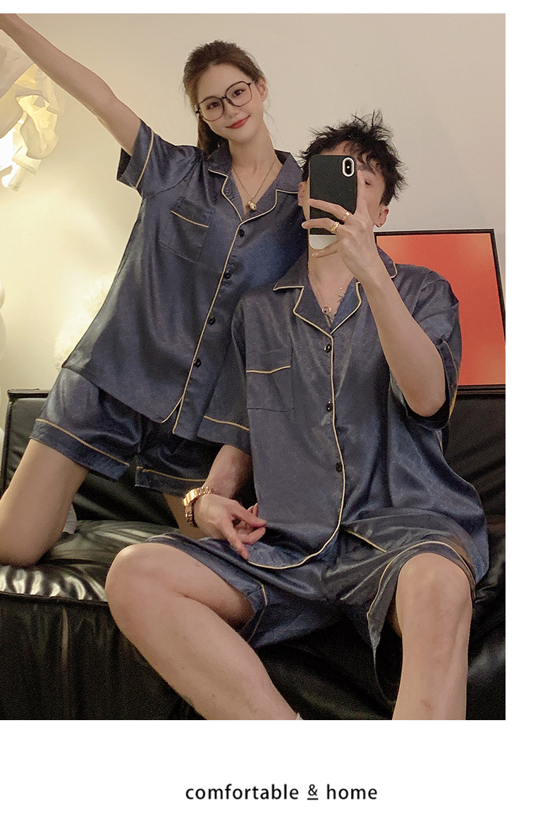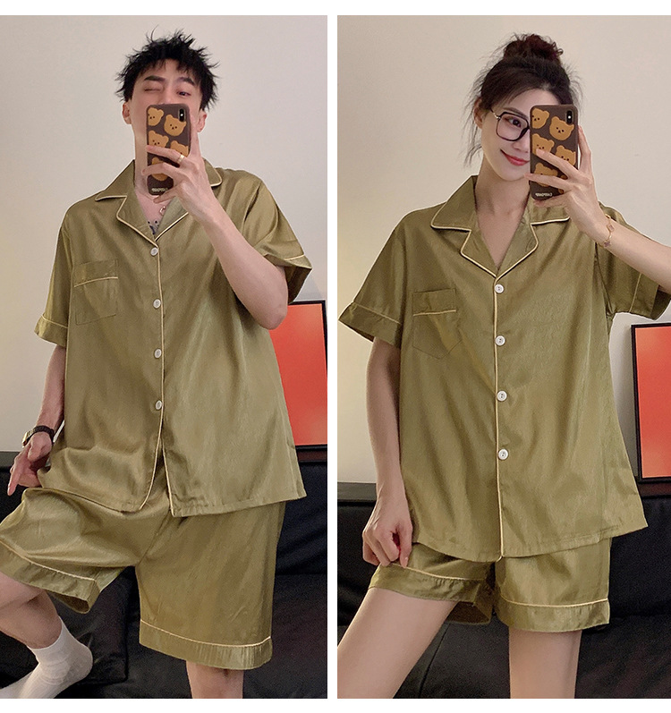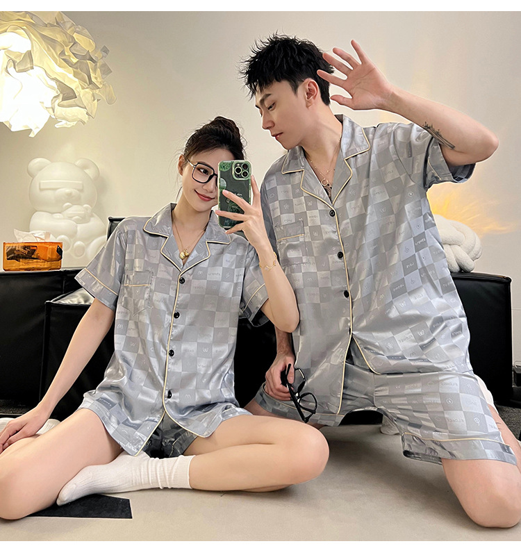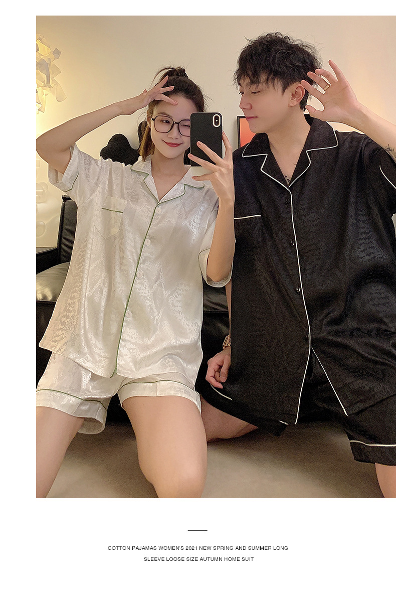 Pajamas de pareja de seda de alto nivel de verano de mujeres de manga corta grande set de seda delgada de verano ropa para el hogar de hombres