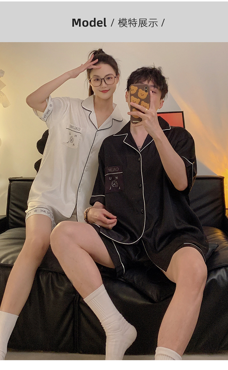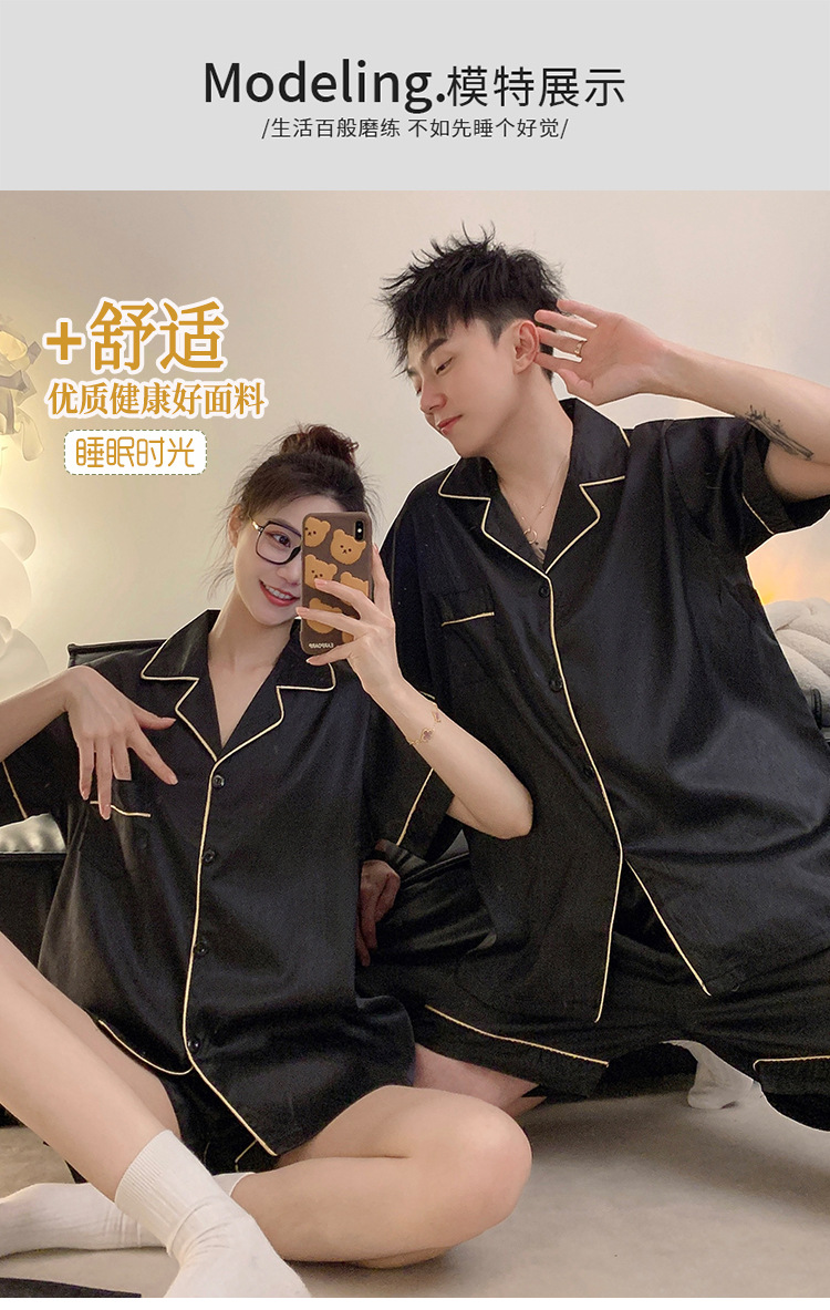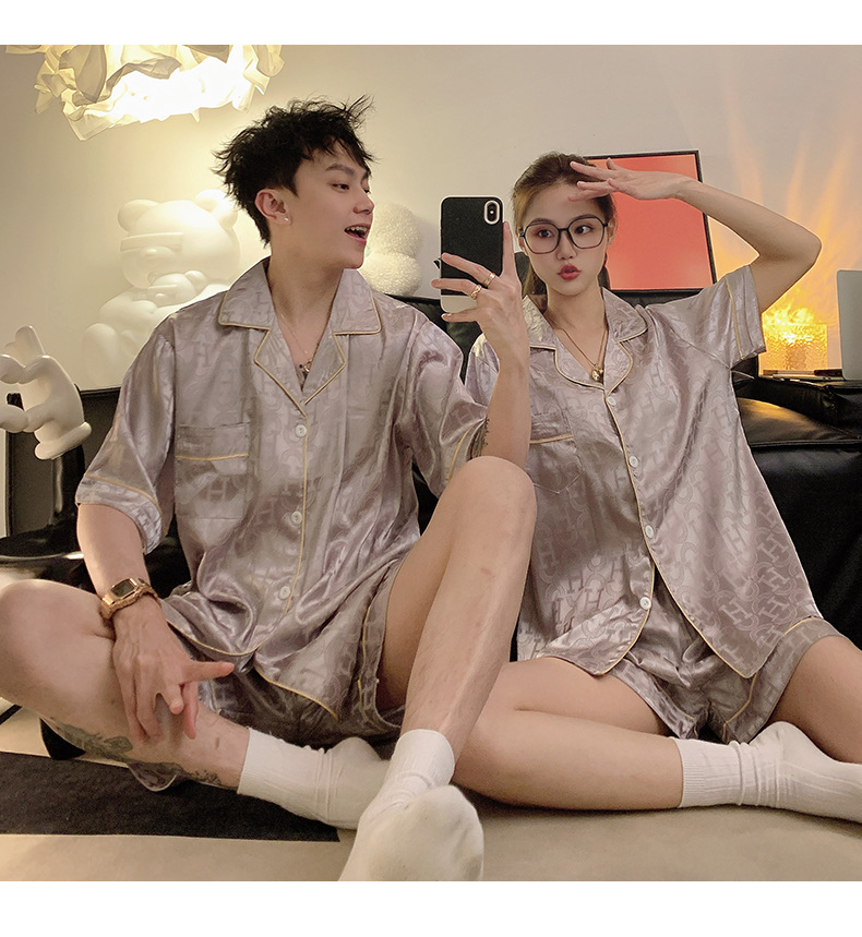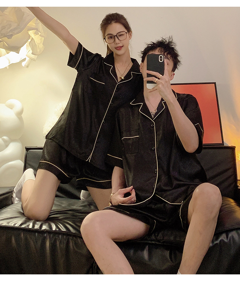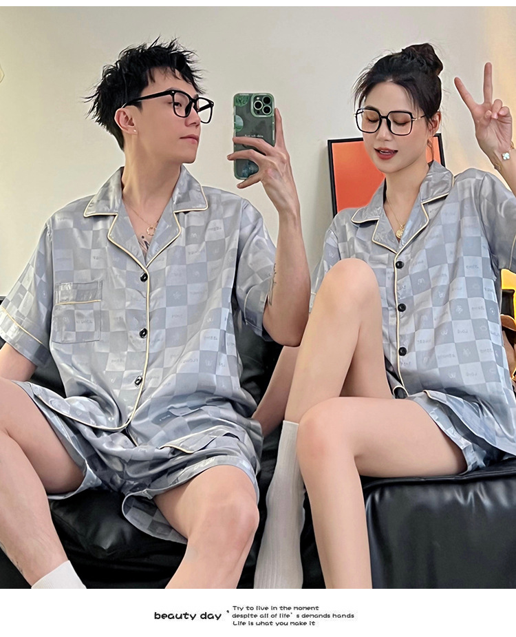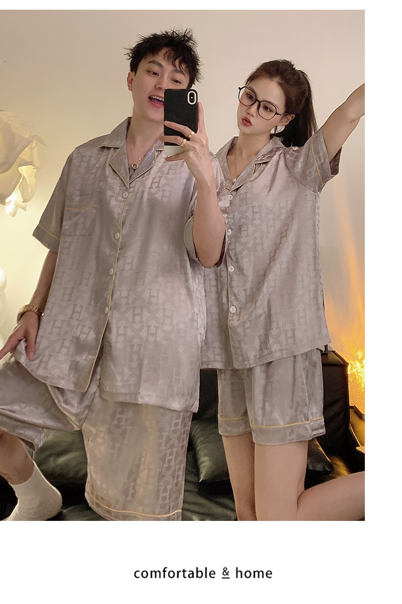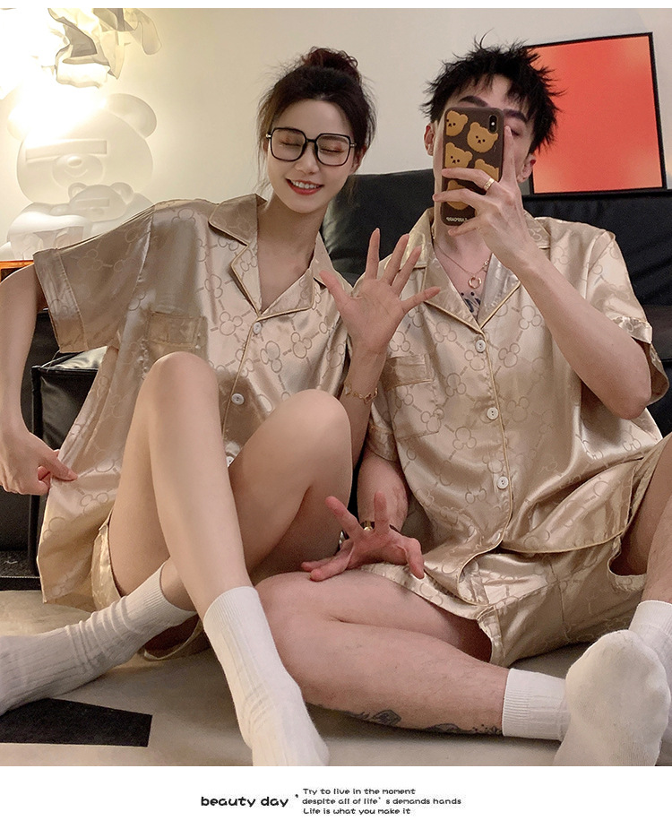 Pajamas de pareja de seda de alto nivel de verano de mujeres de manga corta grande set de seda delgada de verano ropa para el hogar de hombres