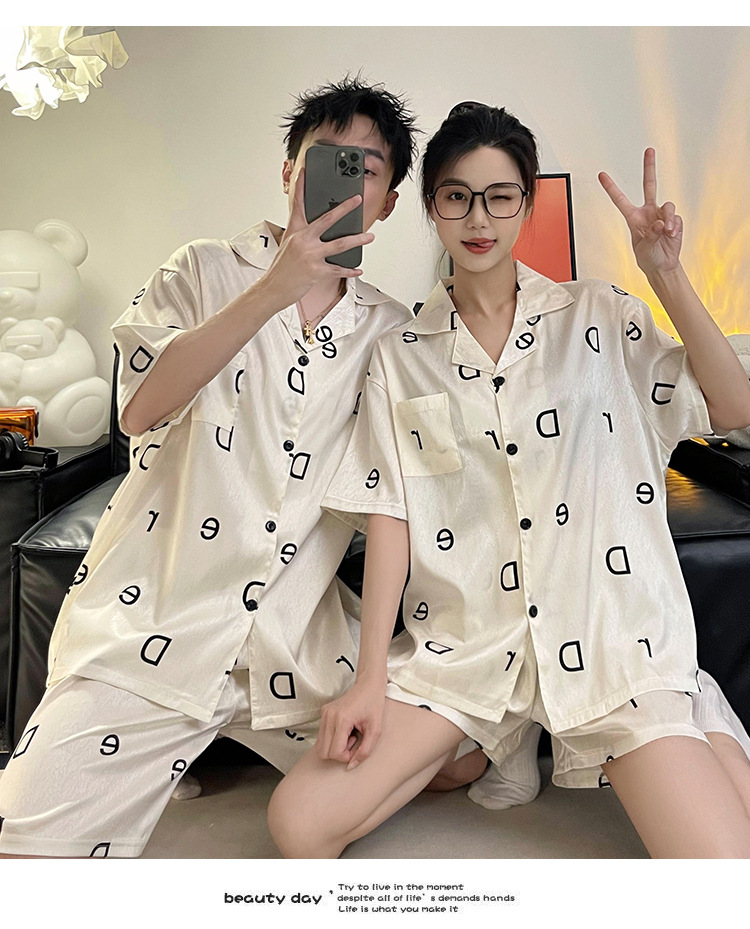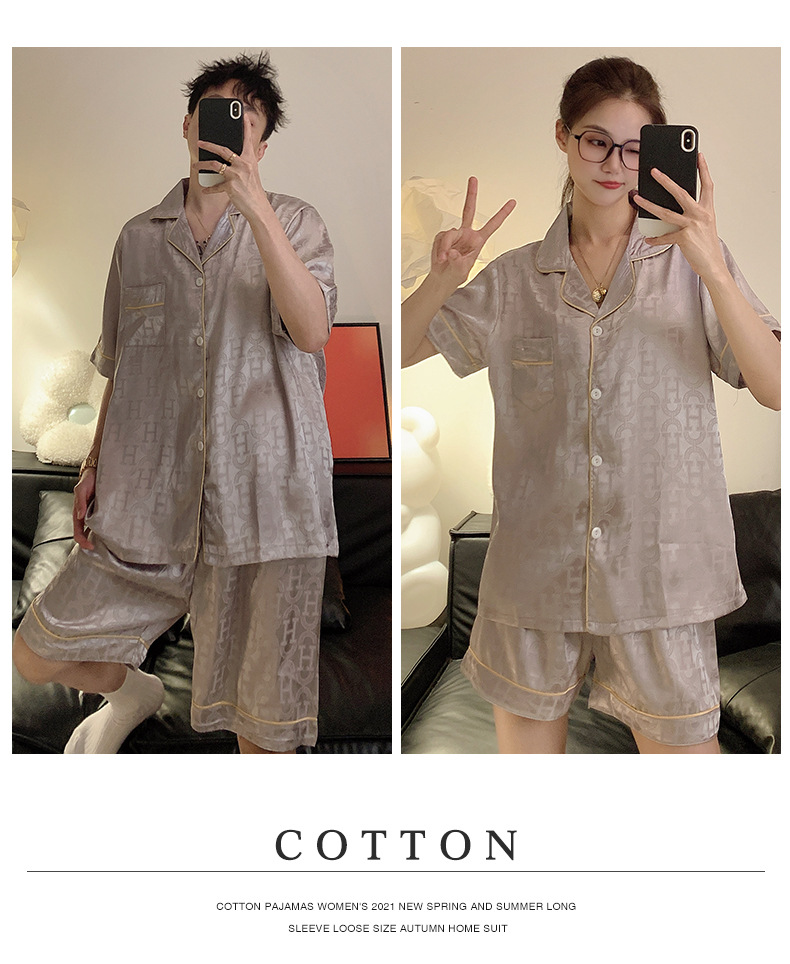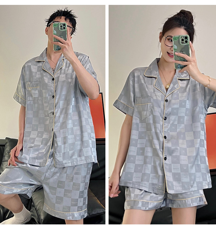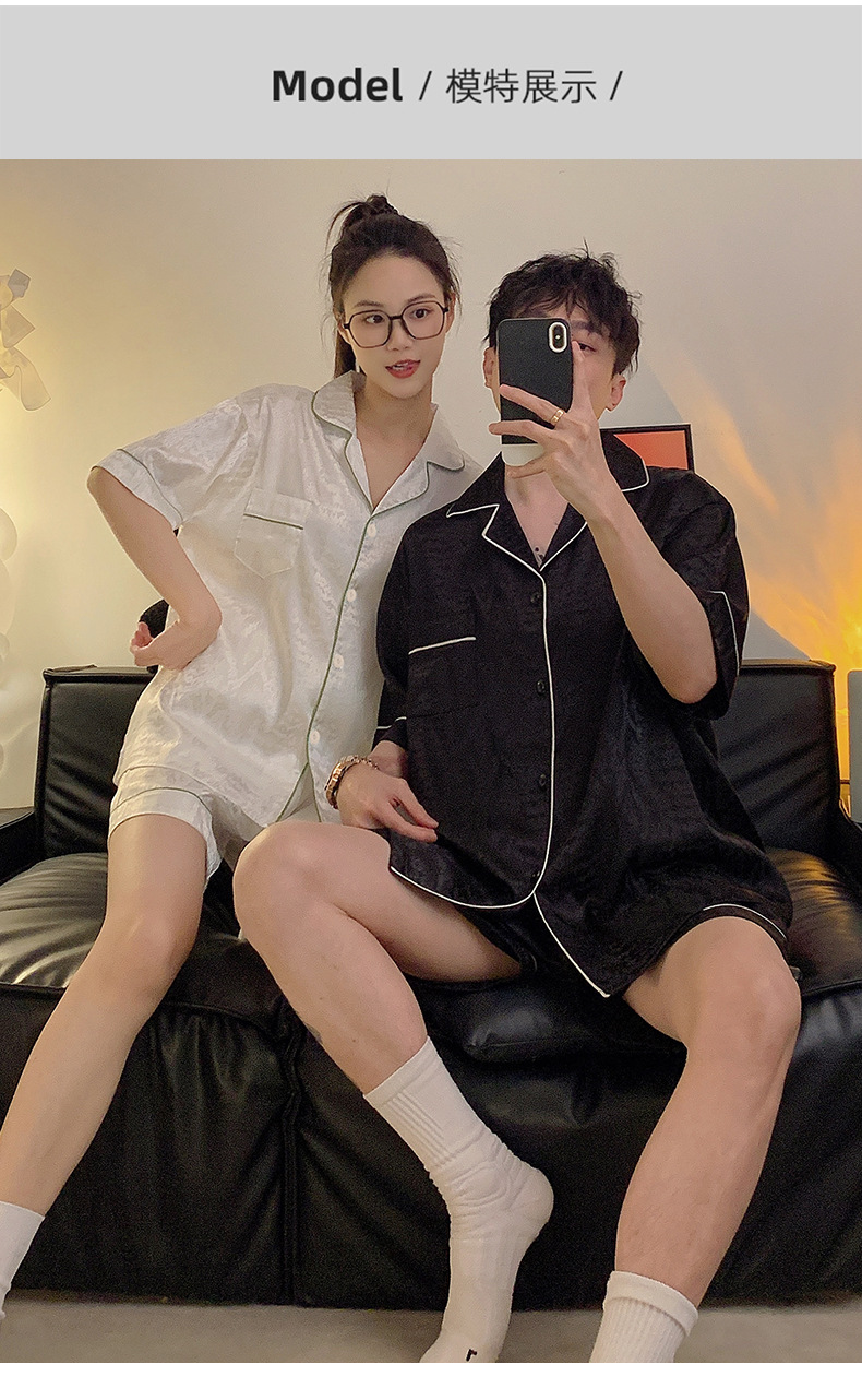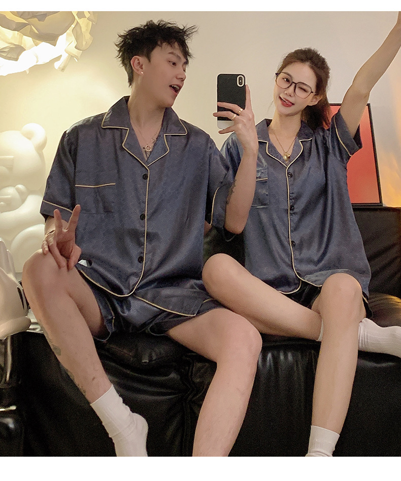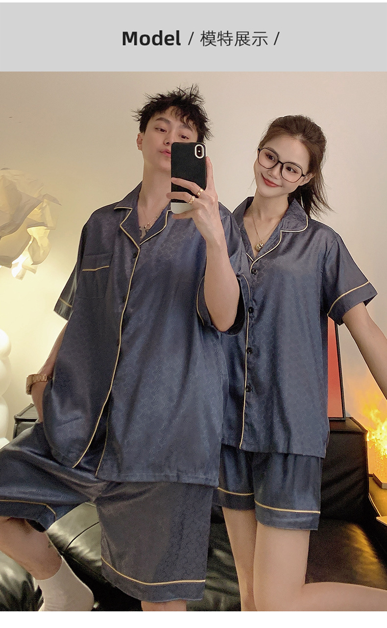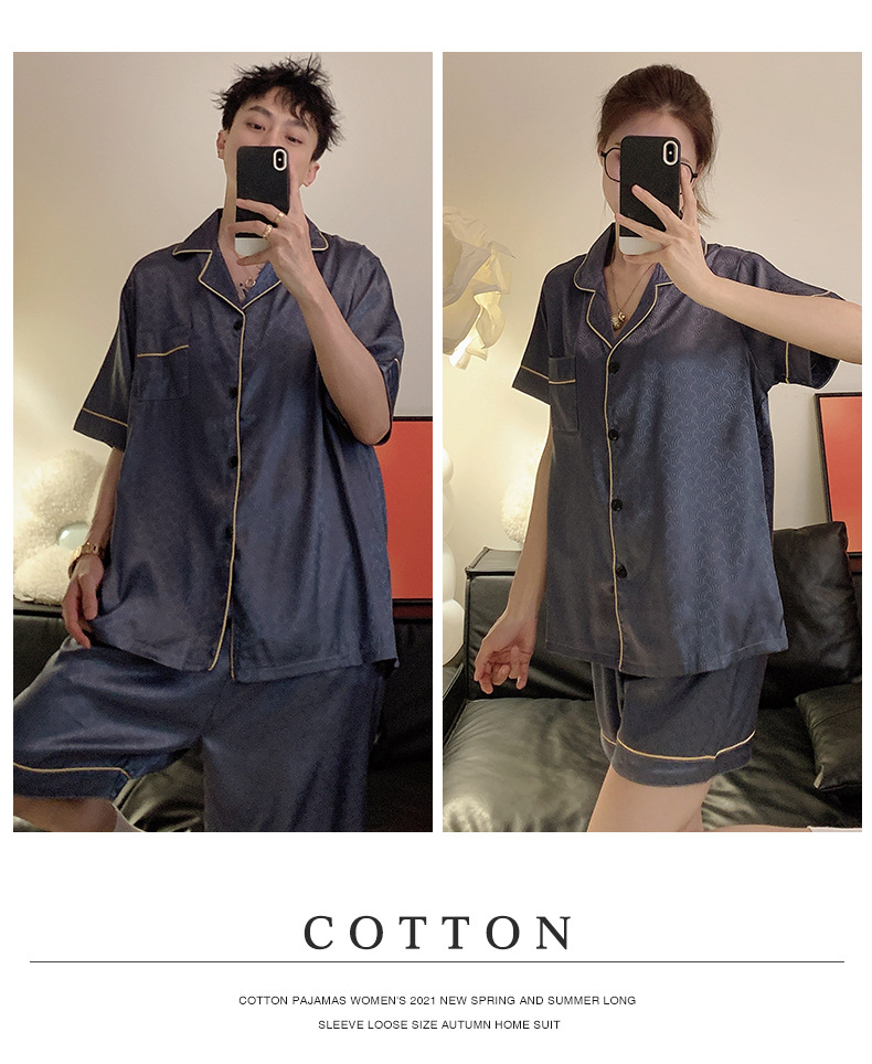 Pajamas de pareja de seda de alto nivel de verano de mujeres de manga corta grande set de seda delgada de verano ropa para el hogar de hombres