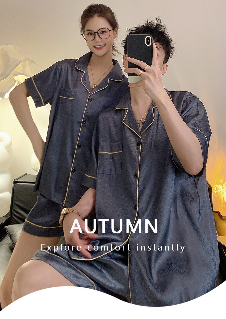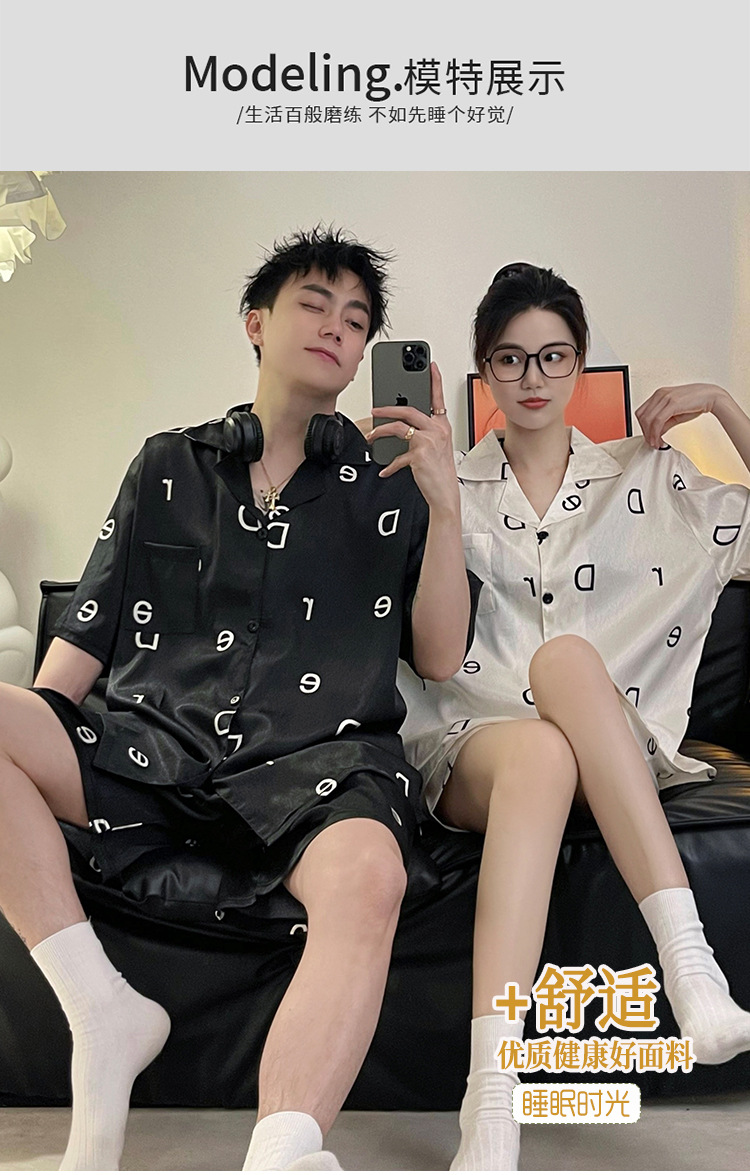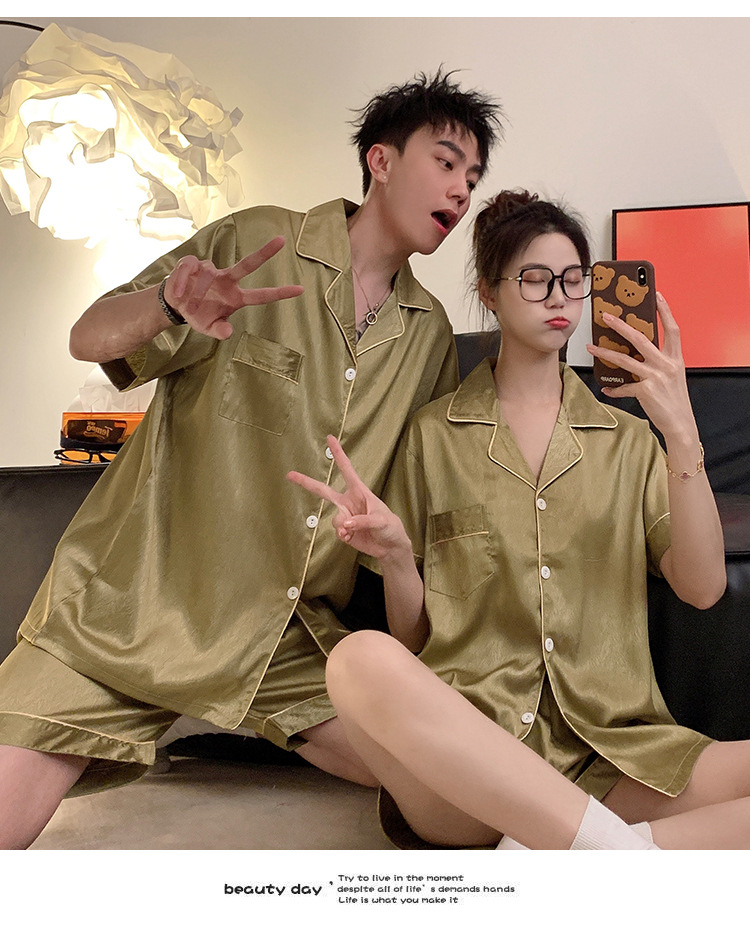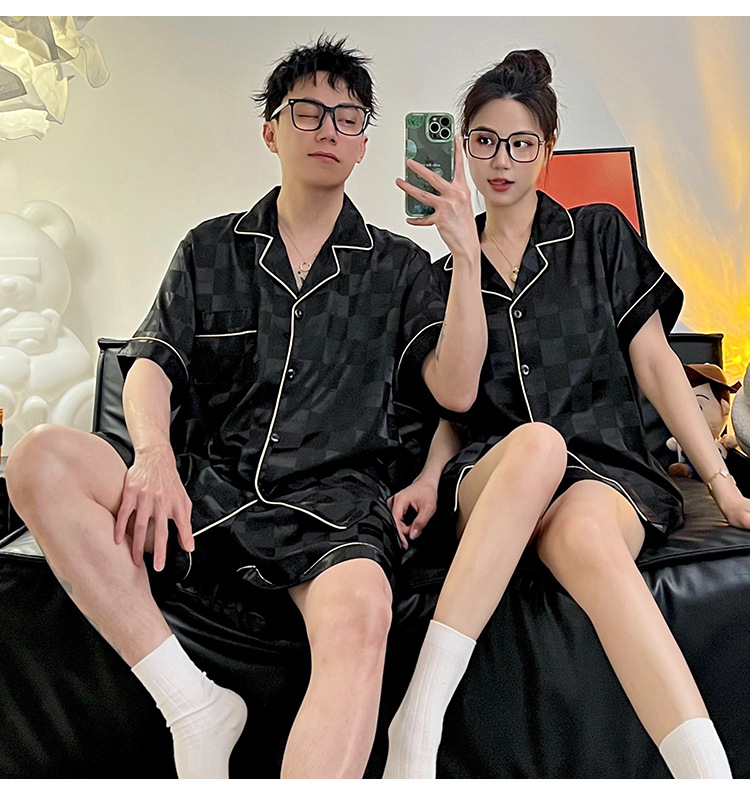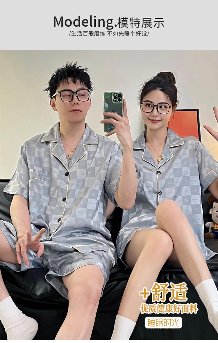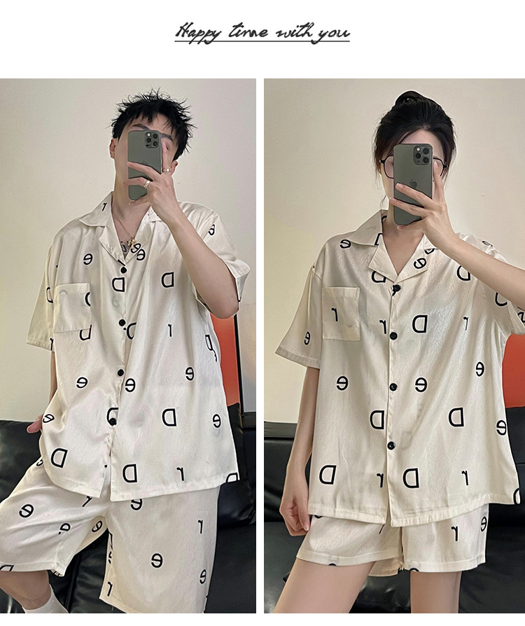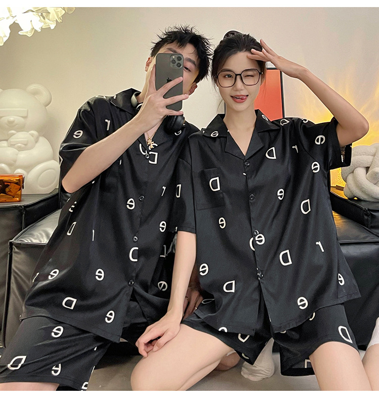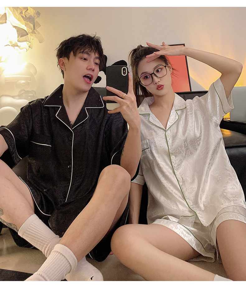 Pajamas de pareja de seda de alto nivel de verano de mujeres de manga corta grande set de seda delgada de verano ropa para el hogar de hombres