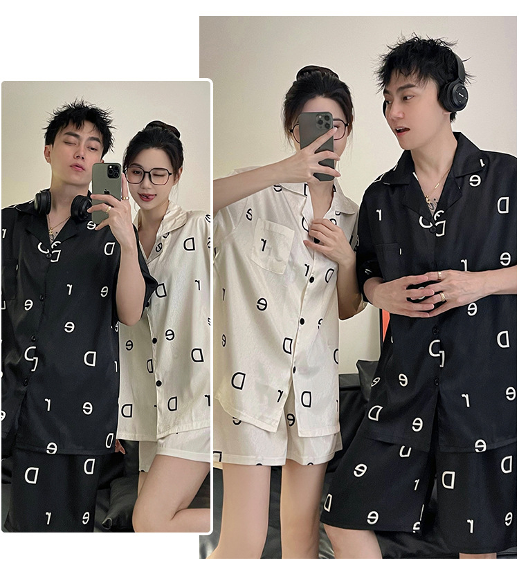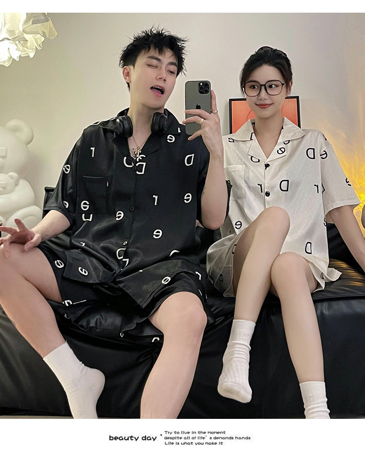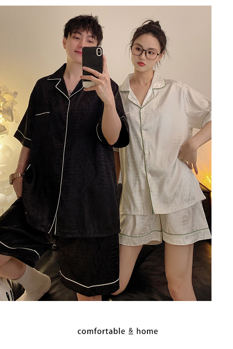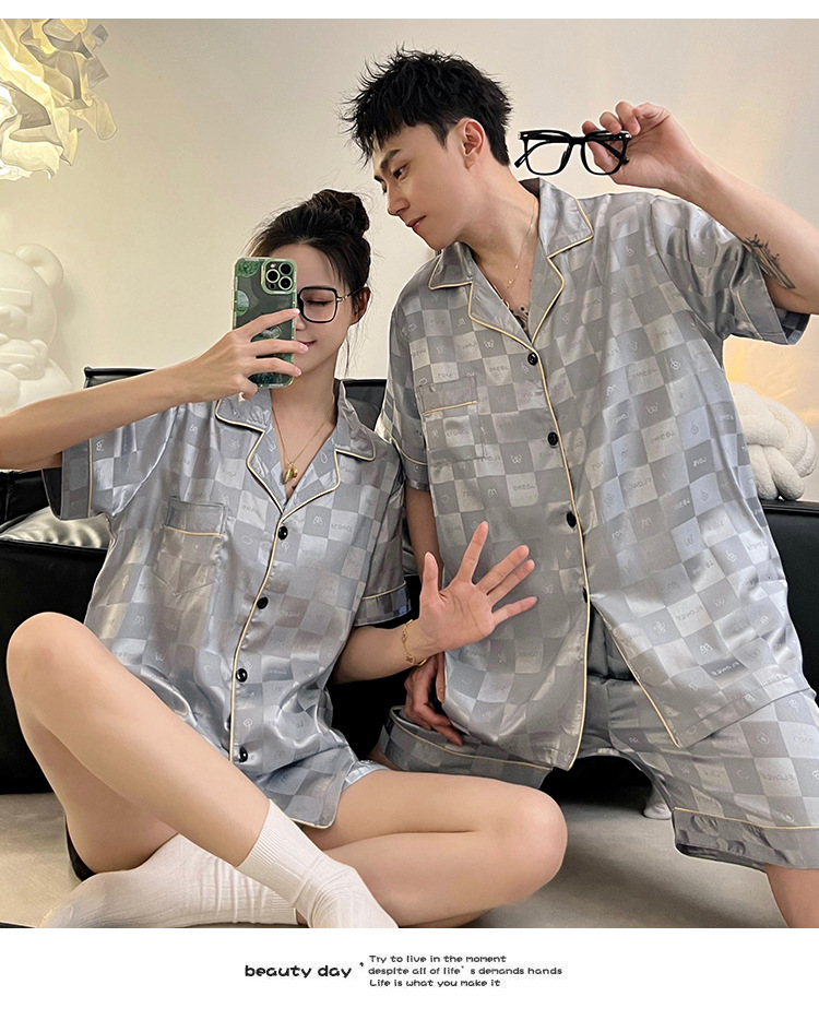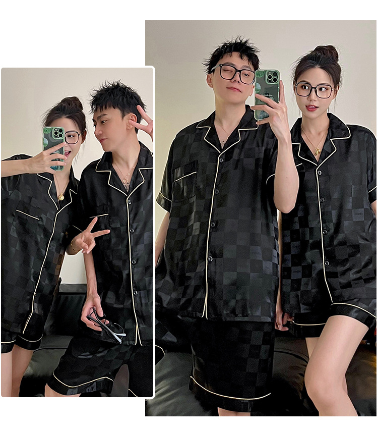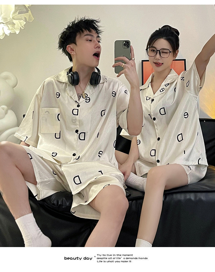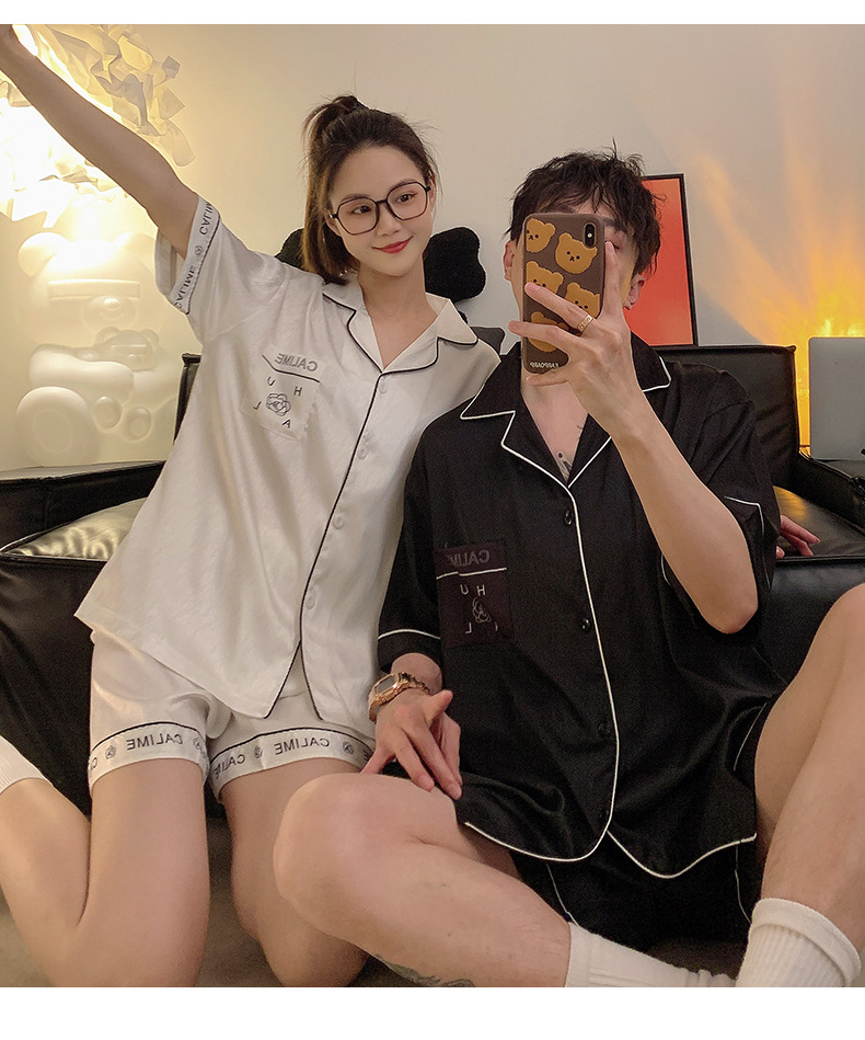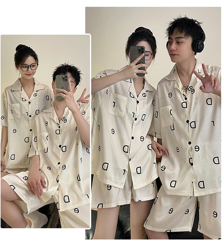 Pajamas de pareja de seda de alto nivel de verano de mujeres de manga corta grande set de seda delgada de verano ropa para el hogar de hombres