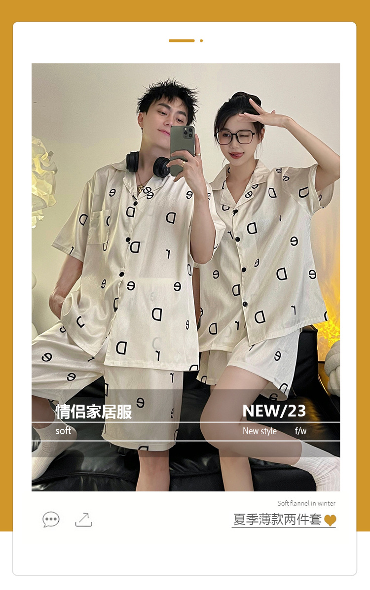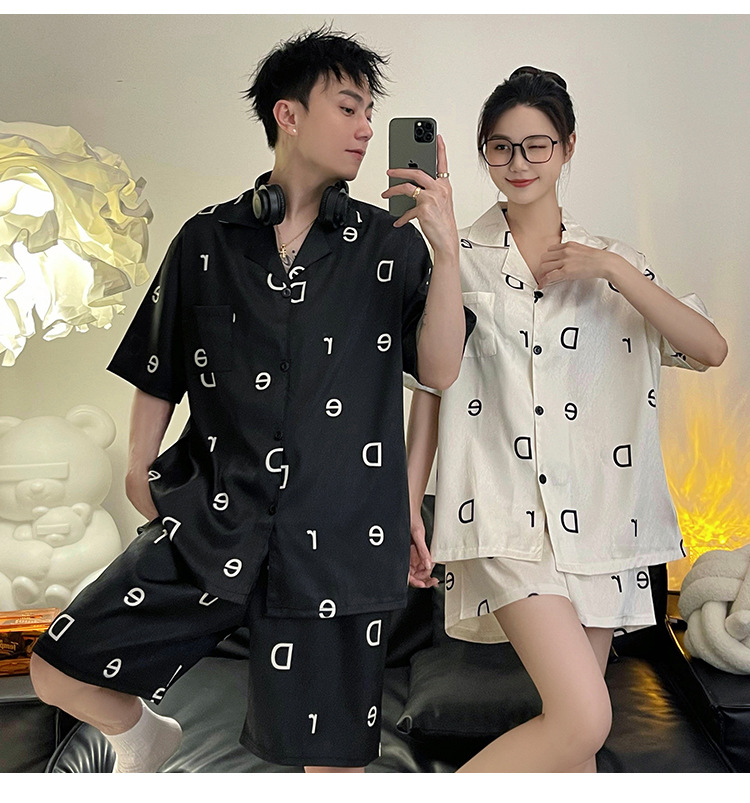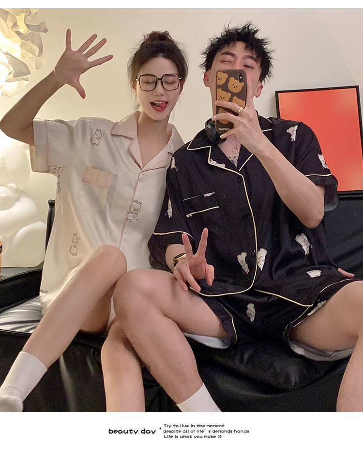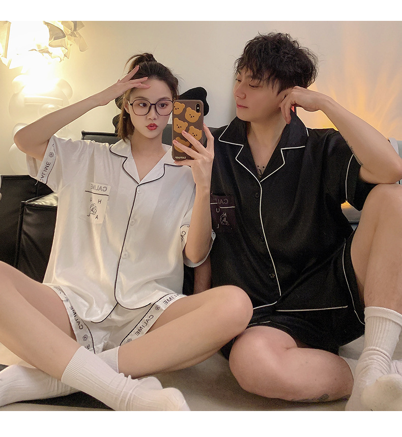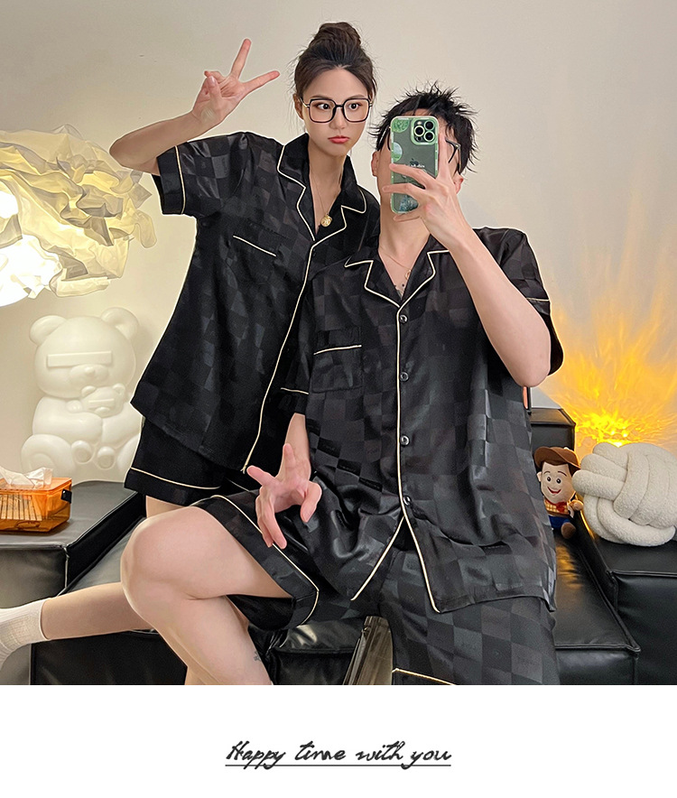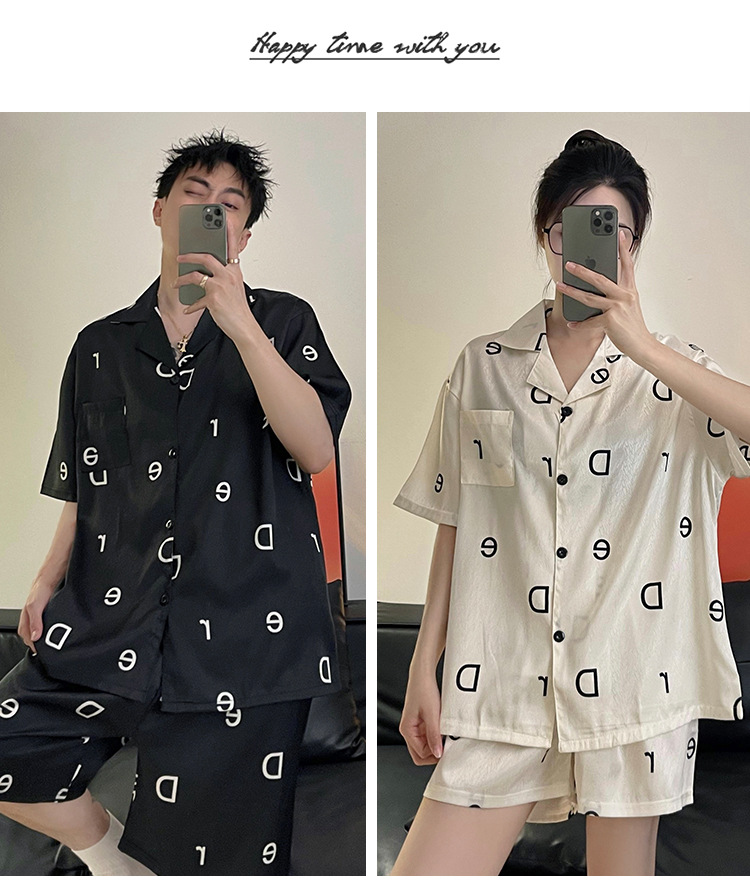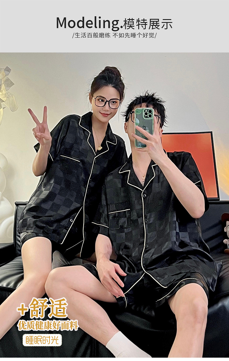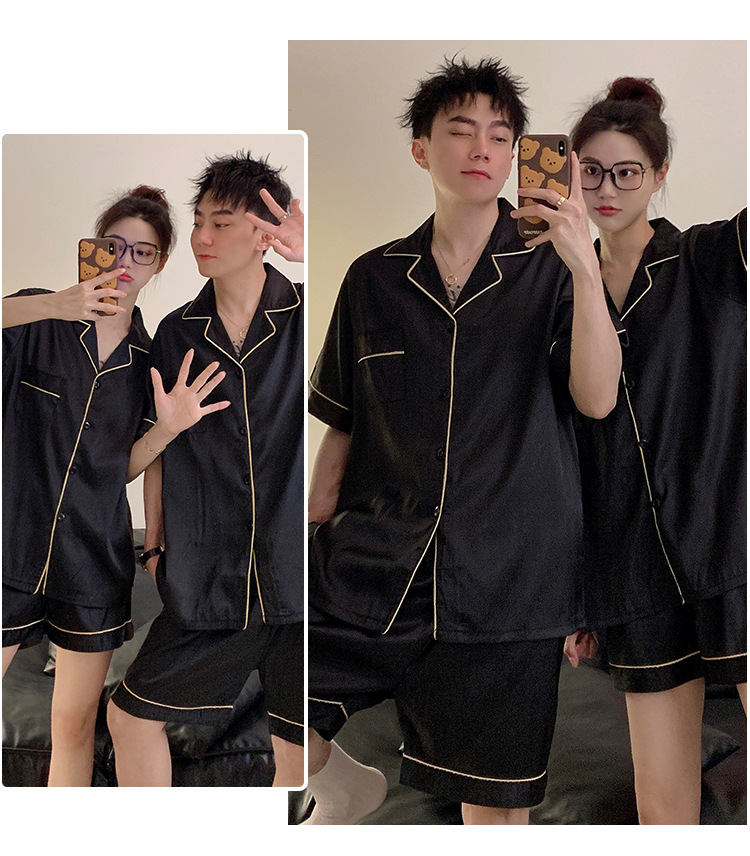 Pajamas de pareja de seda de alto nivel de verano de mujeres de manga corta grande set de seda delgada de verano ropa para el hogar de hombres