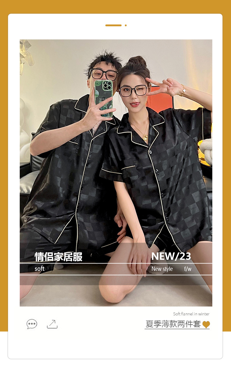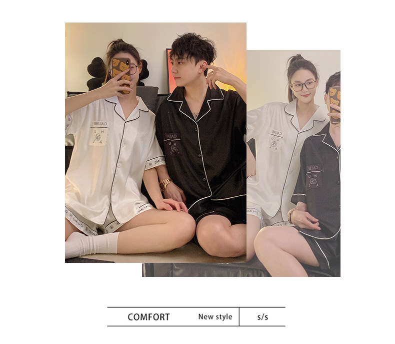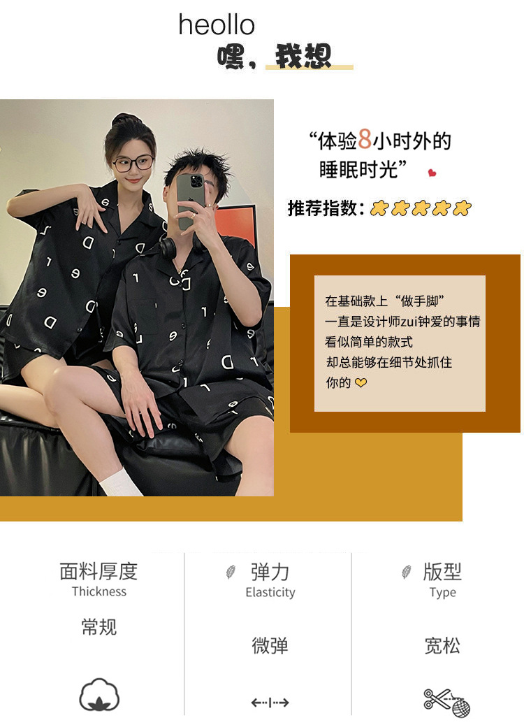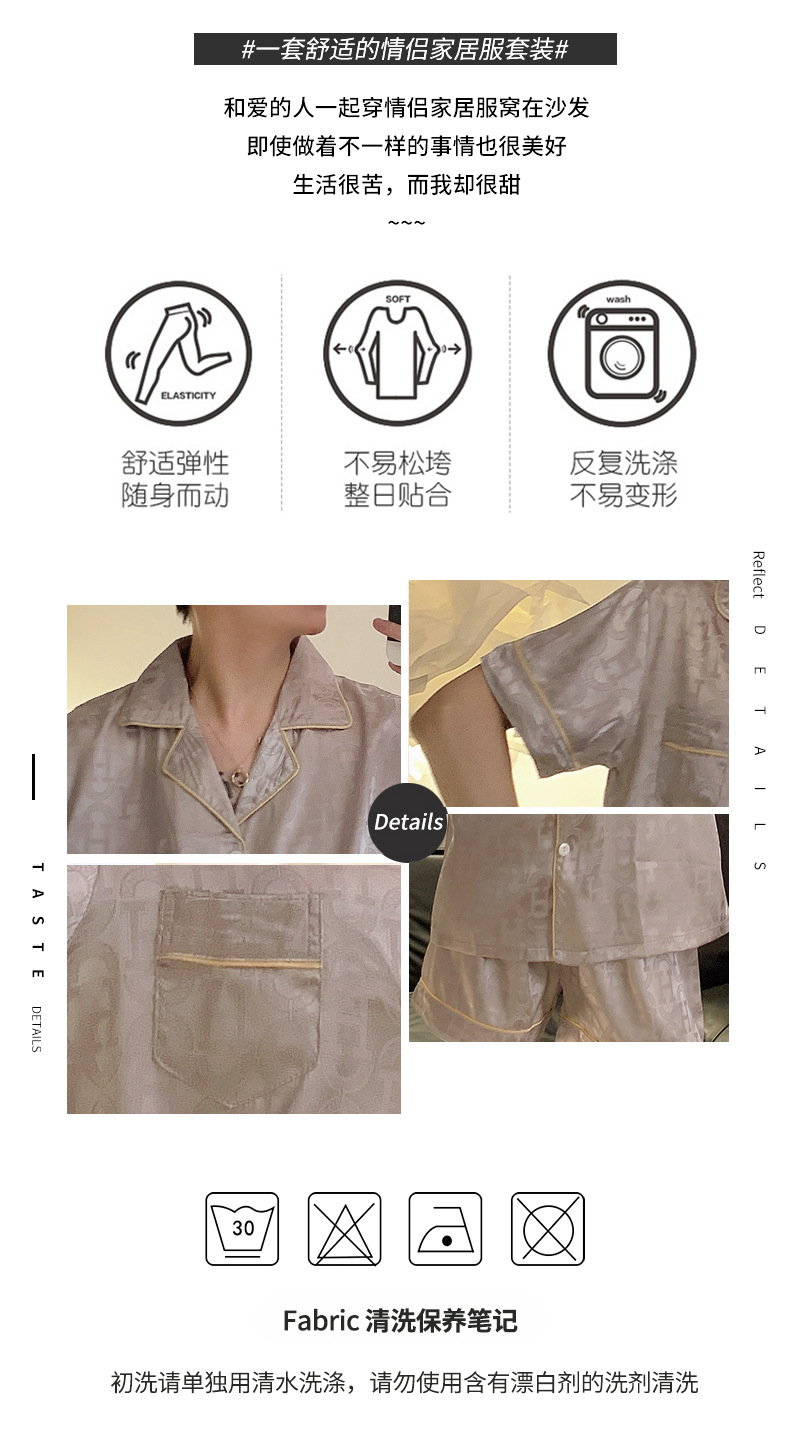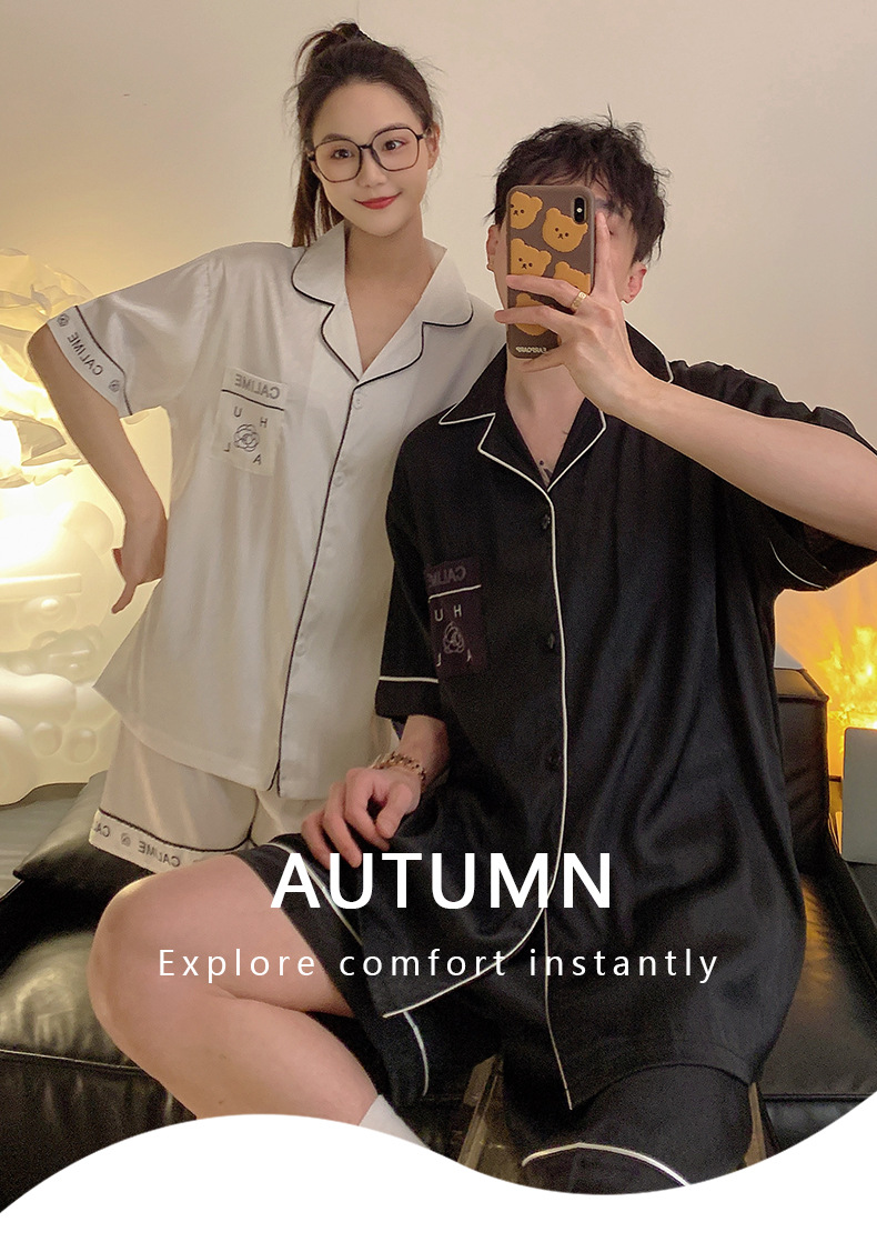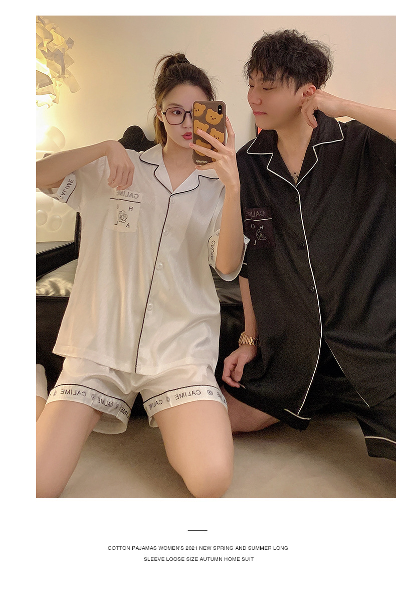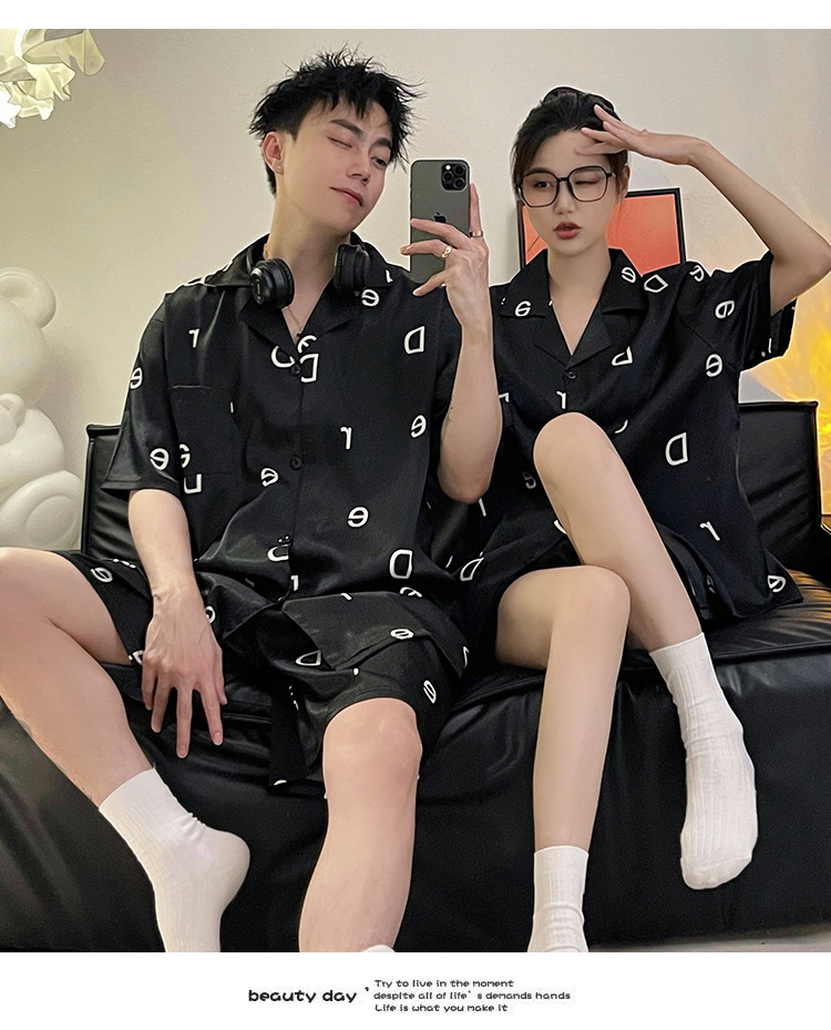 Pajamas de pareja de seda de alto nivel de verano de mujeres de manga corta grande set de seda delgada de verano ropa para el hogar de hombres