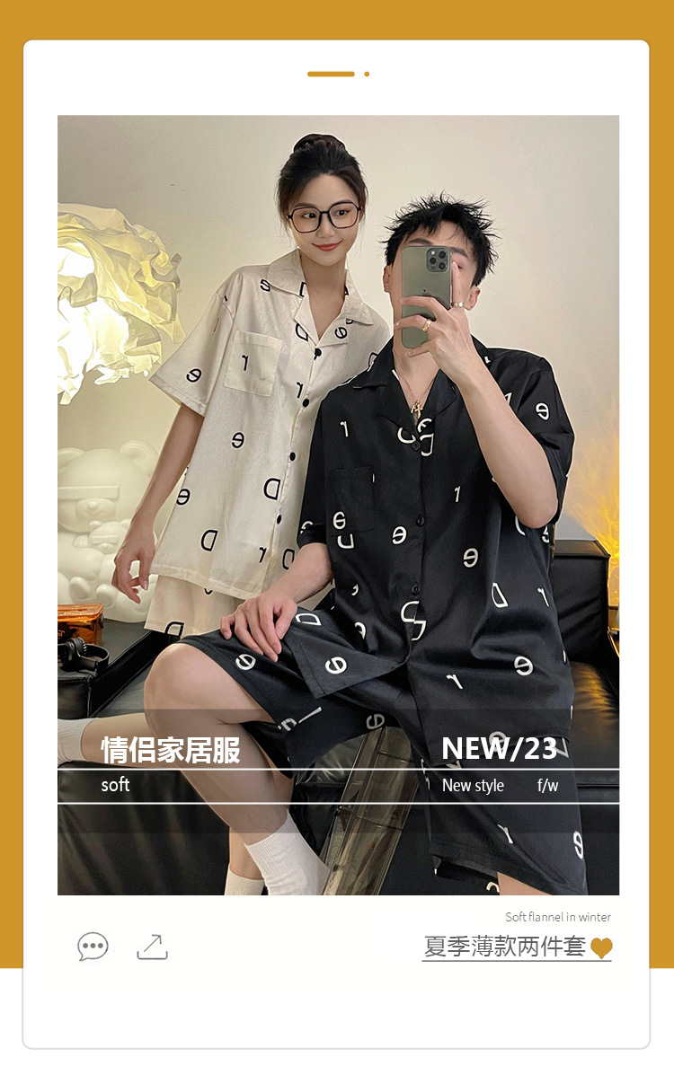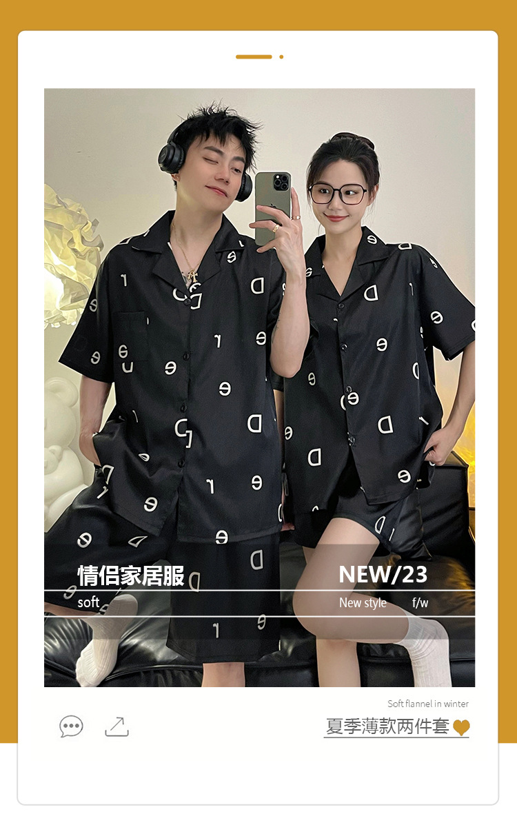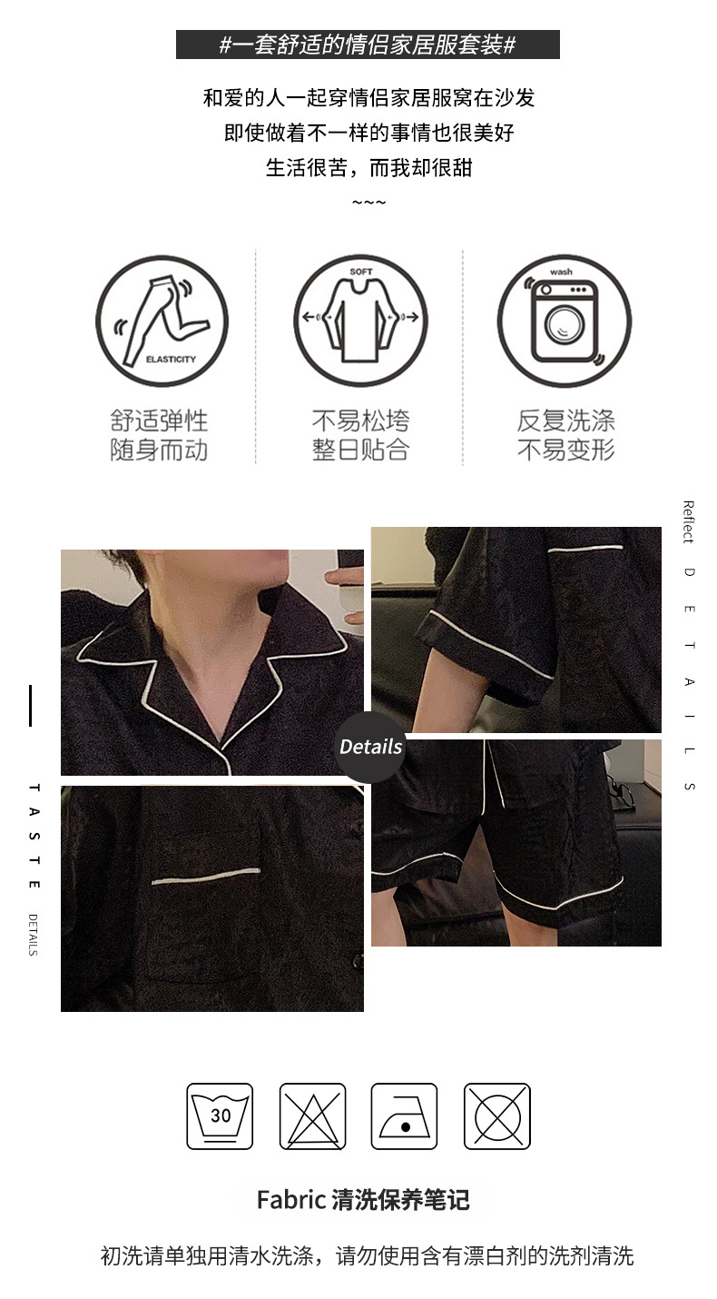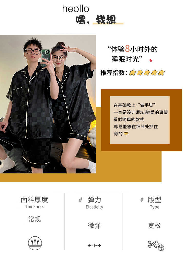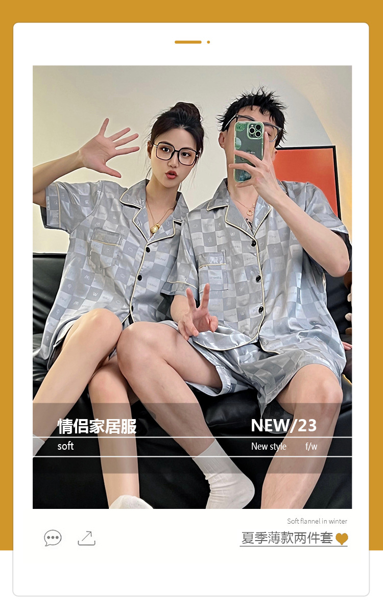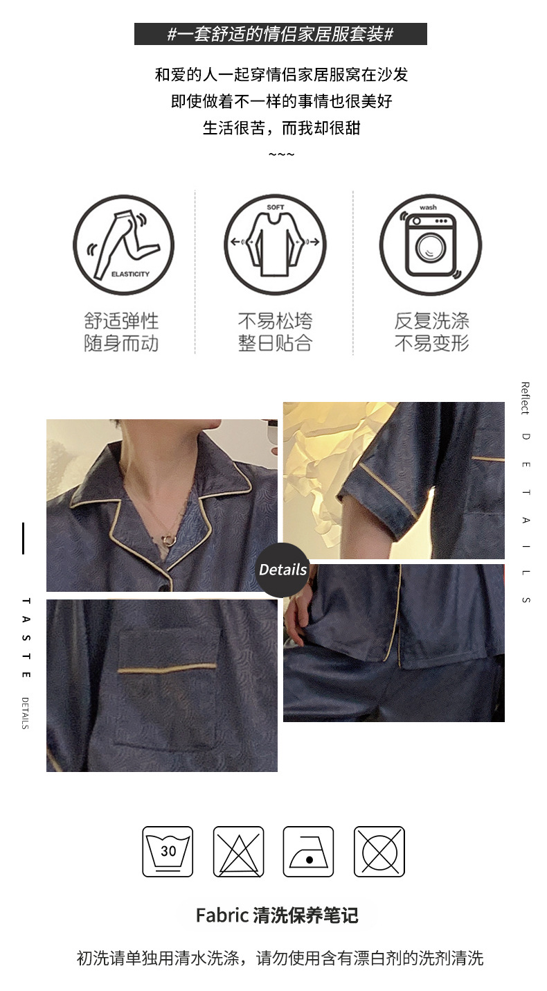 Pajamas de pareja de seda de alto nivel de verano de mujeres de manga corta grande set de seda delgada de verano ropa para el hogar de hombres