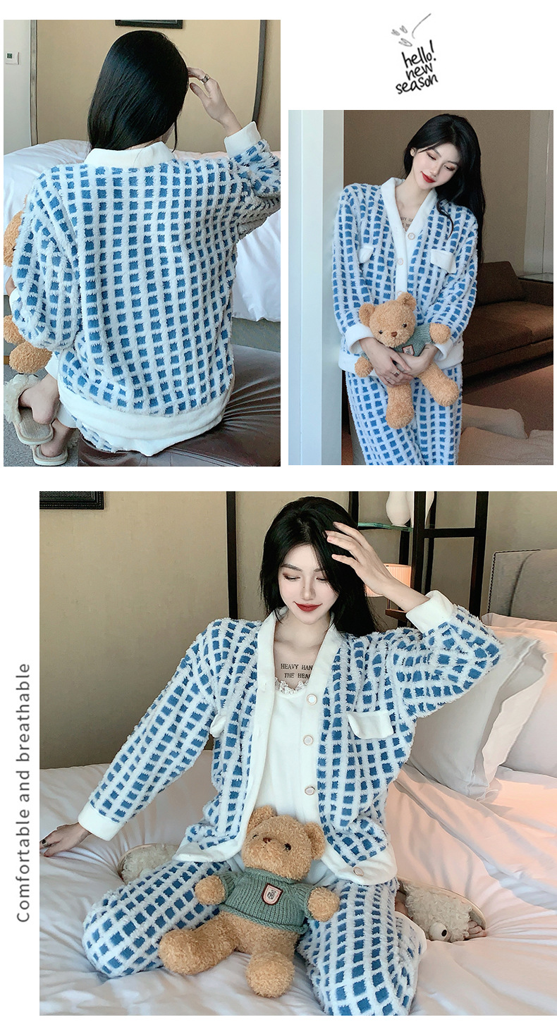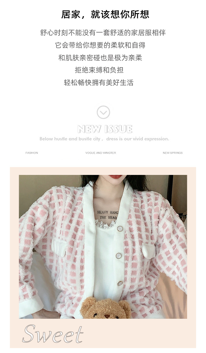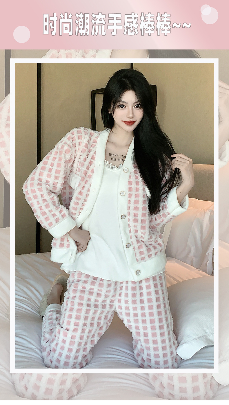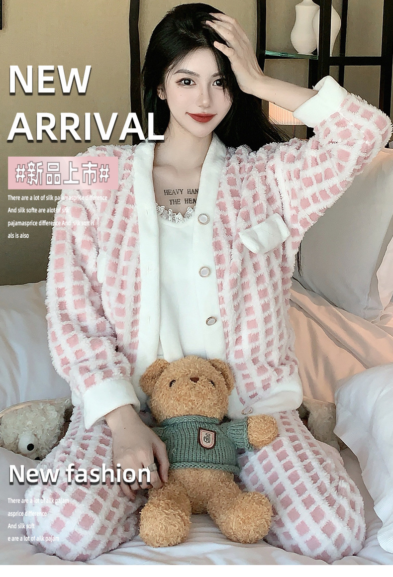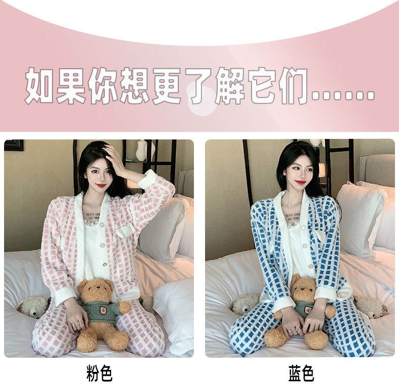Luz de lujo estilo francés sexy Honda pijamas de manga larga de tres piezas pijamas de felpa de las mujeres Otoño e Invierno de alto grado puro deseo traje