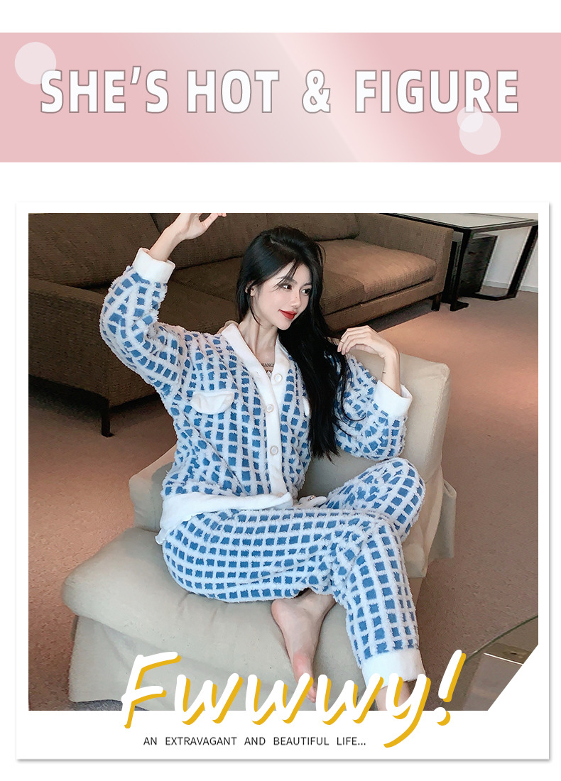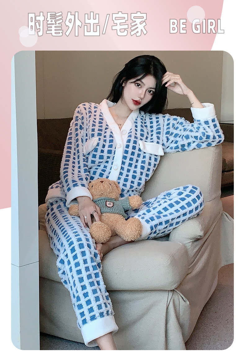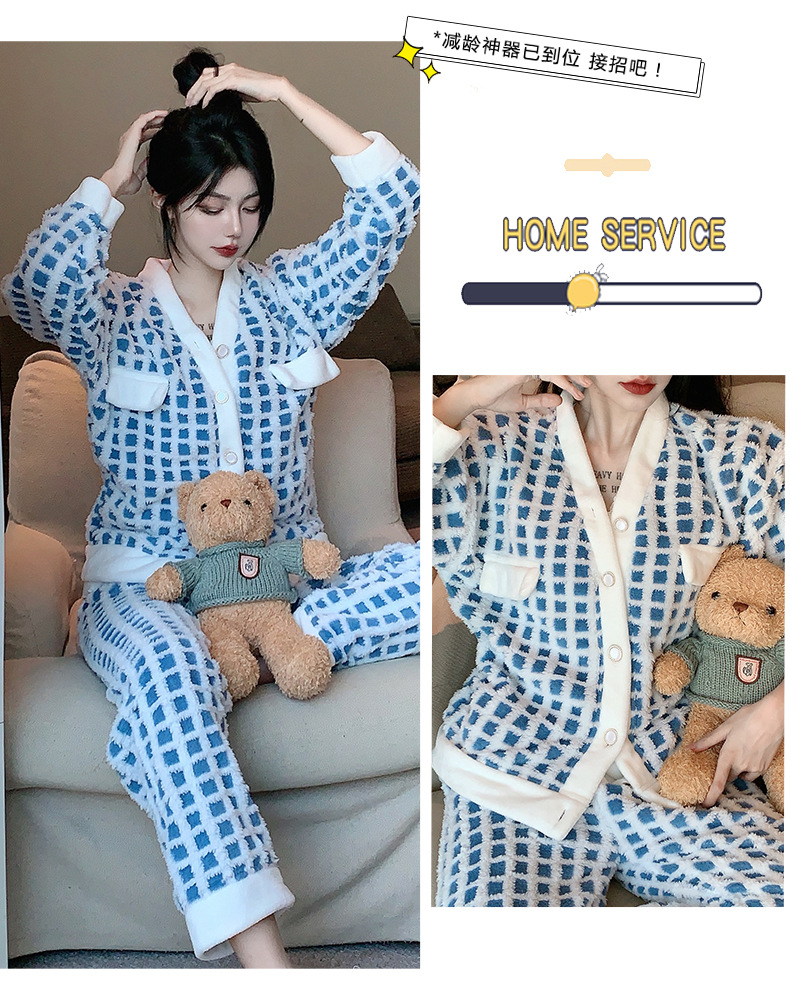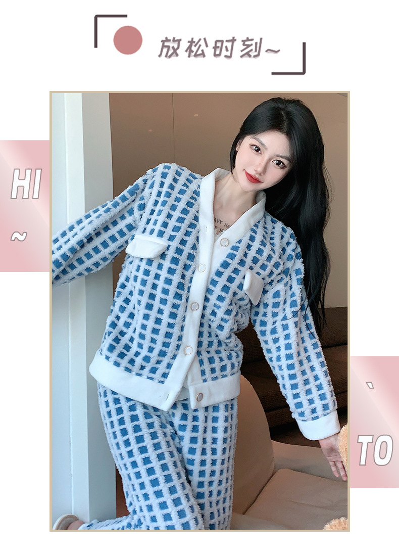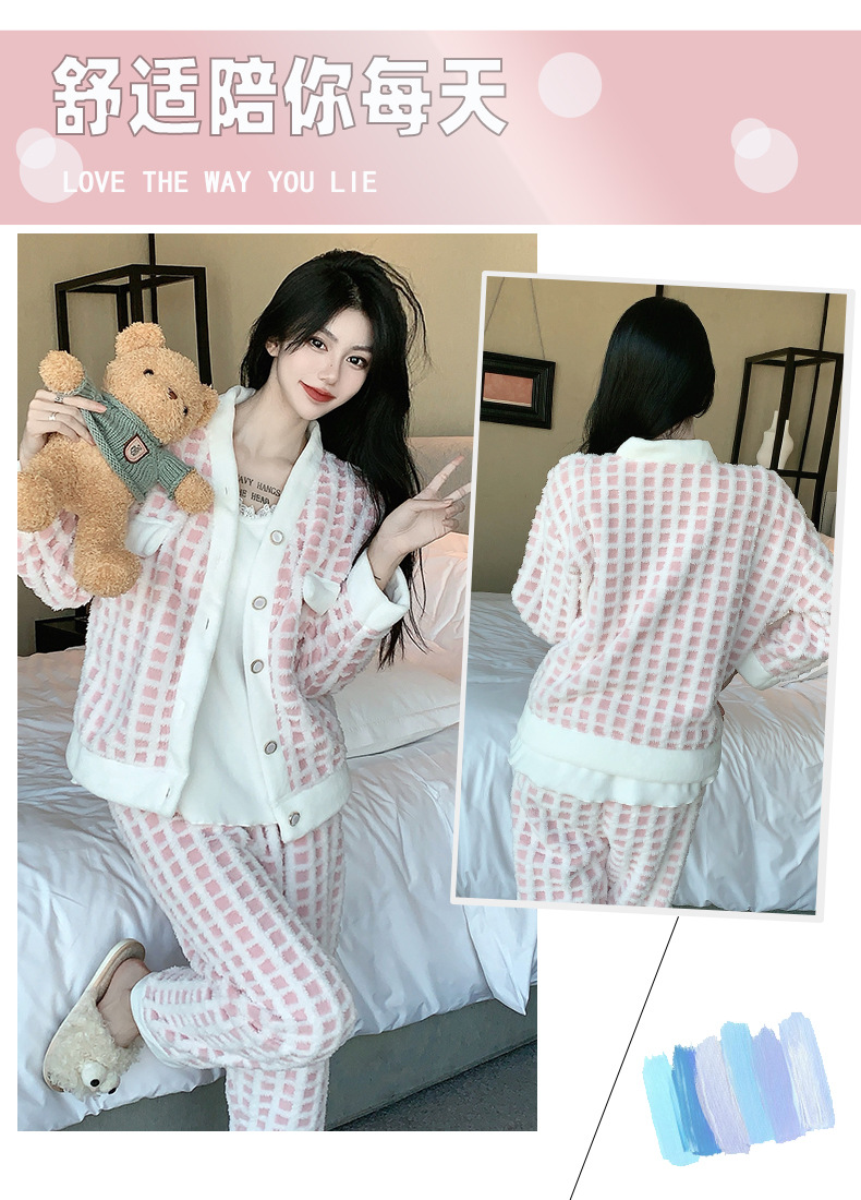Luz de lujo estilo francés sexy Honda pijamas de manga larga de tres piezas pijamas de felpa de las mujeres Otoño e Invierno de alto grado puro deseo traje