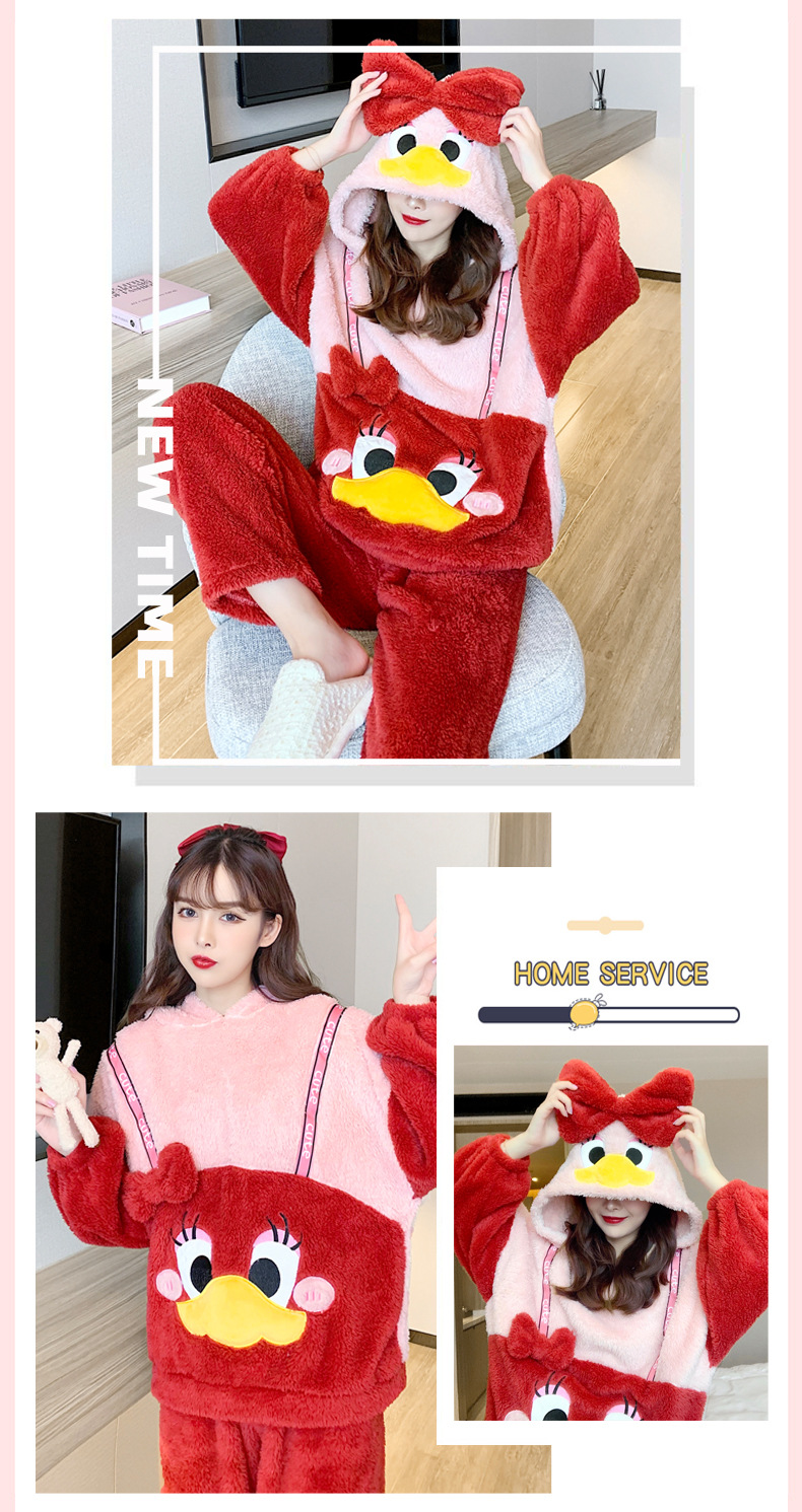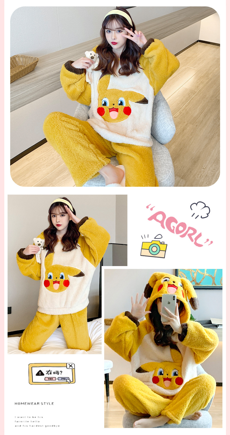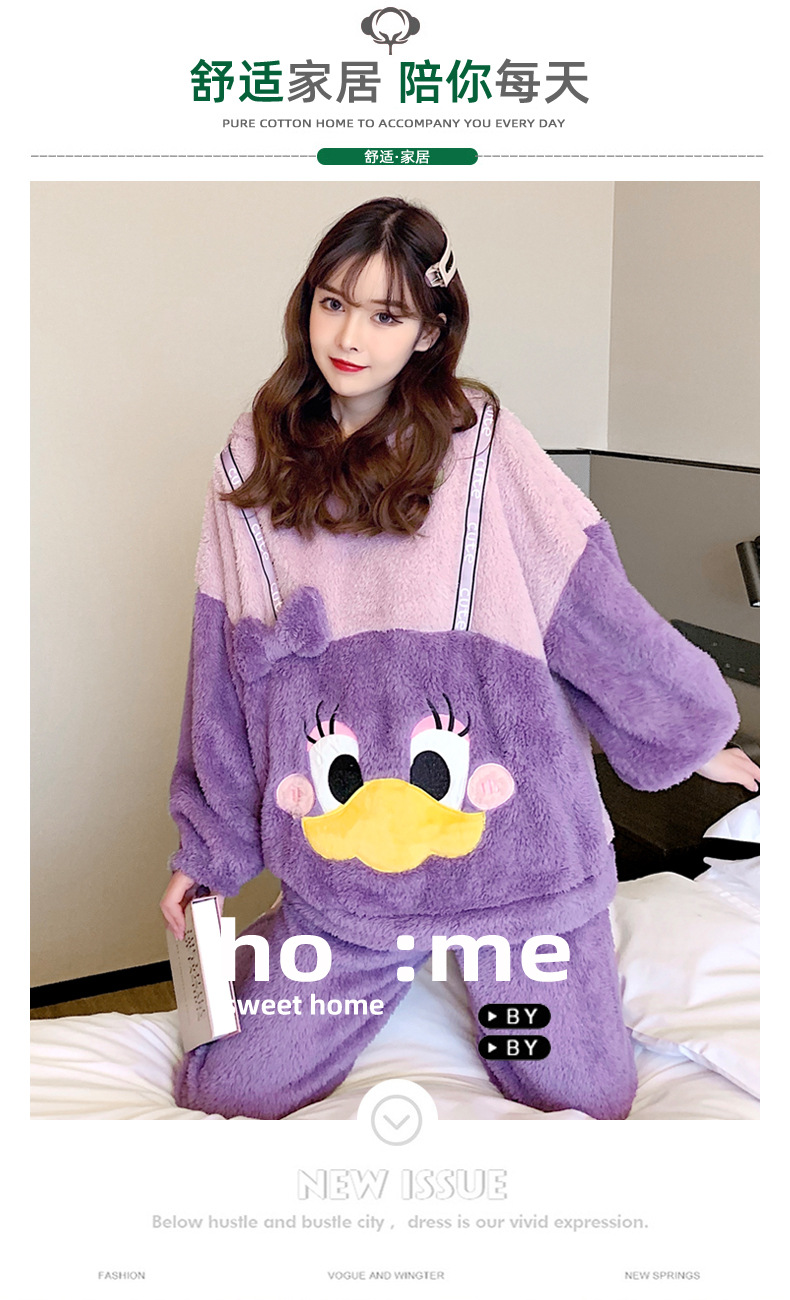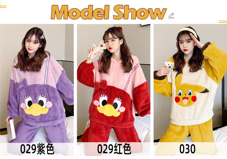 2023 popular Otoño e Invierno coral polar pijamas de manga larga engrosada de las mujeres de dibujos animados lindo felpa desgaste del hogar traje