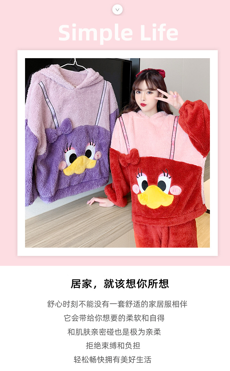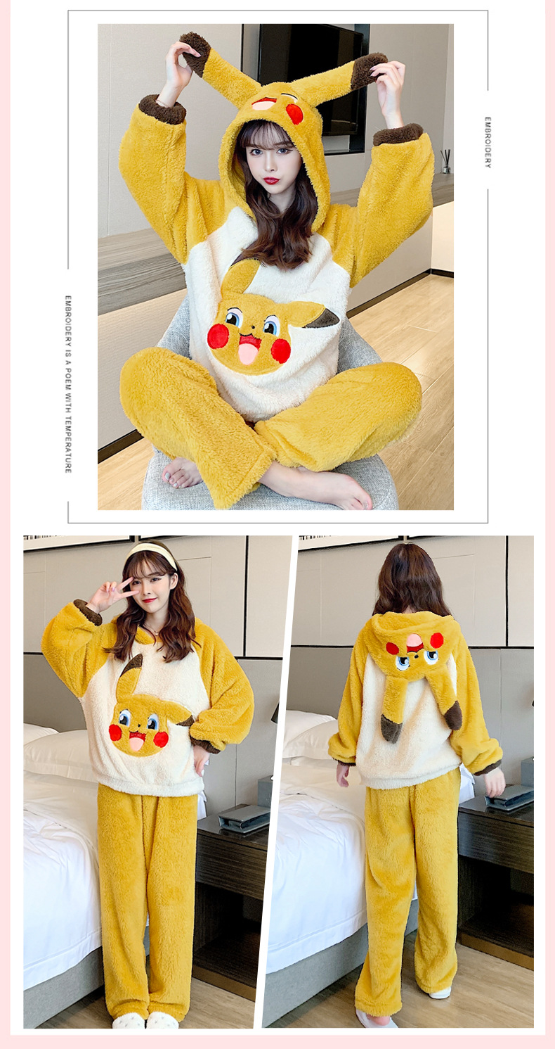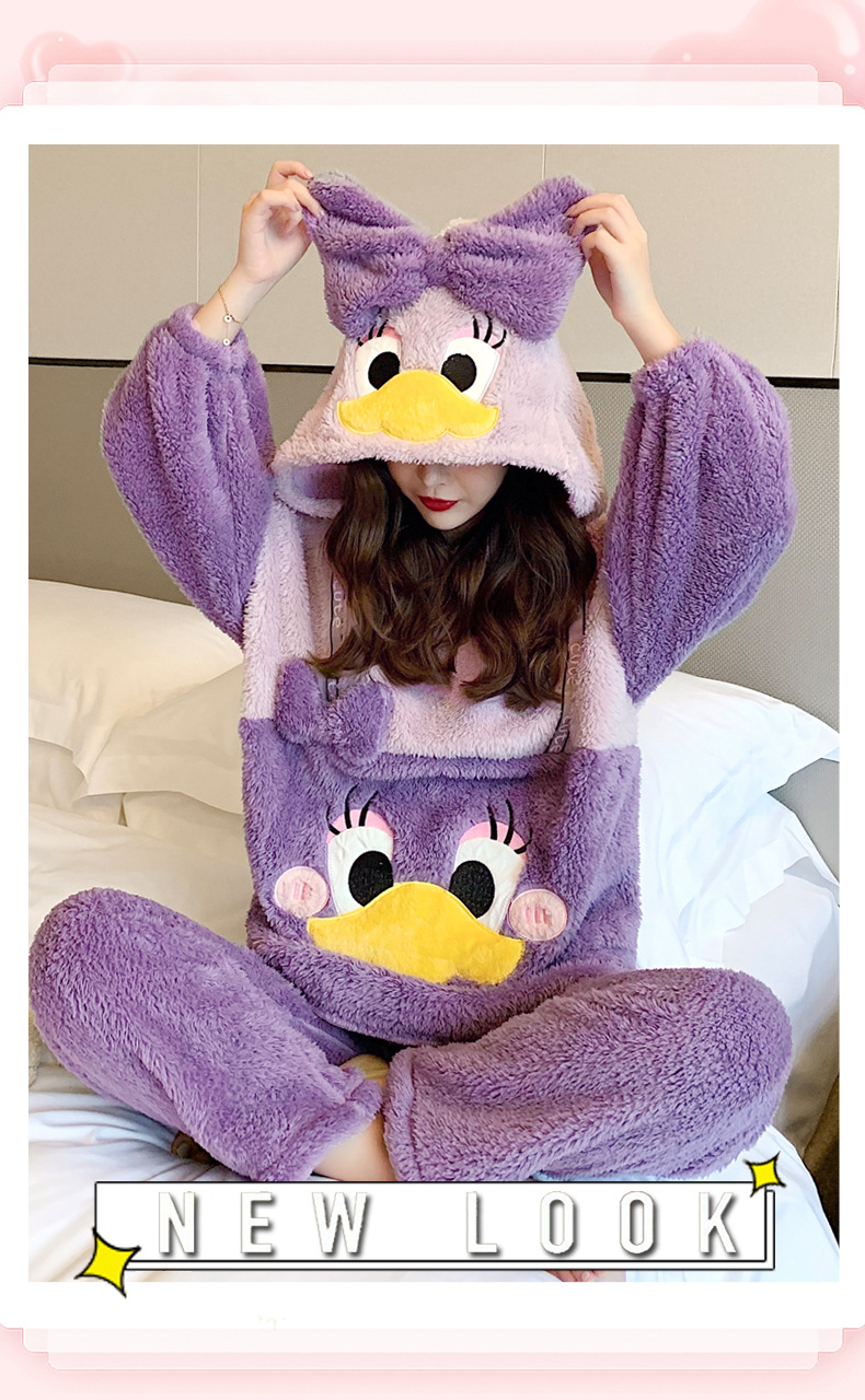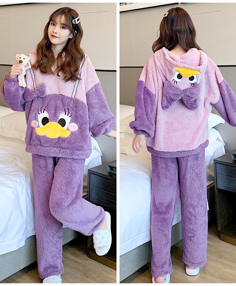 2023 popular Otoño e Invierno coral polar pijamas de manga larga engrosada de las mujeres de dibujos animados lindo felpa desgaste del hogar traje