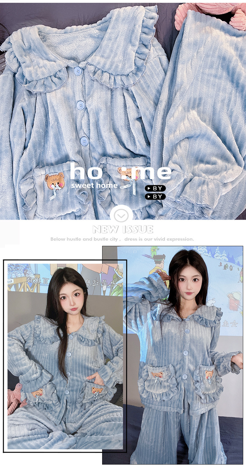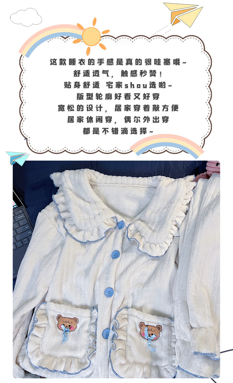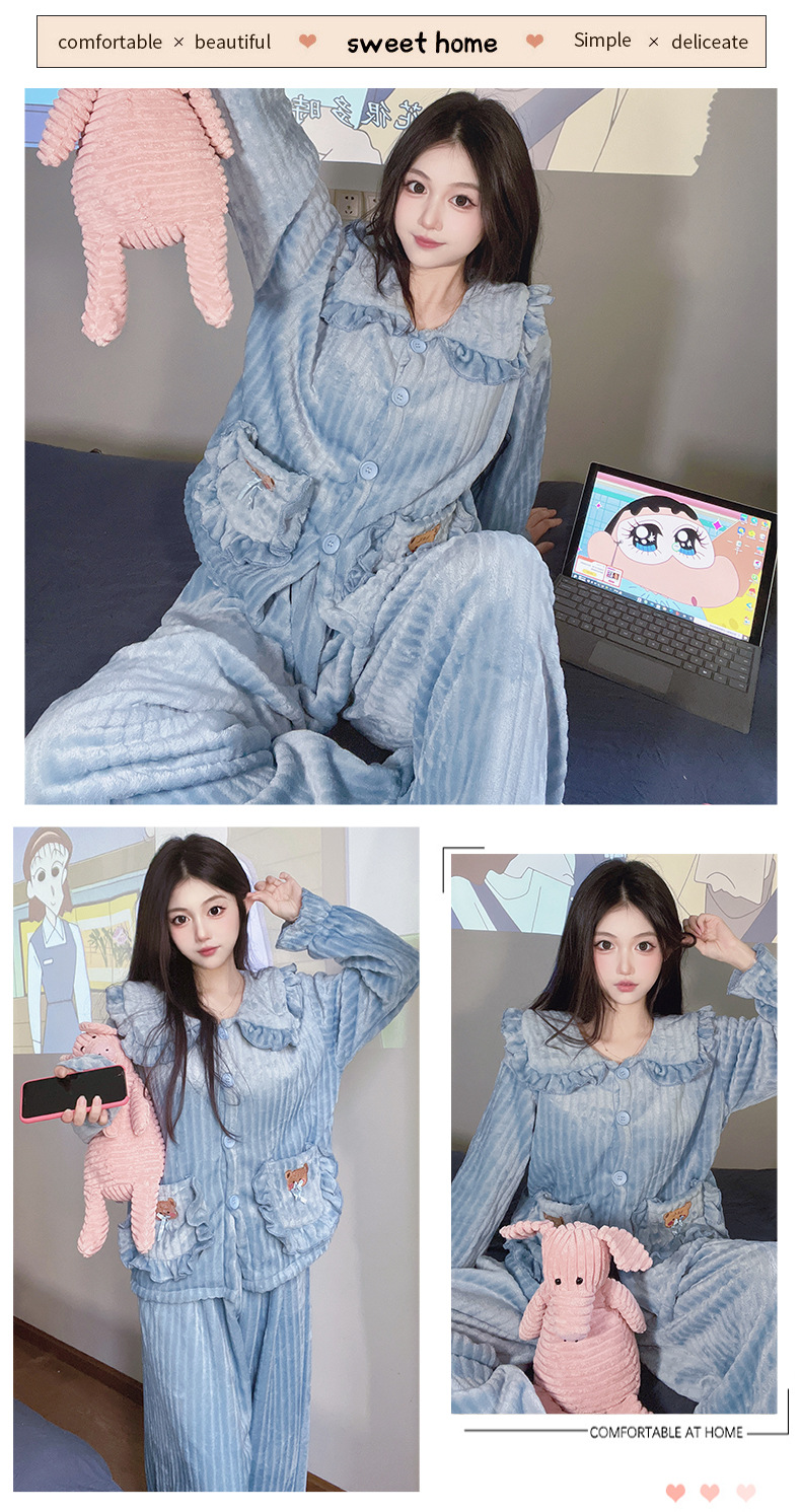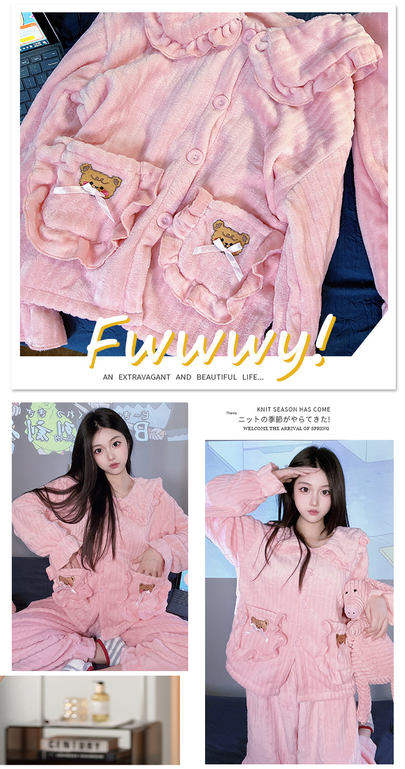 Rosa chica otoño y el invierno cálido coral lana fresca pequeña manga larga gruesa franela desgaste del hogar traje casual
