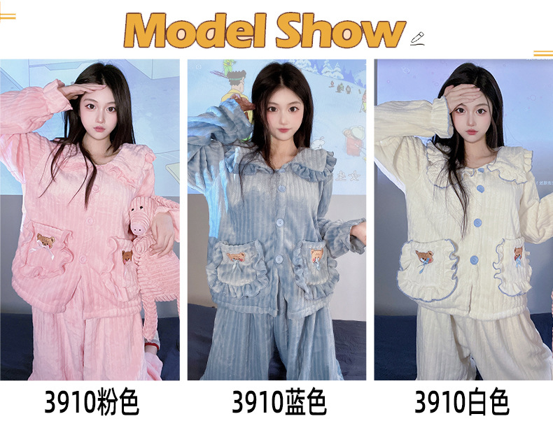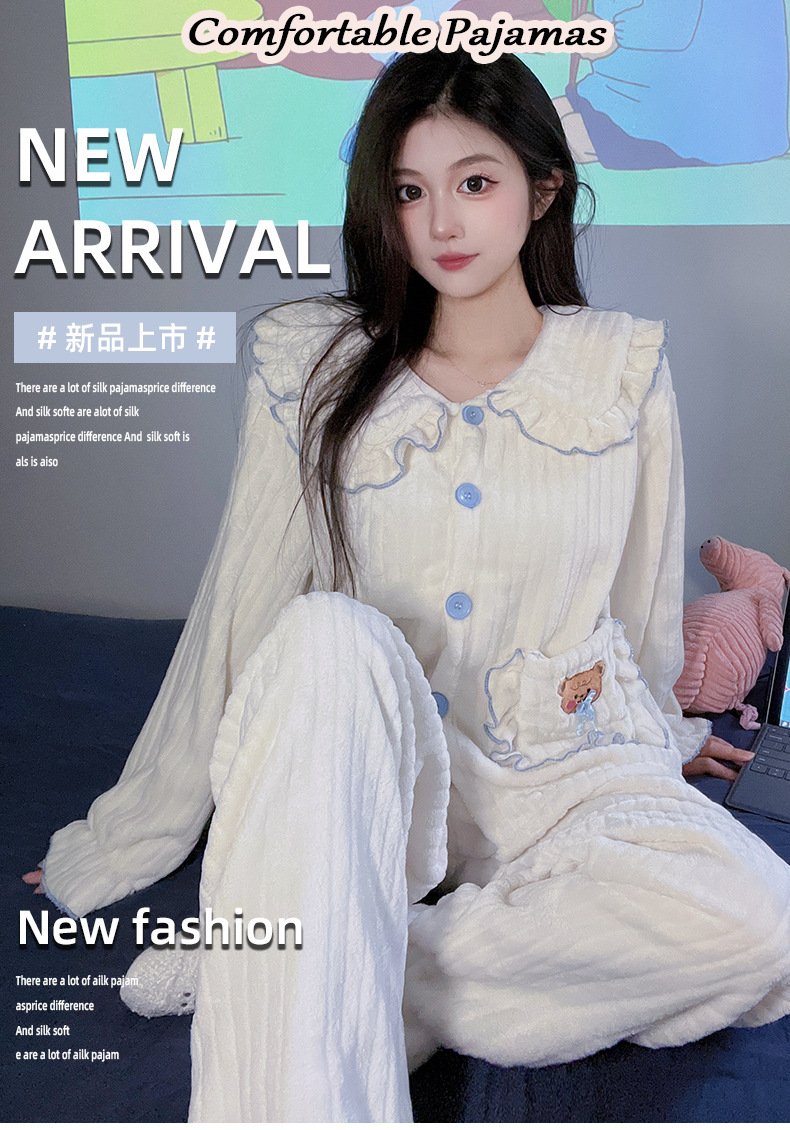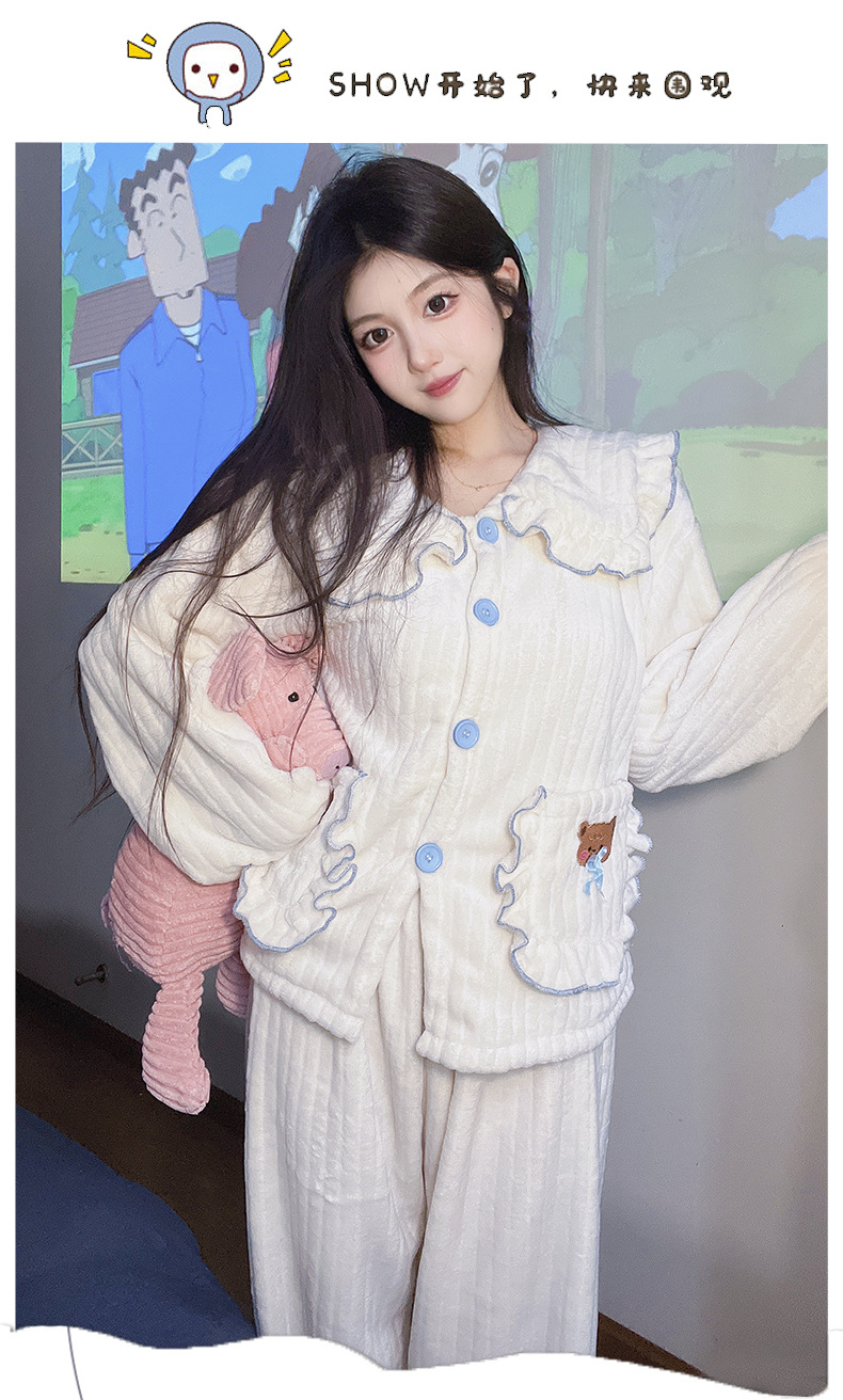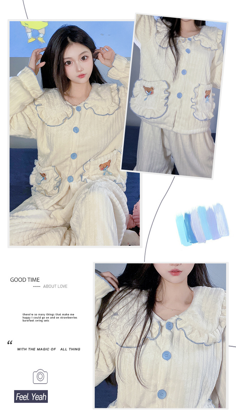 Rosa chica otoño y el invierno cálido coral lana fresca pequeña manga larga gruesa franela desgaste del hogar traje casual