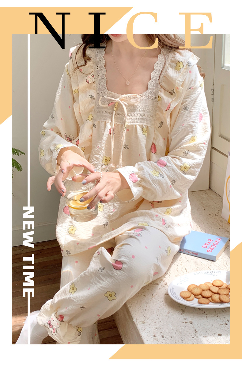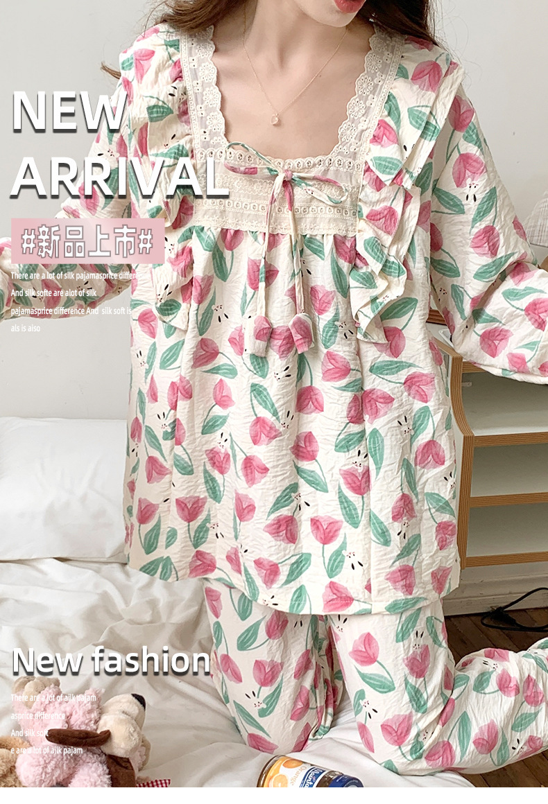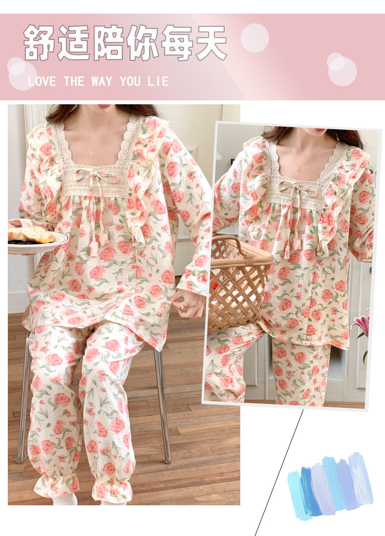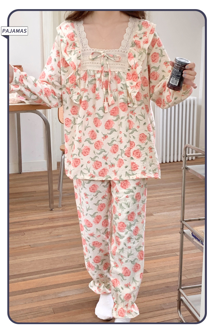 Francés dulce floral manga larga de algodón fresco pijamas chica otoño e invierno en línea estilo rojo 2023 nuevo desgaste casero