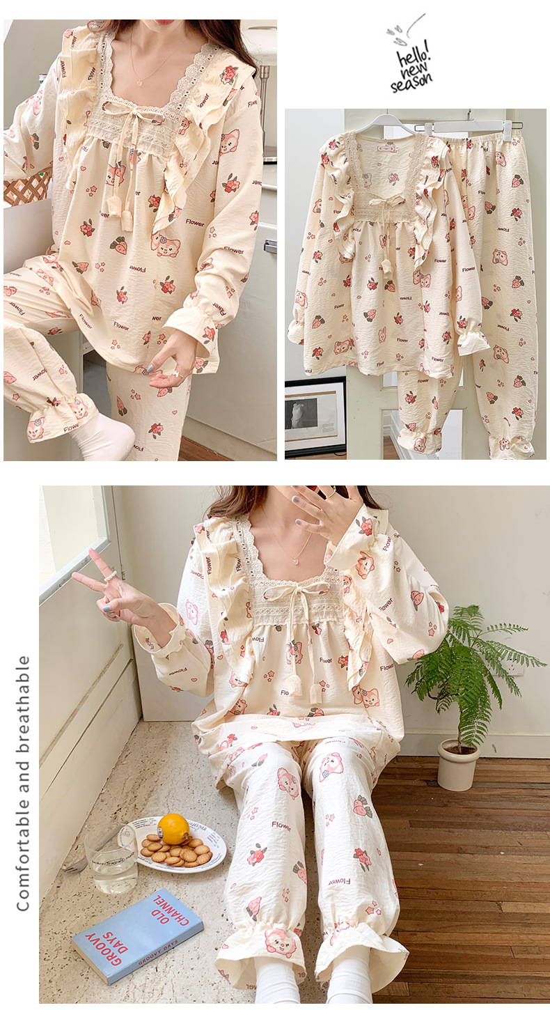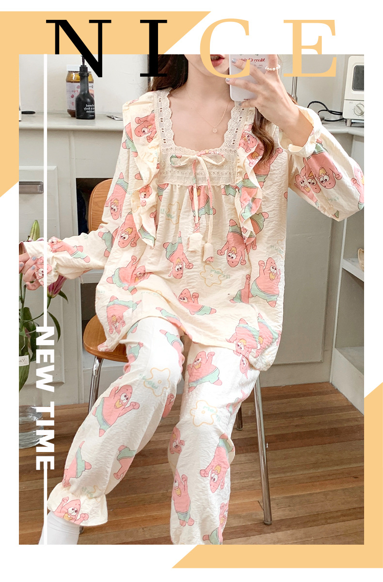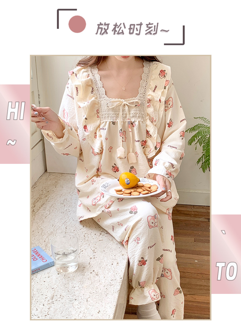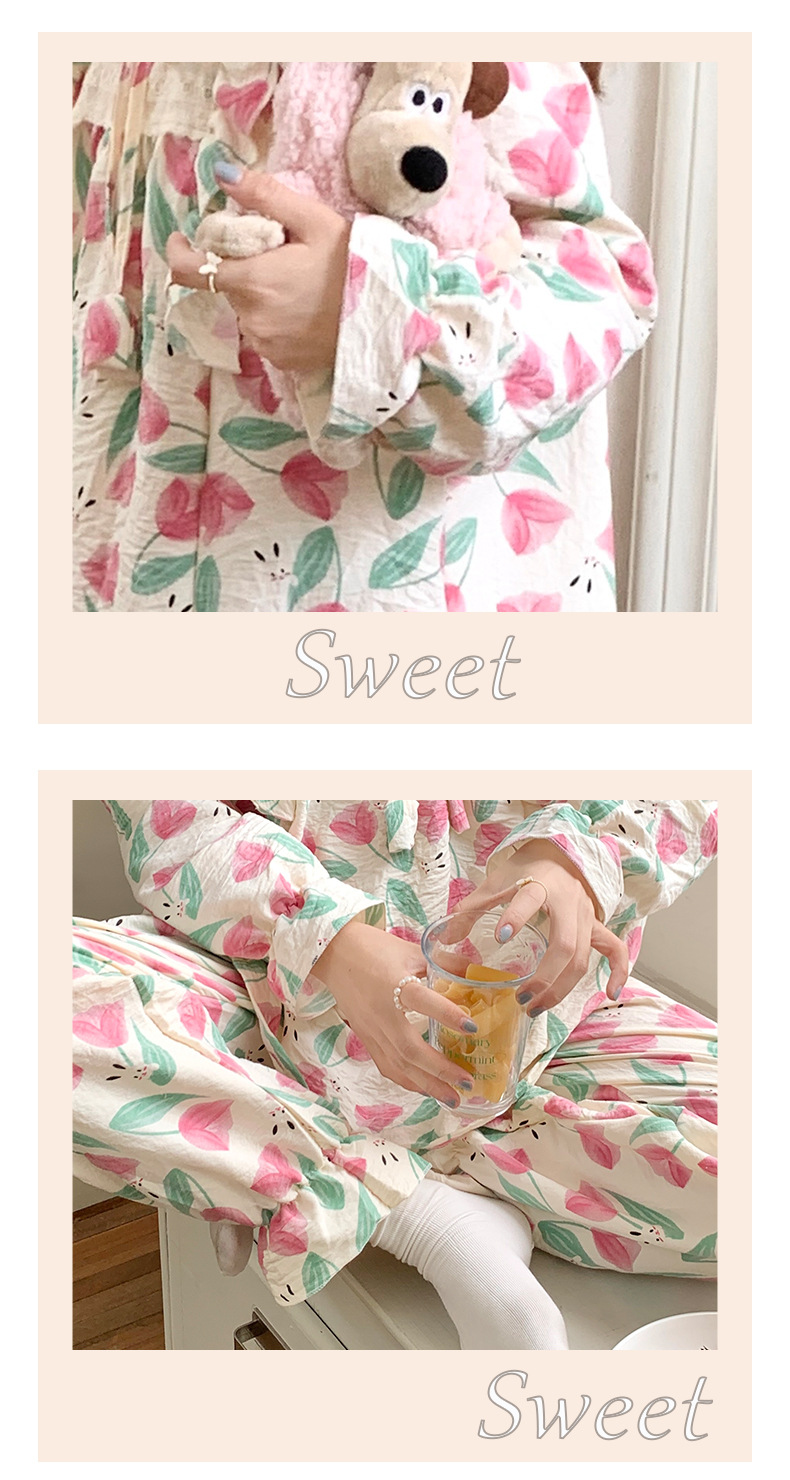 Francés dulce floral manga larga de algodón fresco pijamas chica otoño e invierno en línea estilo rojo 2023 nuevo desgaste casero