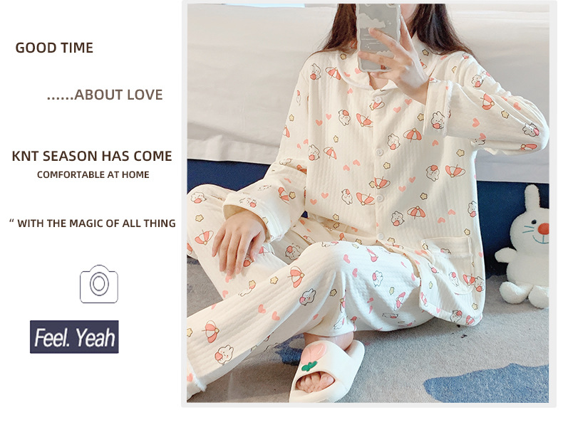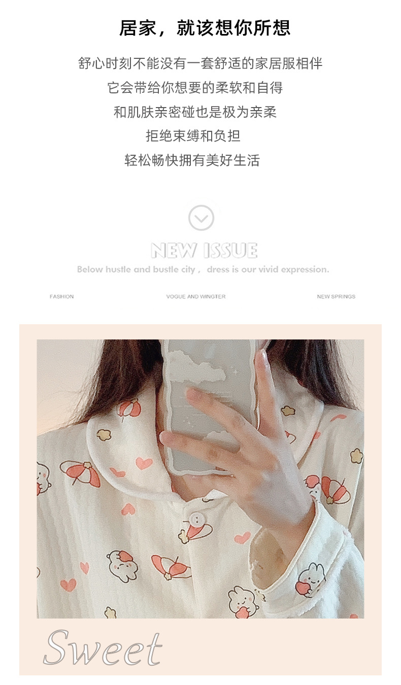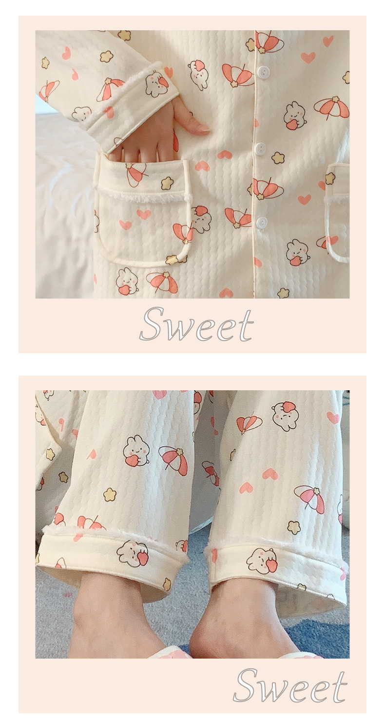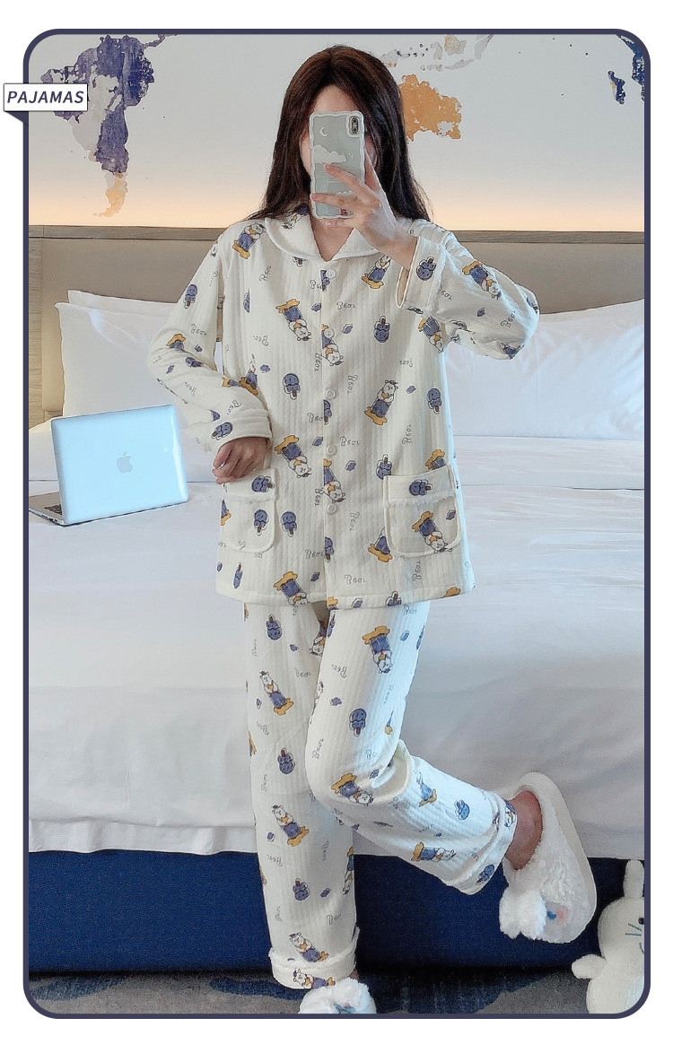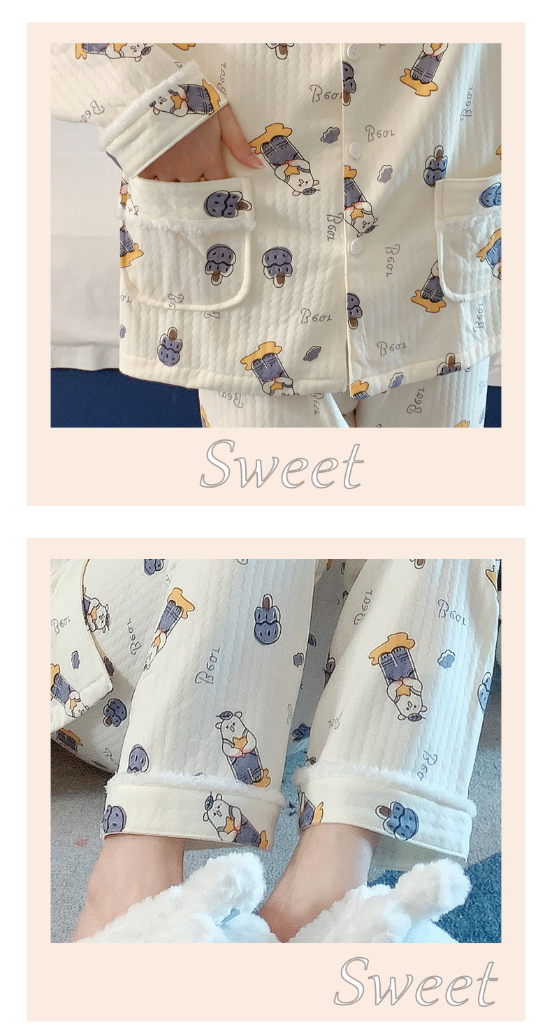 Japonés de dibujos animados pijamas las mujeres del otoño y el invierno Nuevo Aire sándwich algodón manga larga cardigan más tamaño flojo traje homewear