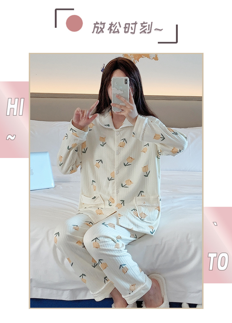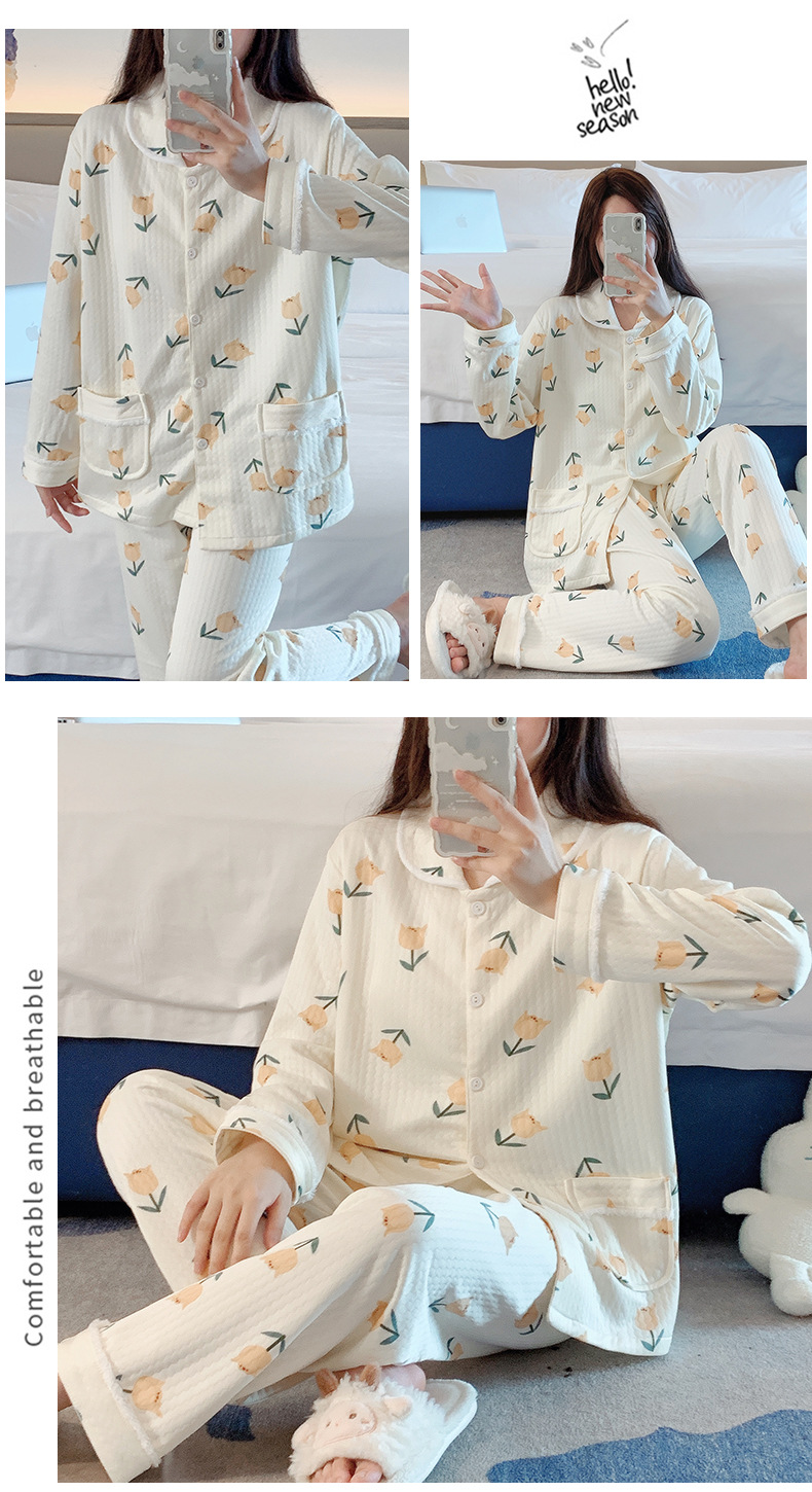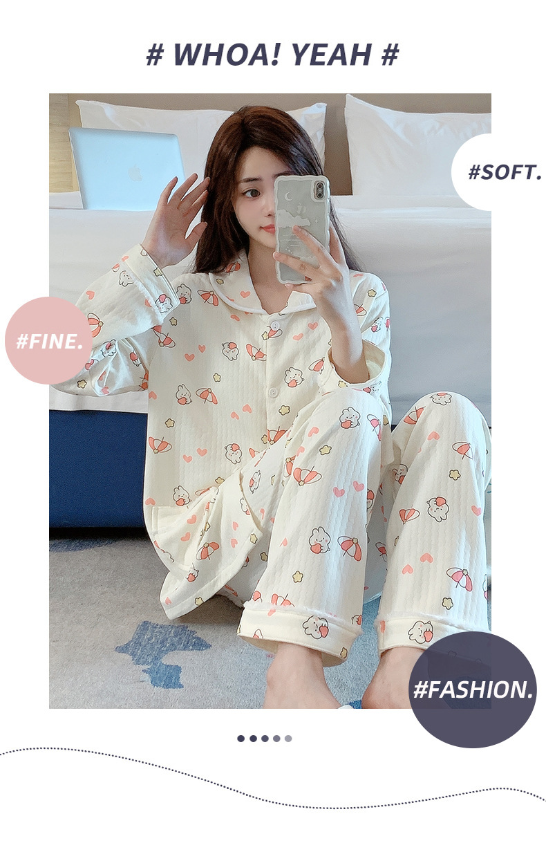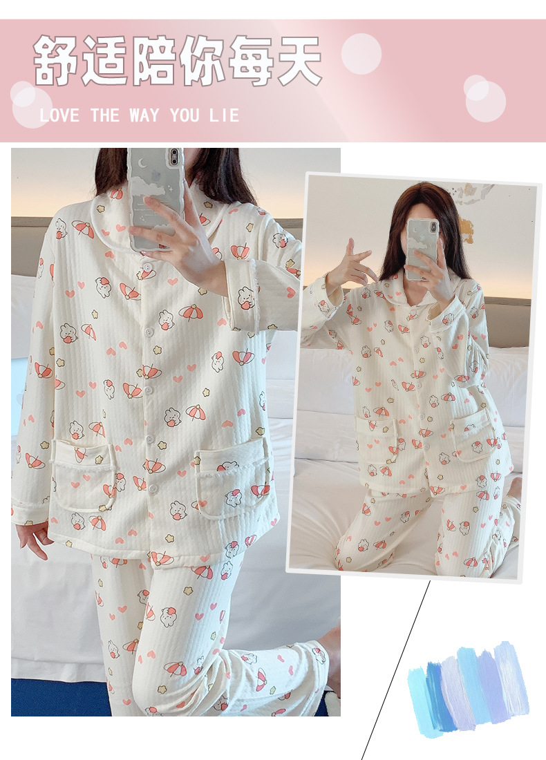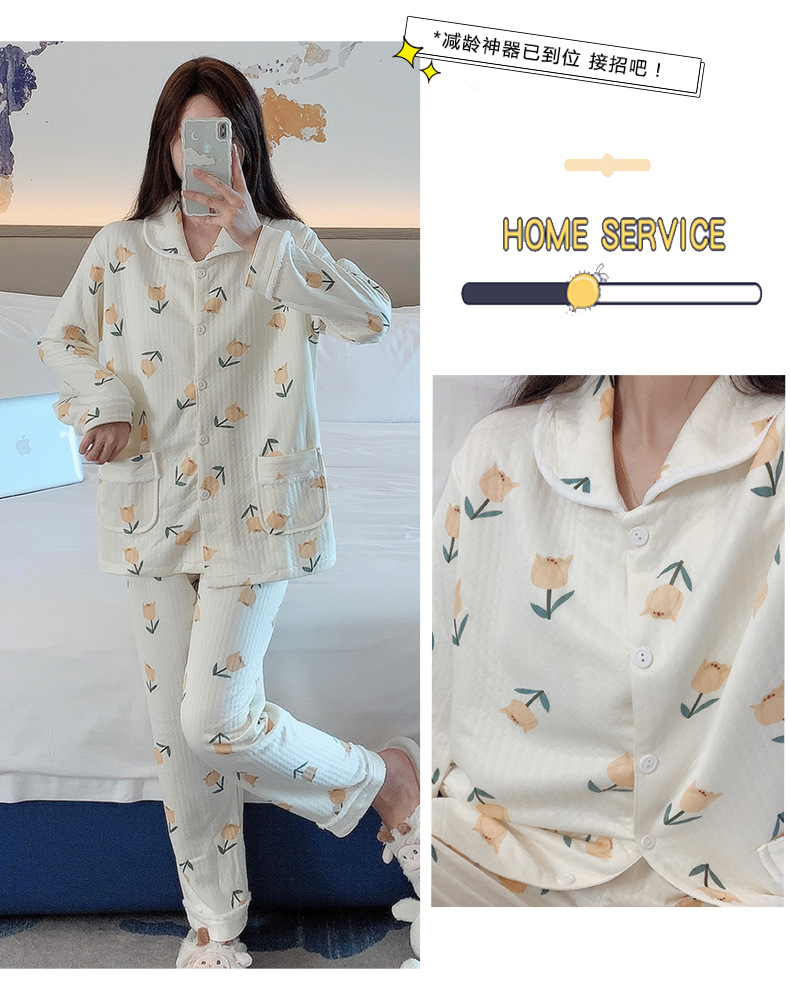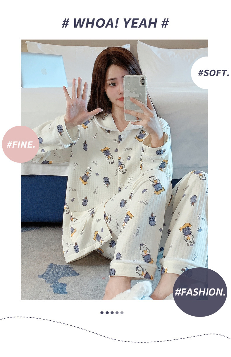 Japonés de dibujos animados pijamas las mujeres del otoño y el invierno Nuevo Aire sándwich algodón manga larga cardigan más tamaño flojo traje homewear