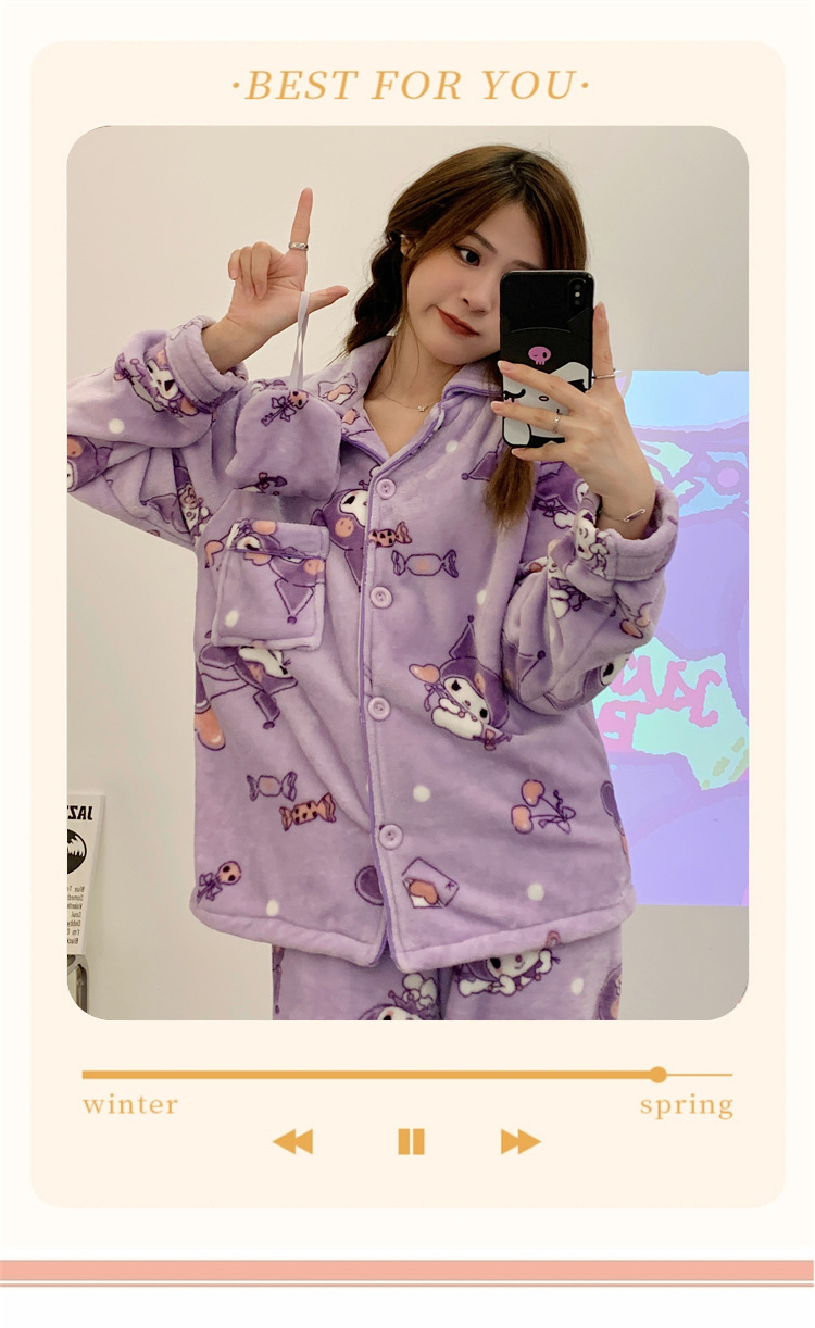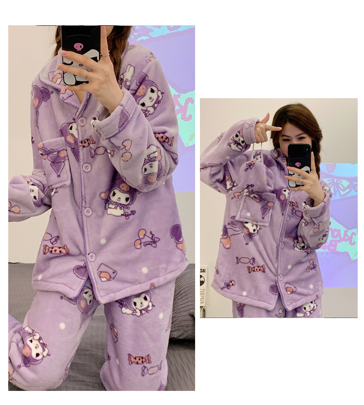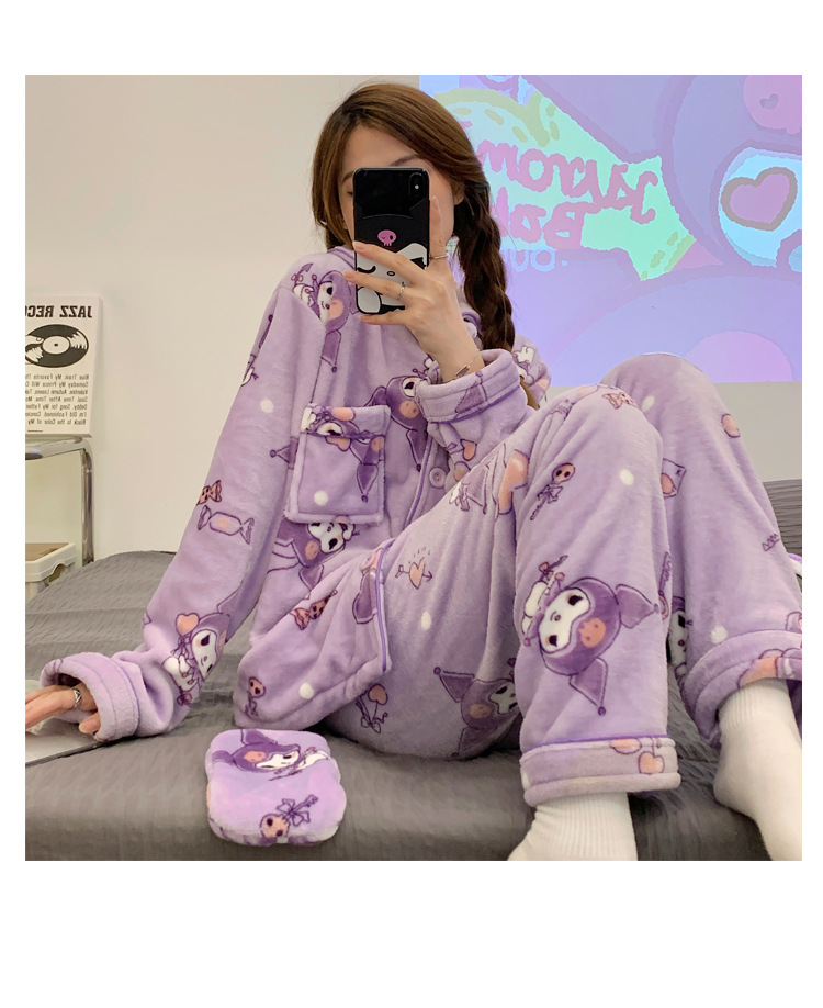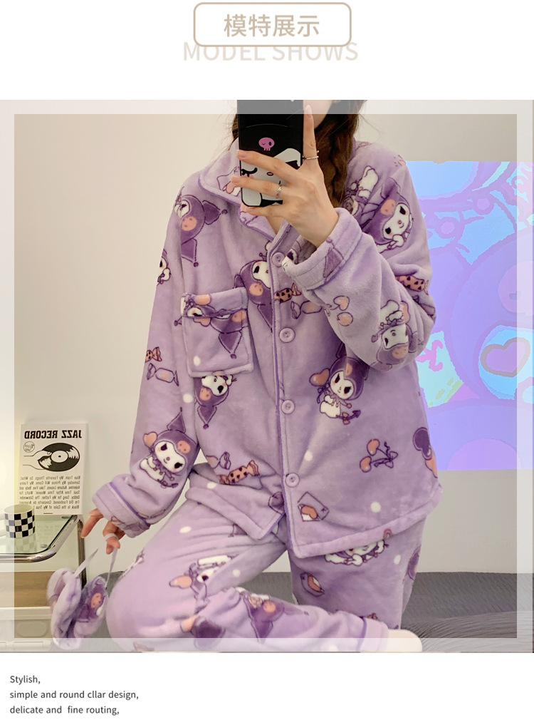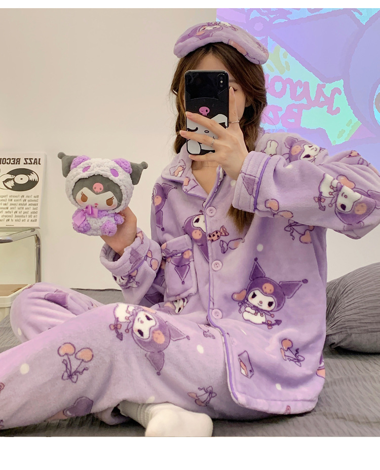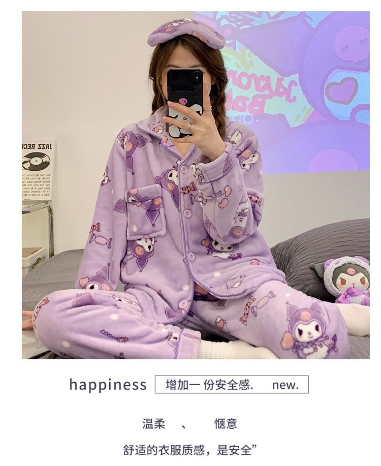 Coolomi pijamas de dibujos animados franela las mujeres Otoño e Invierno cardigan manga larga máscara ojo libre lindo casual homewear caliente