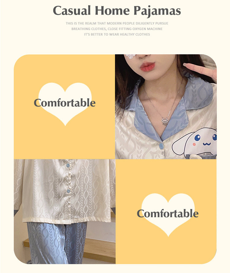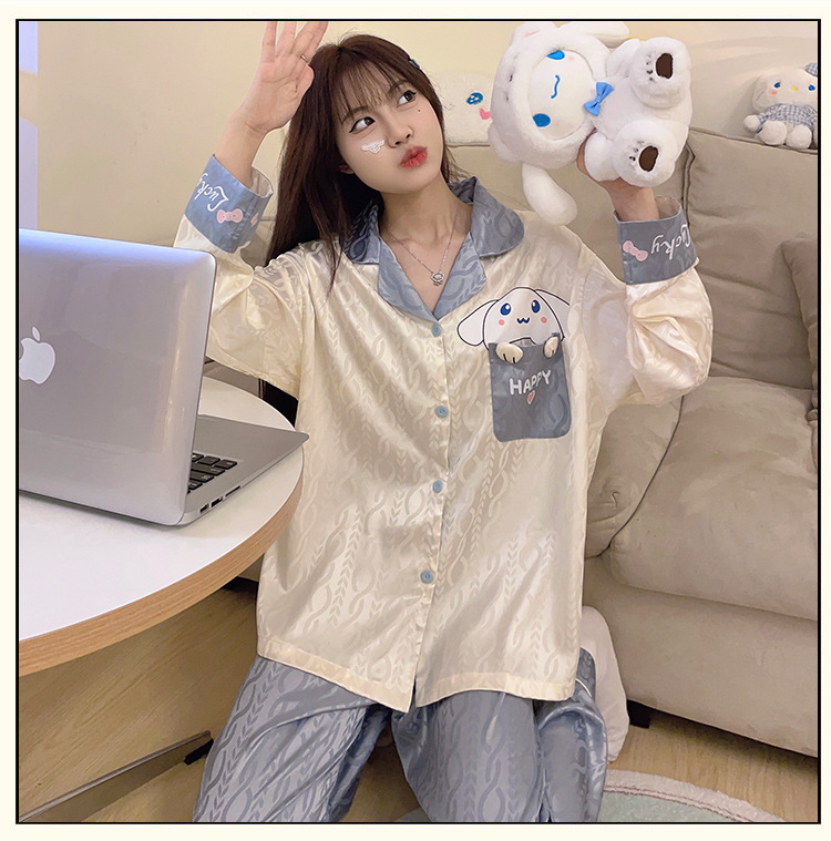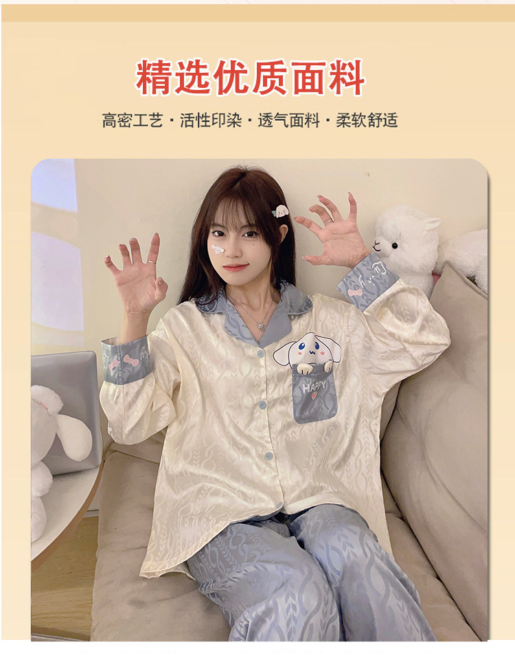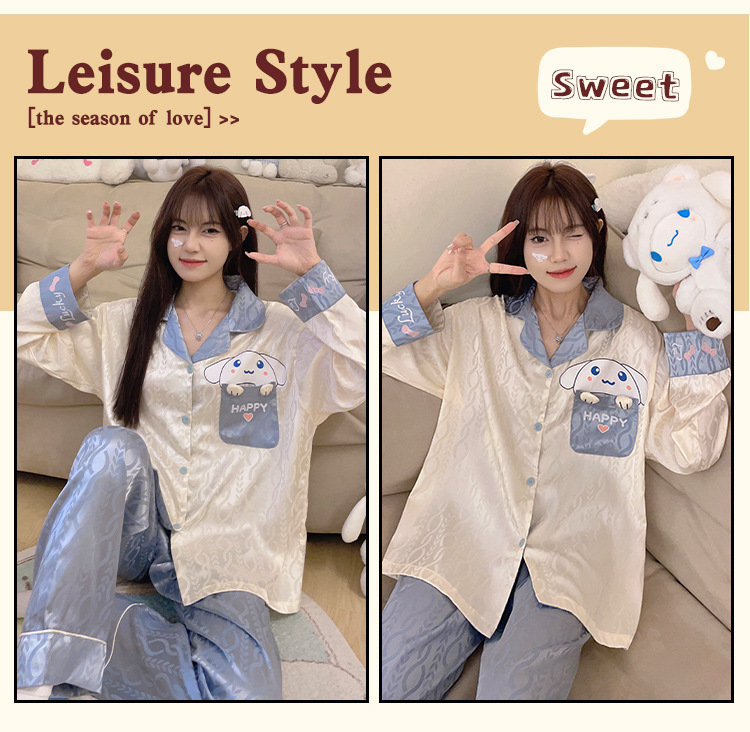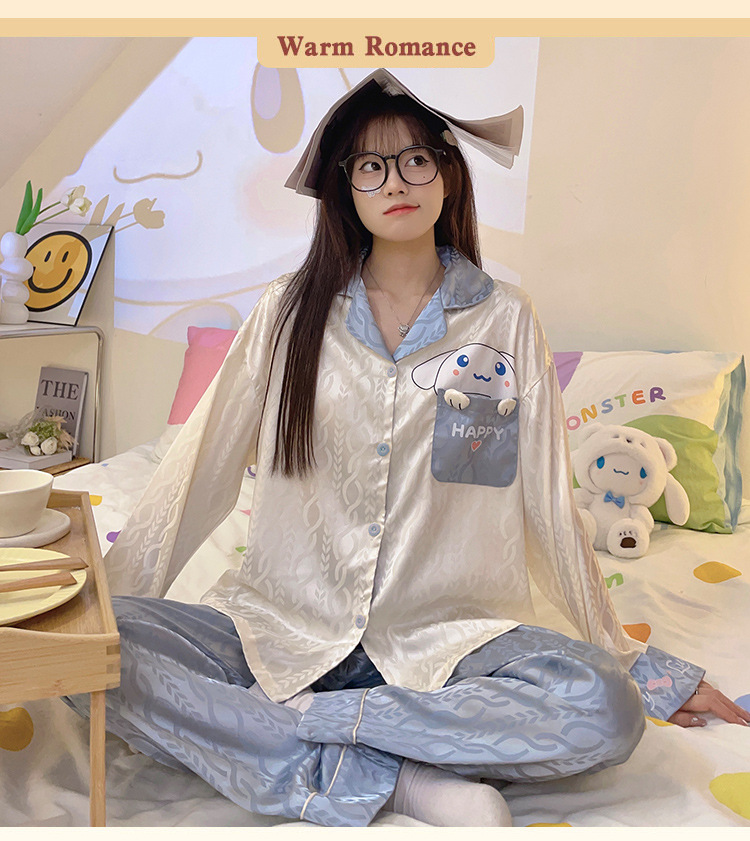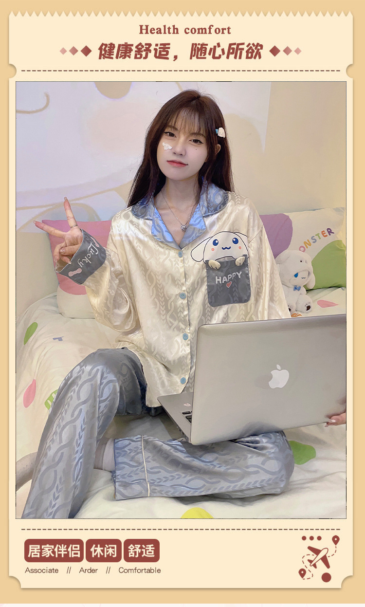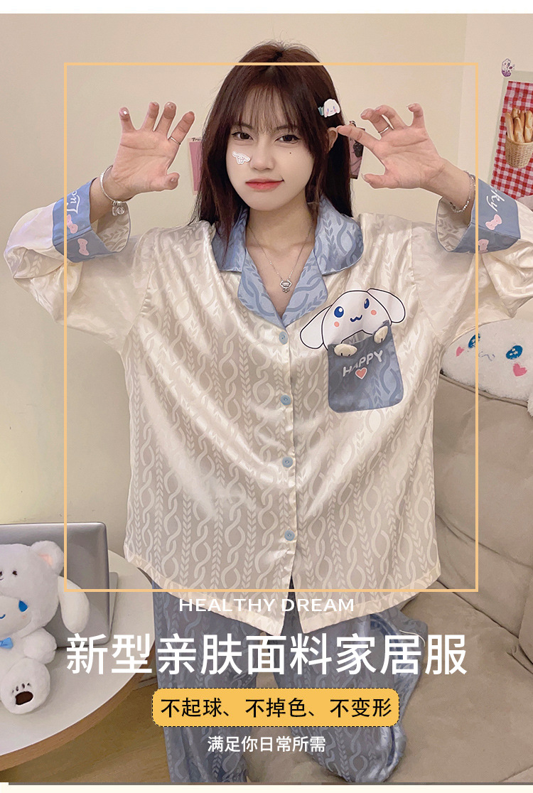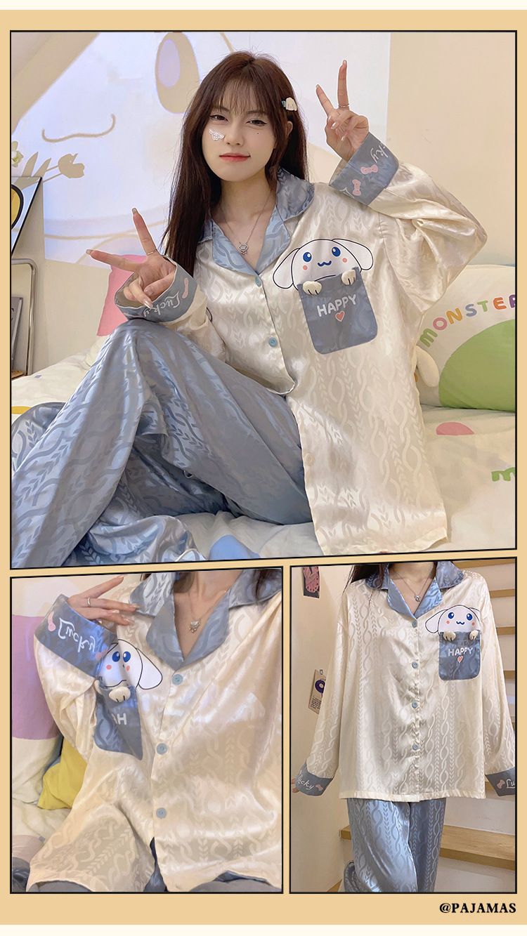 Estilo coreano ins Net estilo rojo pijamas de Seda Hielo Las Mujeres Otoño e Invierno manga larga dibujos animados lindo dulce chica desgaste del hogar traje