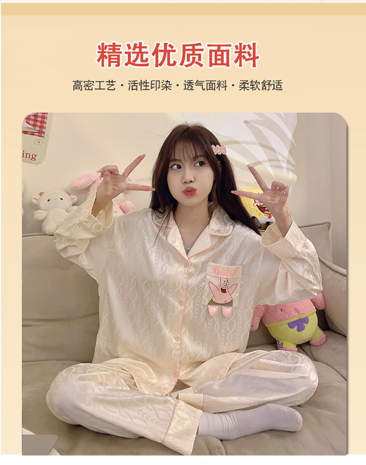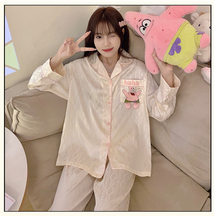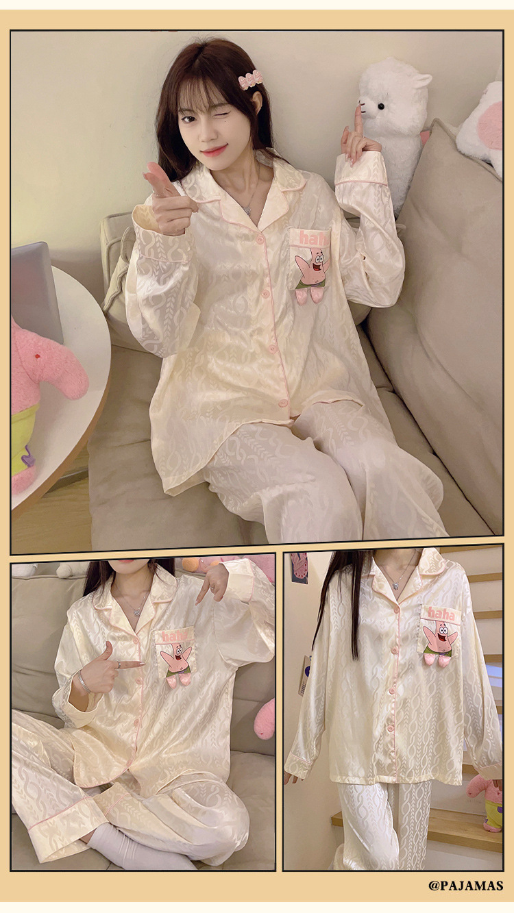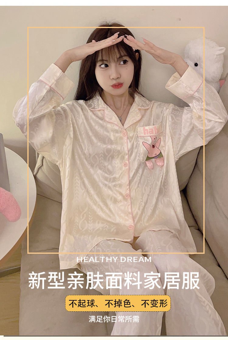 Paidaxing popular ins estilo pijamas de seda del hielo las mujeres otoño y el invierno cardigan manga larga dulce linda chica desgaste en casa traje