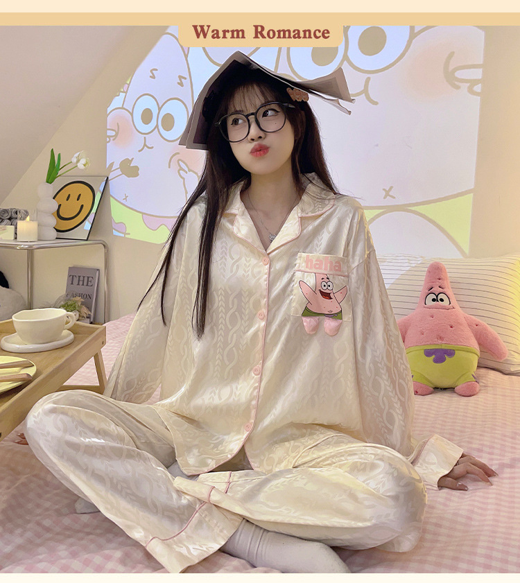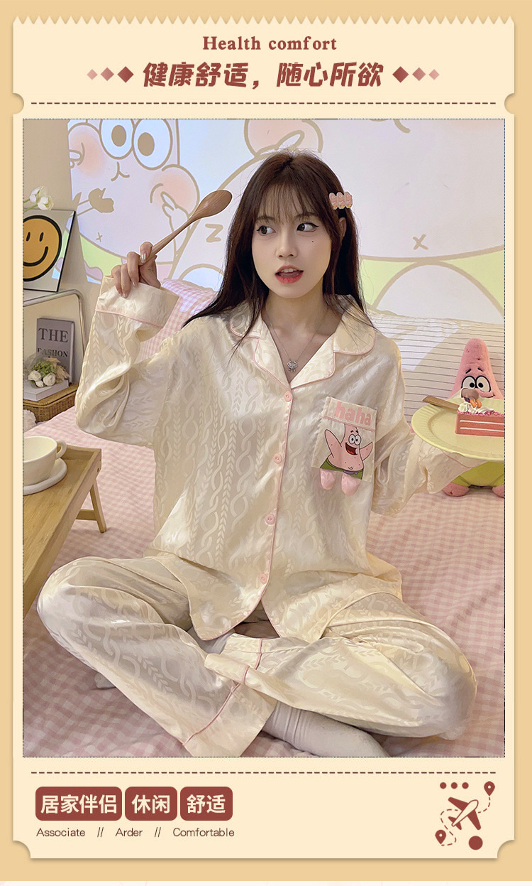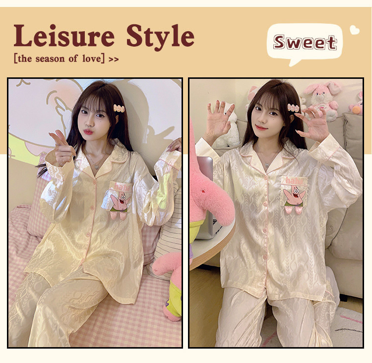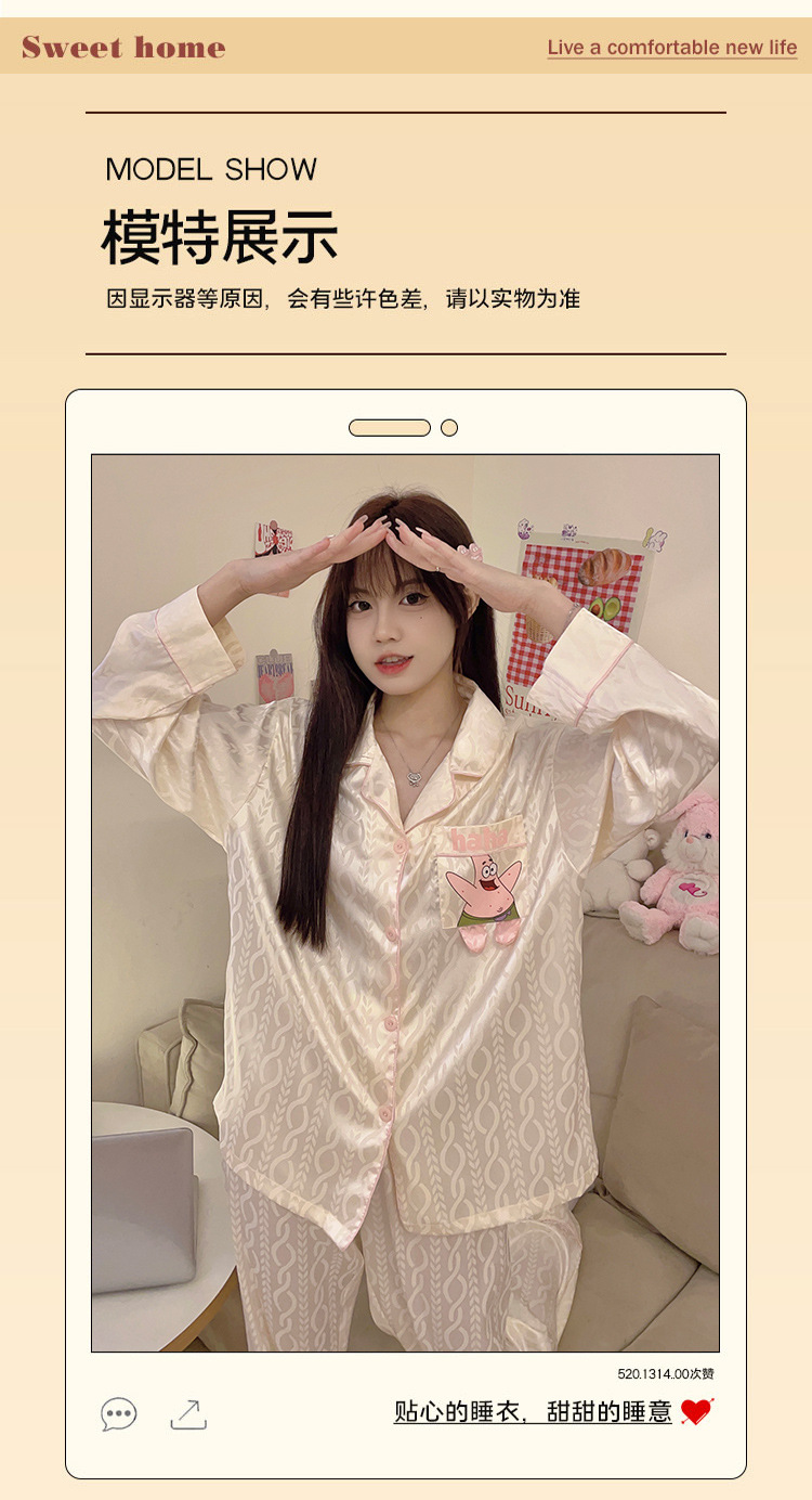 Paidaxing popular ins estilo pijamas de seda del hielo las mujeres otoño y el invierno cardigan manga larga dulce linda chica desgaste en casa traje