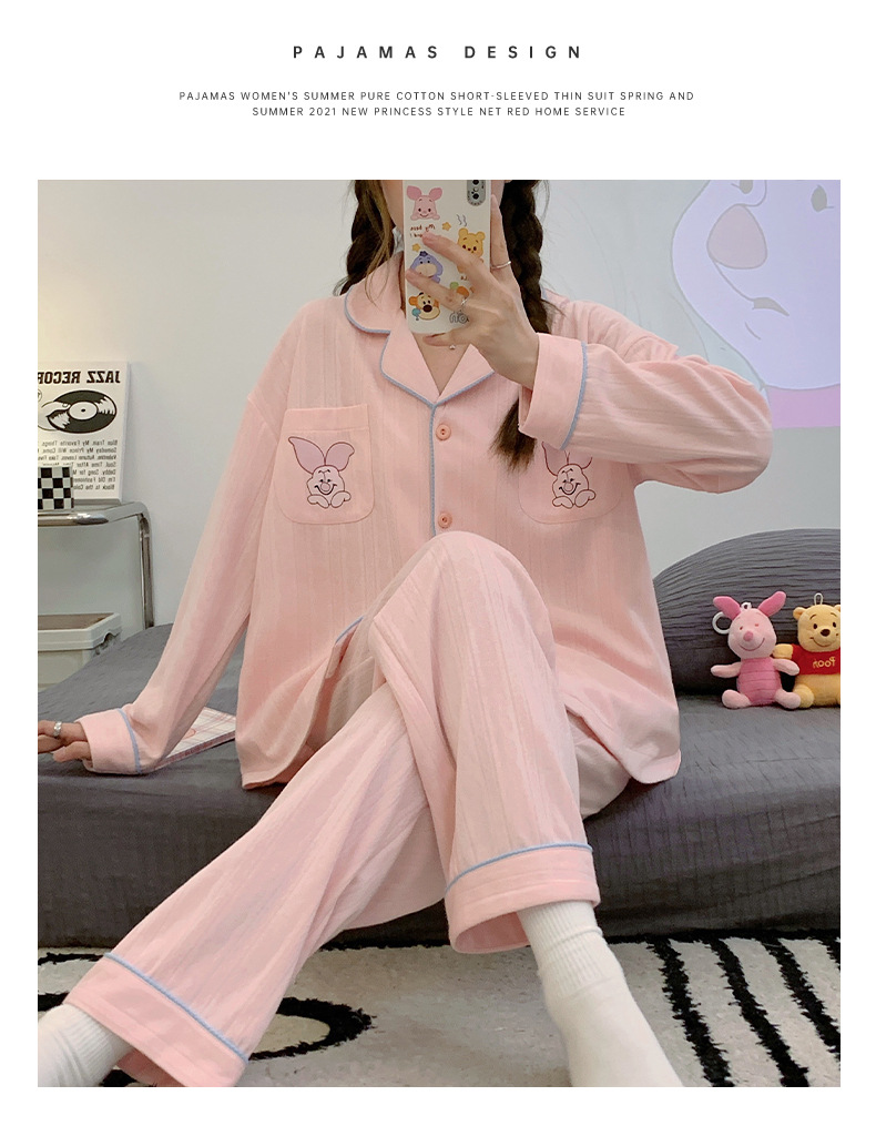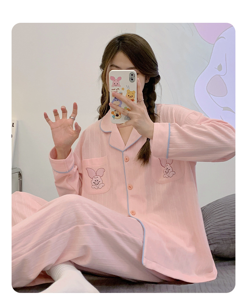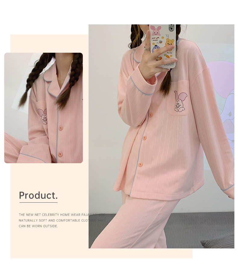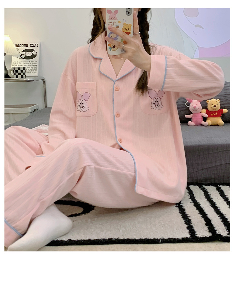 Nueva chica Rosa pijamas de las mujeres peinado jacquard algodón Otoño e Invierno manga larga solapa cardigan lindo dulce hogar desgaste traje