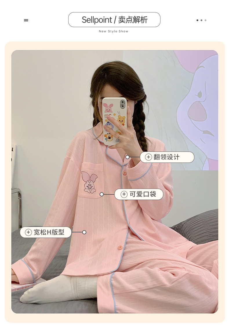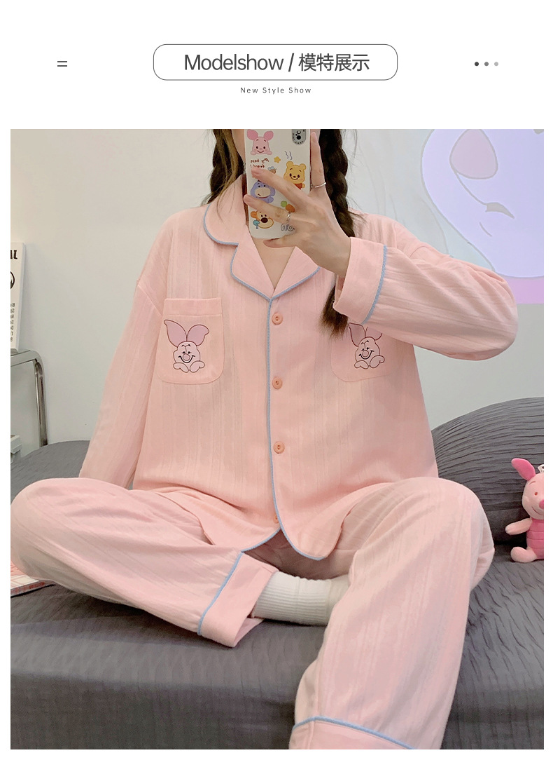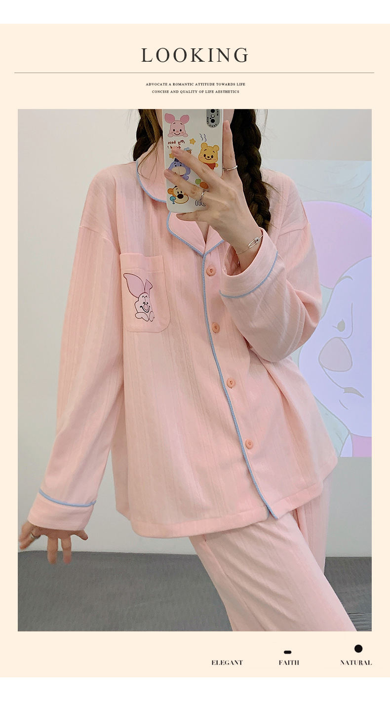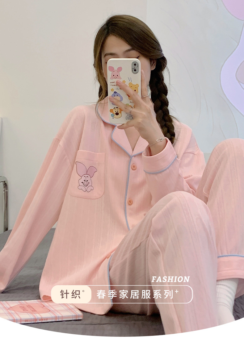 Nueva chica Rosa pijamas de las mujeres peinado jacquard algodón Otoño e Invierno manga larga solapa cardigan lindo dulce hogar desgaste traje