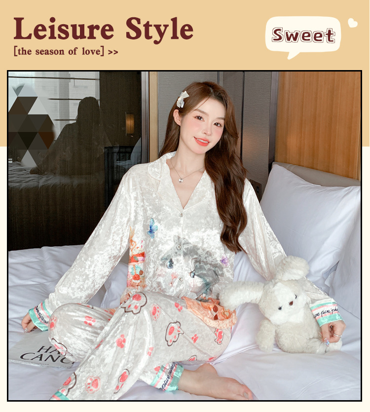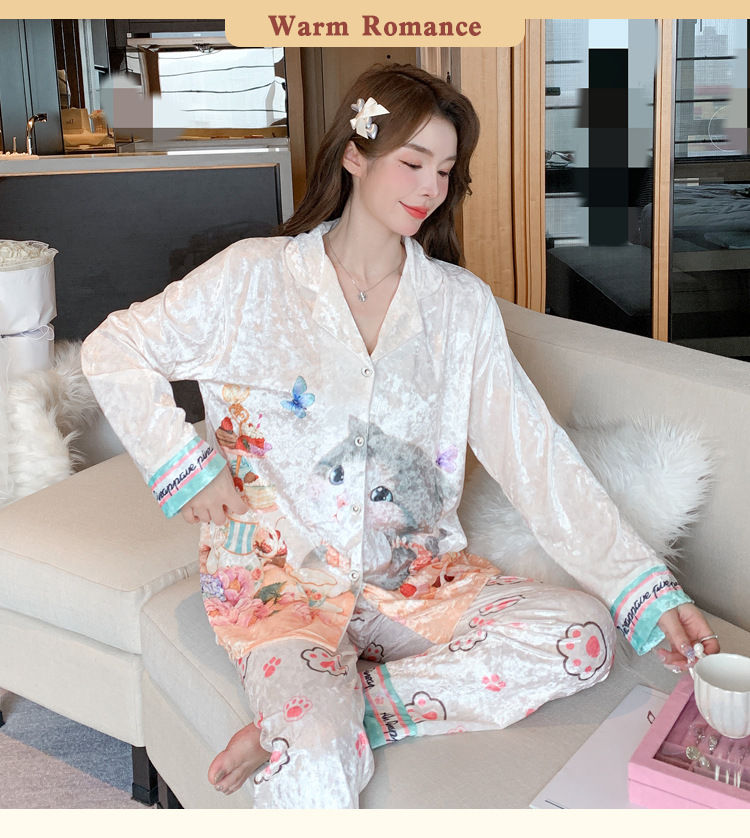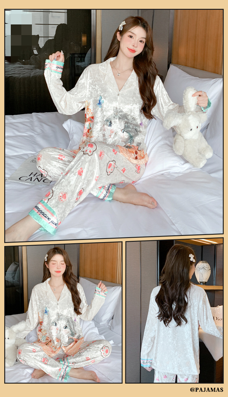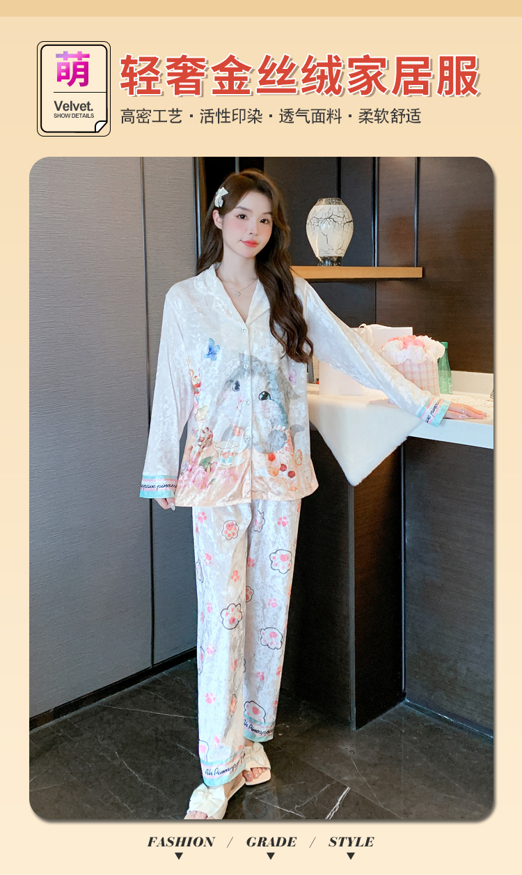 Online Celebrity ins Chanel estilo pijamas de las mujeres terciopelo dorado avanzado cardigan Otoño e Invierno manga larga dibujos animados lindo dulce desgaste del hogar