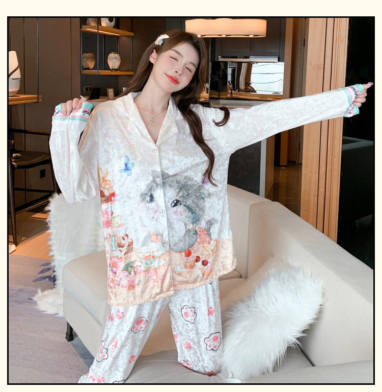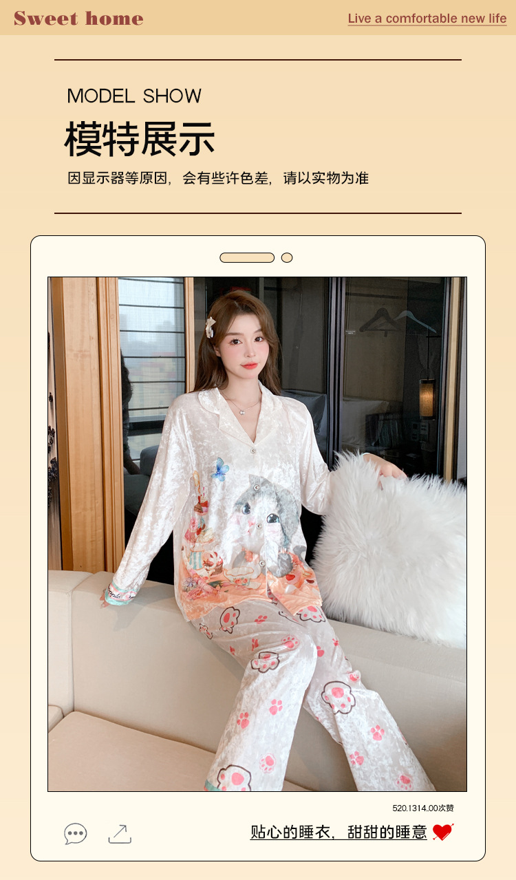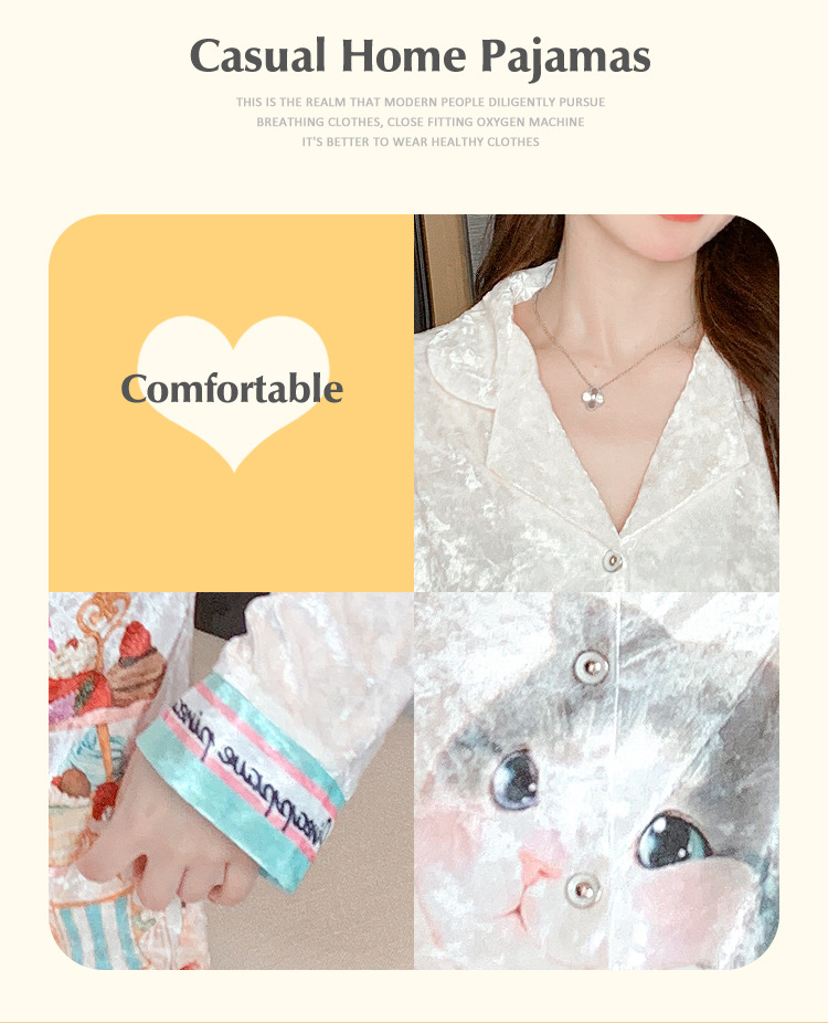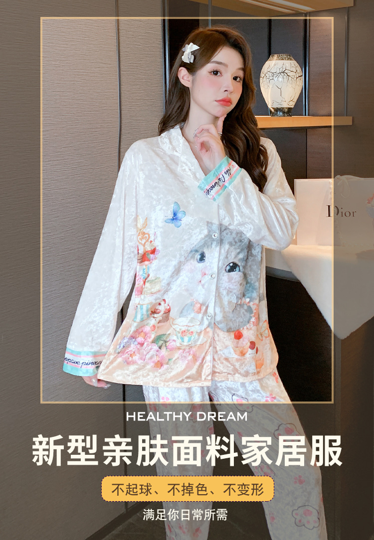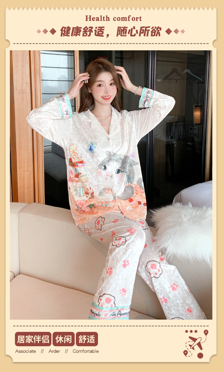 Online Celebrity ins Chanel estilo pijamas de las mujeres terciopelo dorado avanzado cardigan Otoño e Invierno manga larga dibujos animados lindo dulce desgaste del hogar