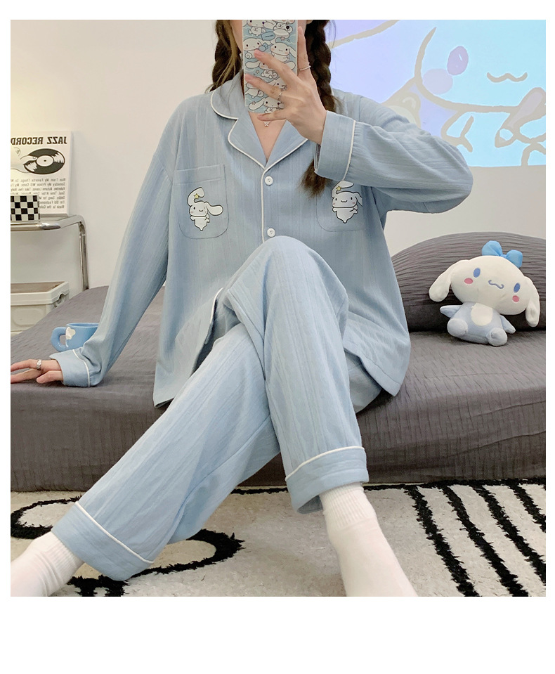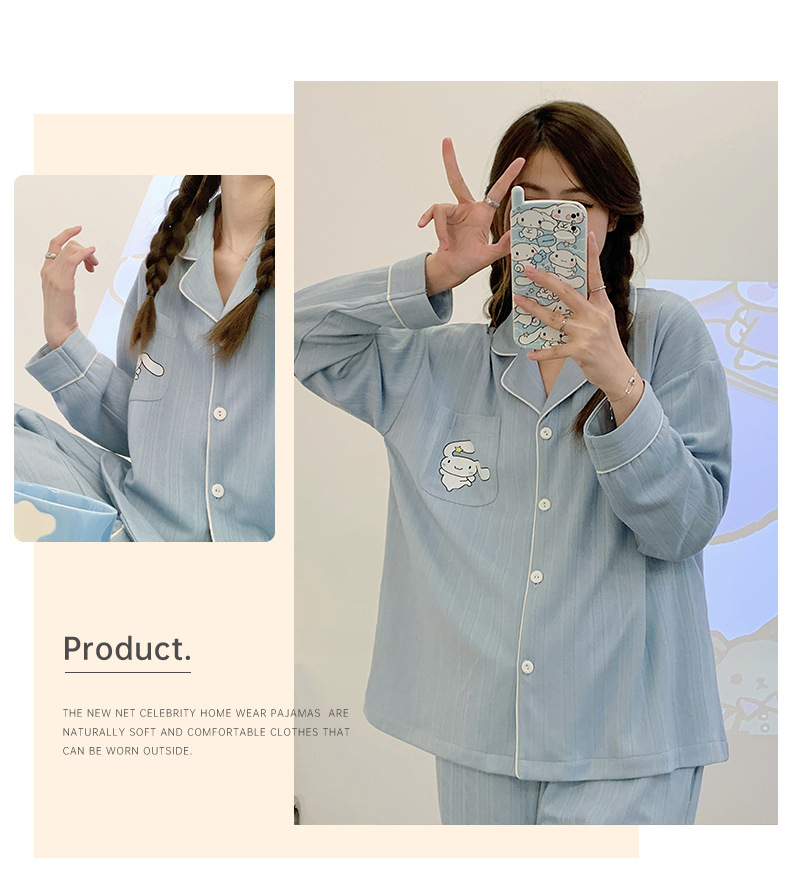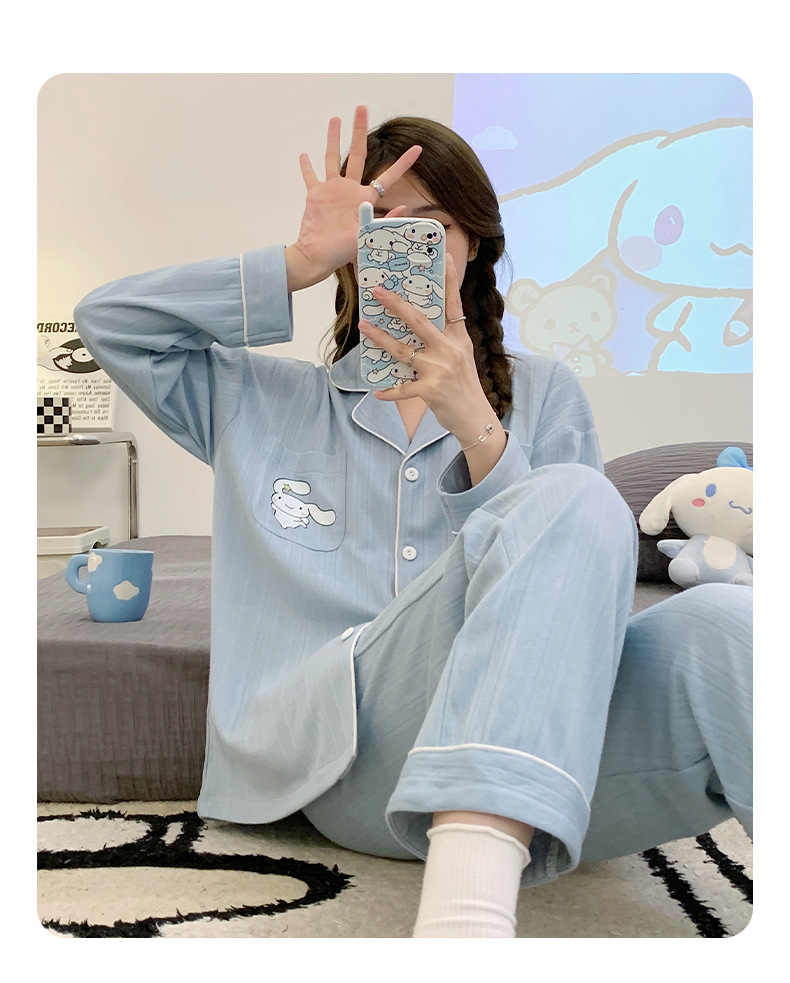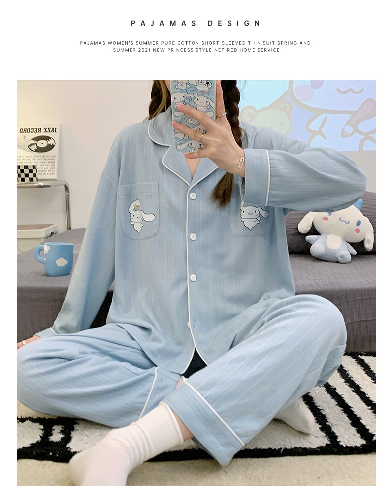 2023 nuevos pijamas azules de alta calidad de las mujeres de algodón jacquard de otoño e invierno de manga larga cardigan linda chica dulce ropa de casa traje