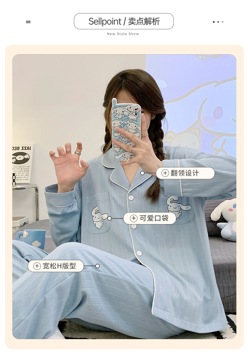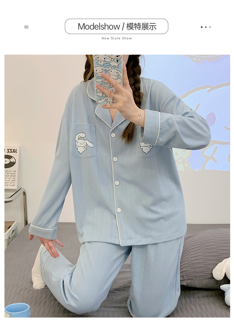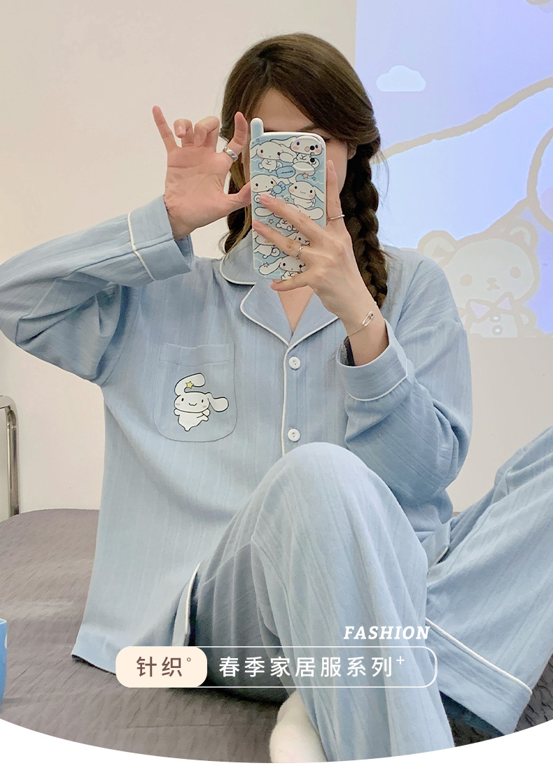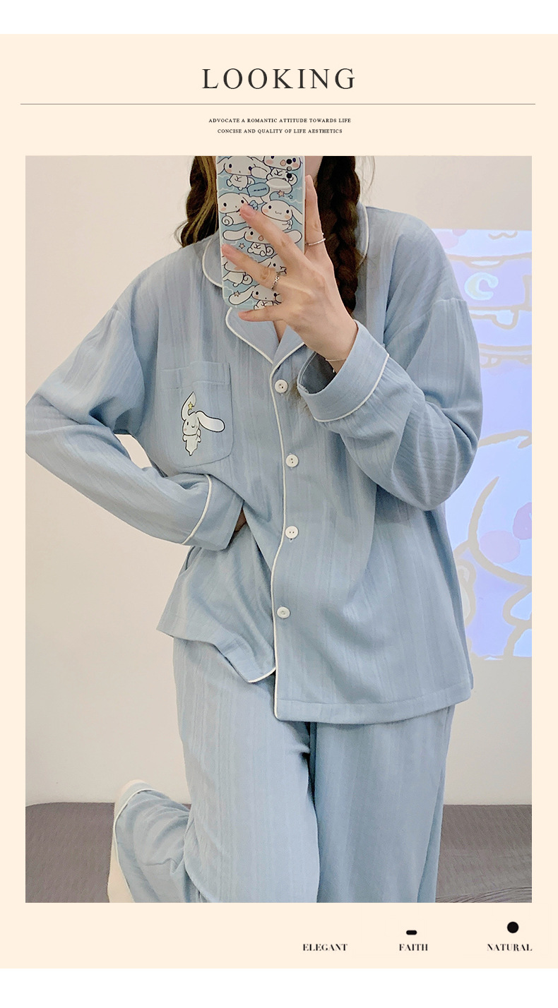 2023 nuevos pijamas azules de alta calidad de las mujeres de algodón jacquard de otoño e invierno de manga larga cardigan linda chica dulce ropa de casa traje