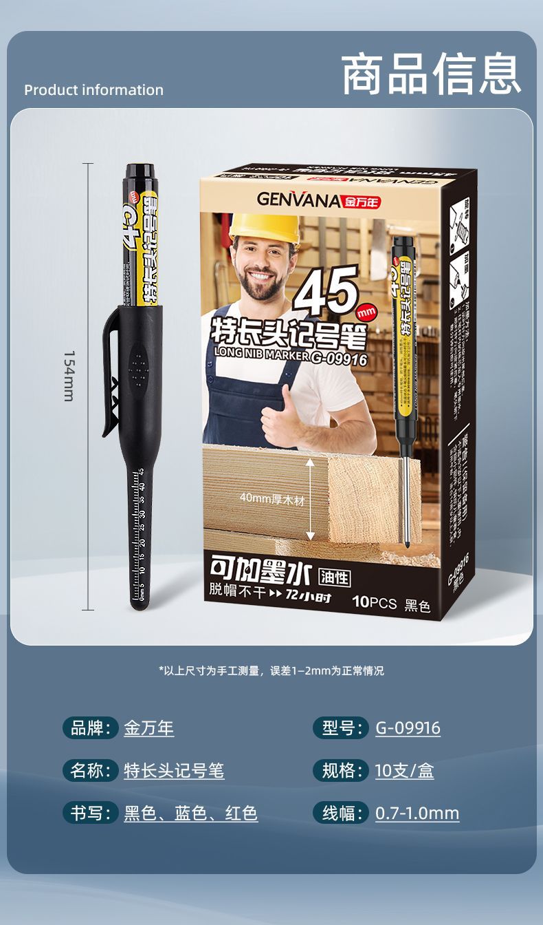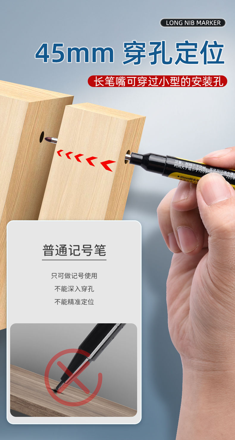 Jin Wannian Bolígrafo aceitoso de cabeza ultralarga Bolígrafo especial para carpintería de obra Cerradura de puerta Bolígrafo de boca larga multiusos impermeable 45mm