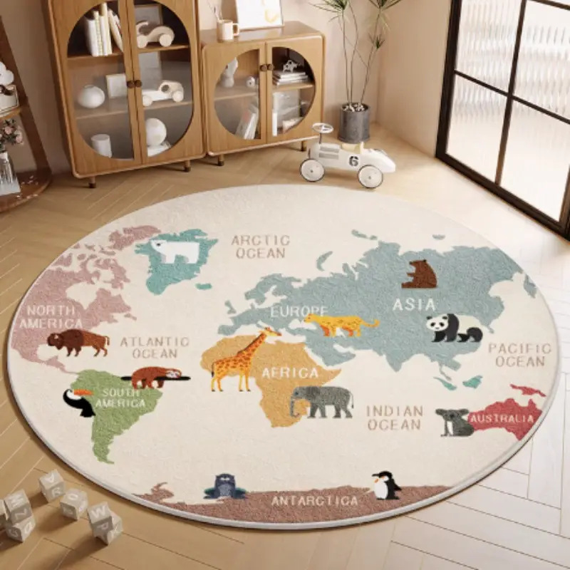 Alfombra redonda de animales de dibujos animados Alfombra de sala de estar para el hogar Manta de la cama del dormitorio Alfombra decorativa resistente a la suciedad Alfombra fácil de cuidar