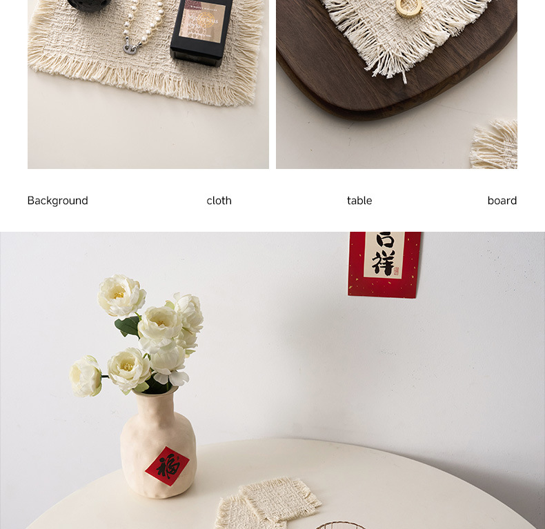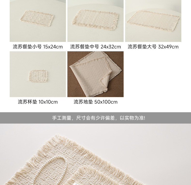 | Color | El posavasos de borlas es de unos 10 * 10 cm, el tamaño pequeño del posavasos de borlas es de unos 15 * 24 cm, el tamaño medio del posavasos de borlas es de unos 24 * 32 cm, el tamaño grande del posavasos de borlas es de unos 32 * 49 cm, y el posavasos de borlas es de unos 50 * 100 cm. |