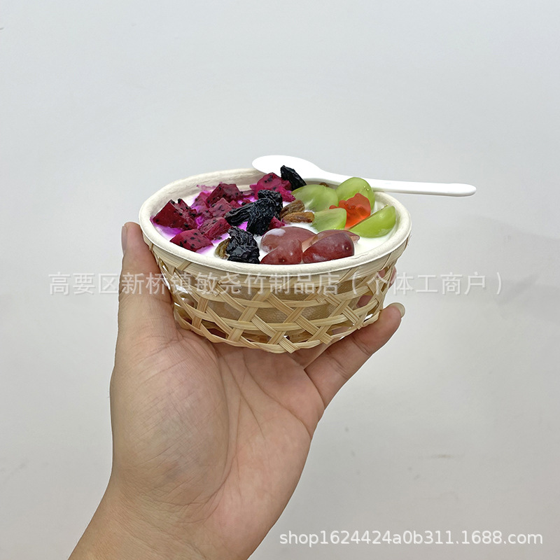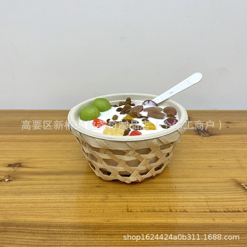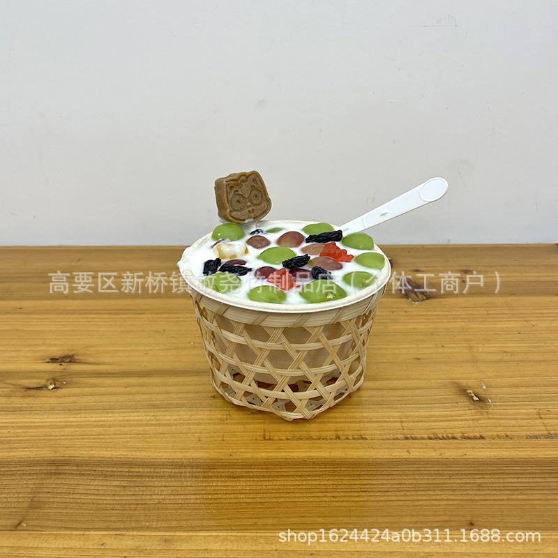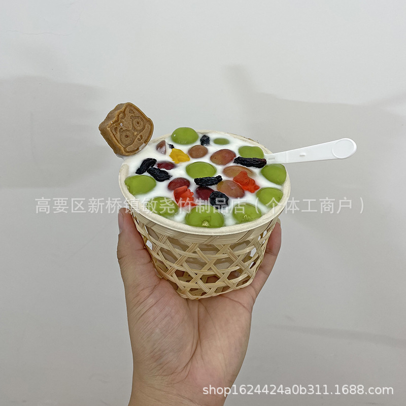 Tacos de barro de bambú, cestas de frutas, bocadillos, bocadillos, tiendas de té de leche, bocadillos creativos antiguos, decoración de pastel de flores de frijoles