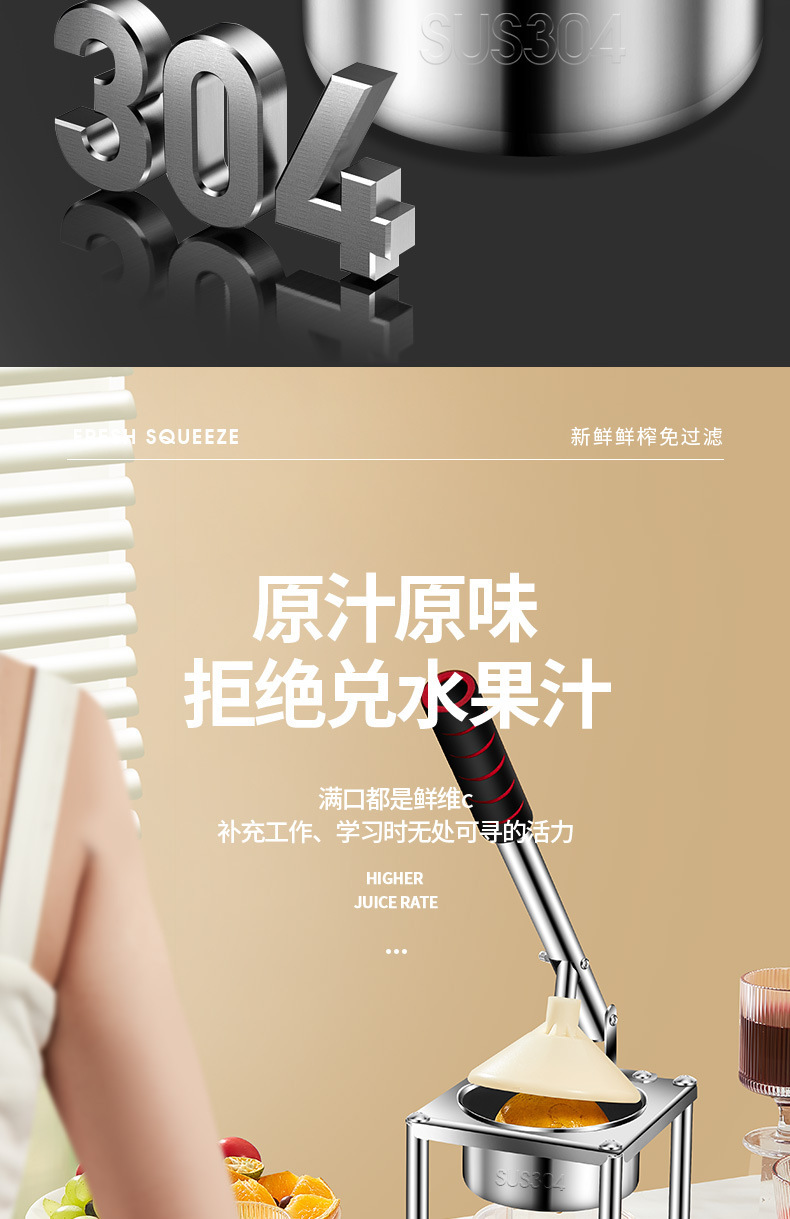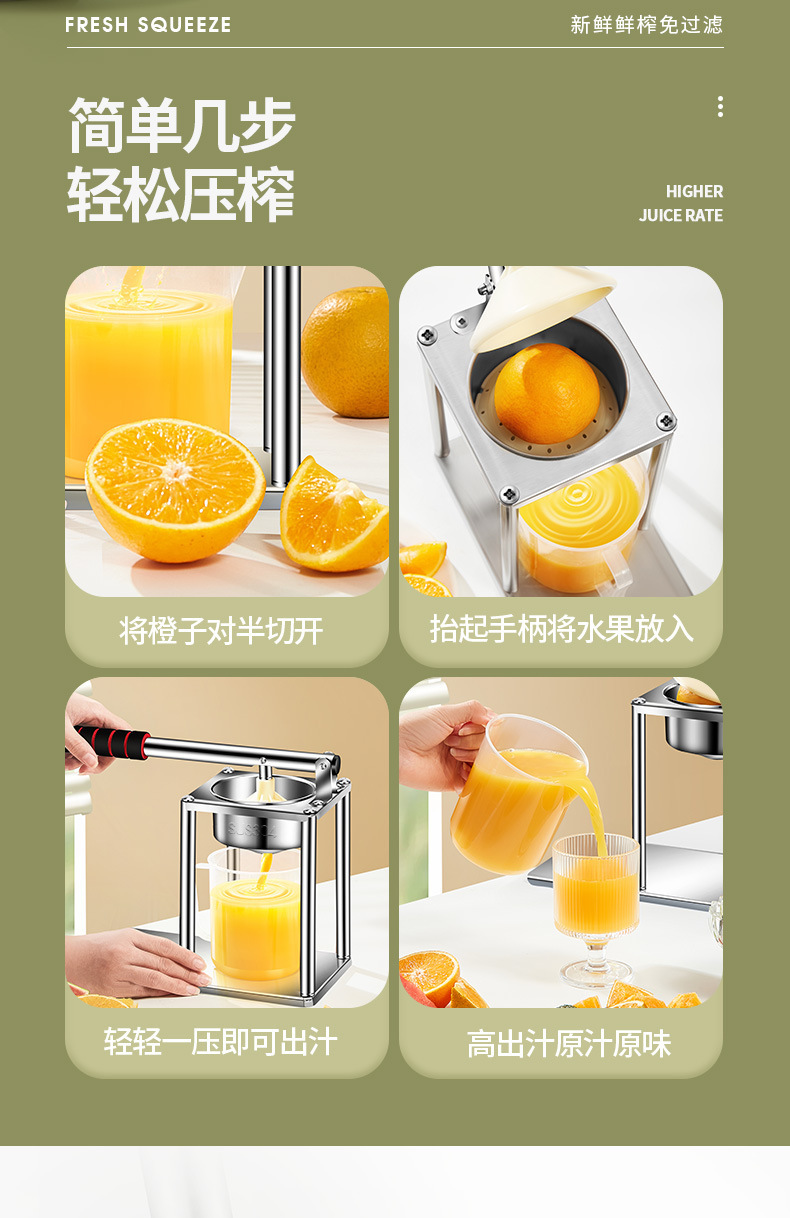 Exprimidor Separación de jugo de escoria Pequeña máquina de jugo portátil para el hogar Exprimidor de jugo de naranja en un puesto de prensado manual comercial