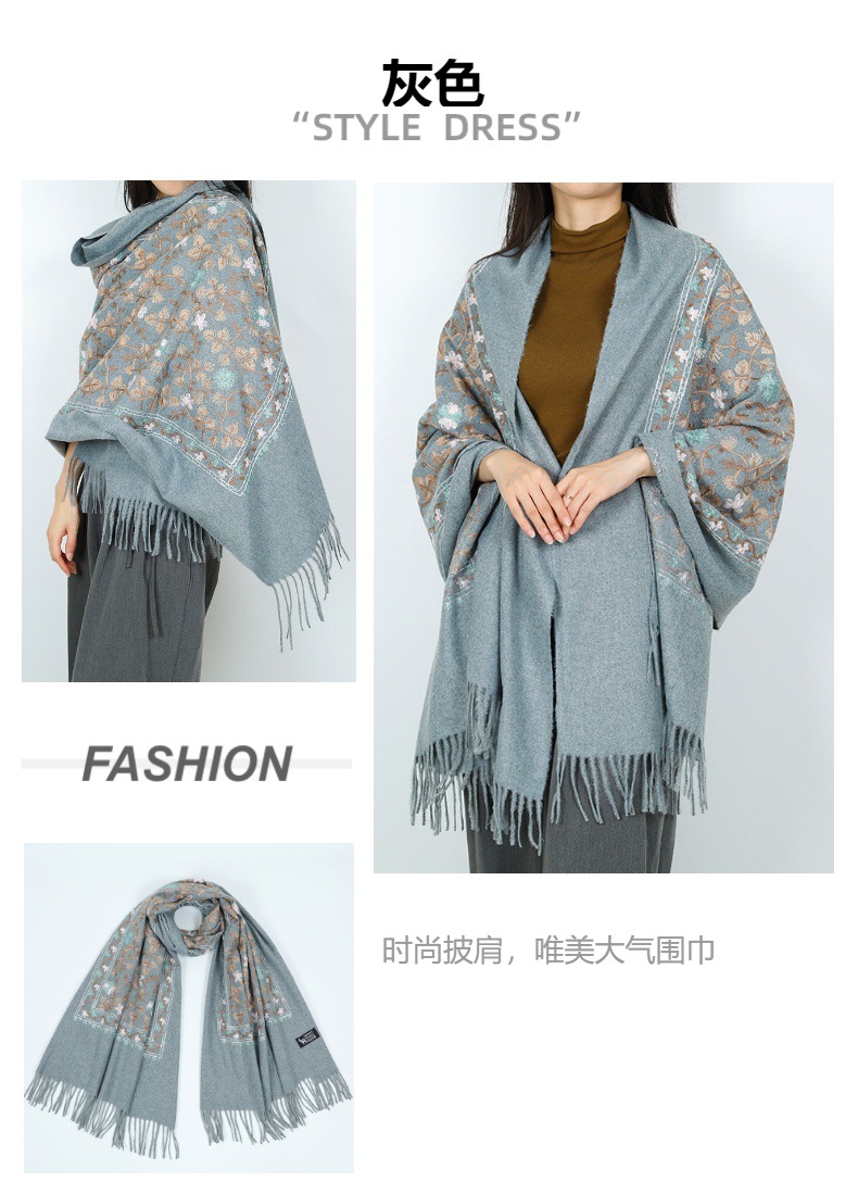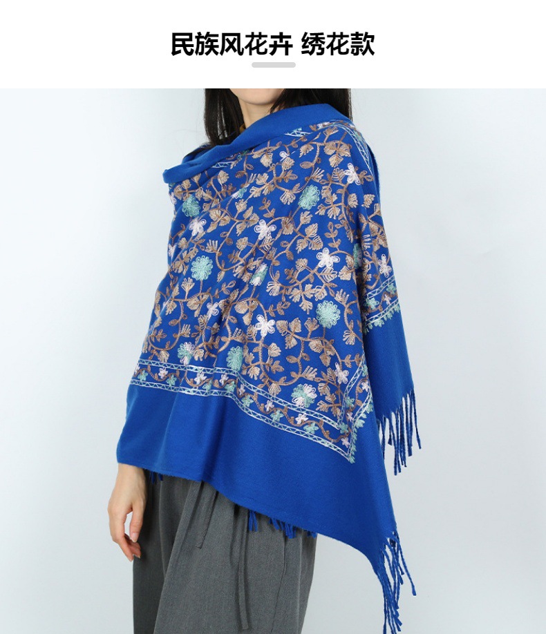 2024 nuevo bufandas de damas de estilo nacional flor flor flor floral gran chal turismo vestir con bordas con aire caliente