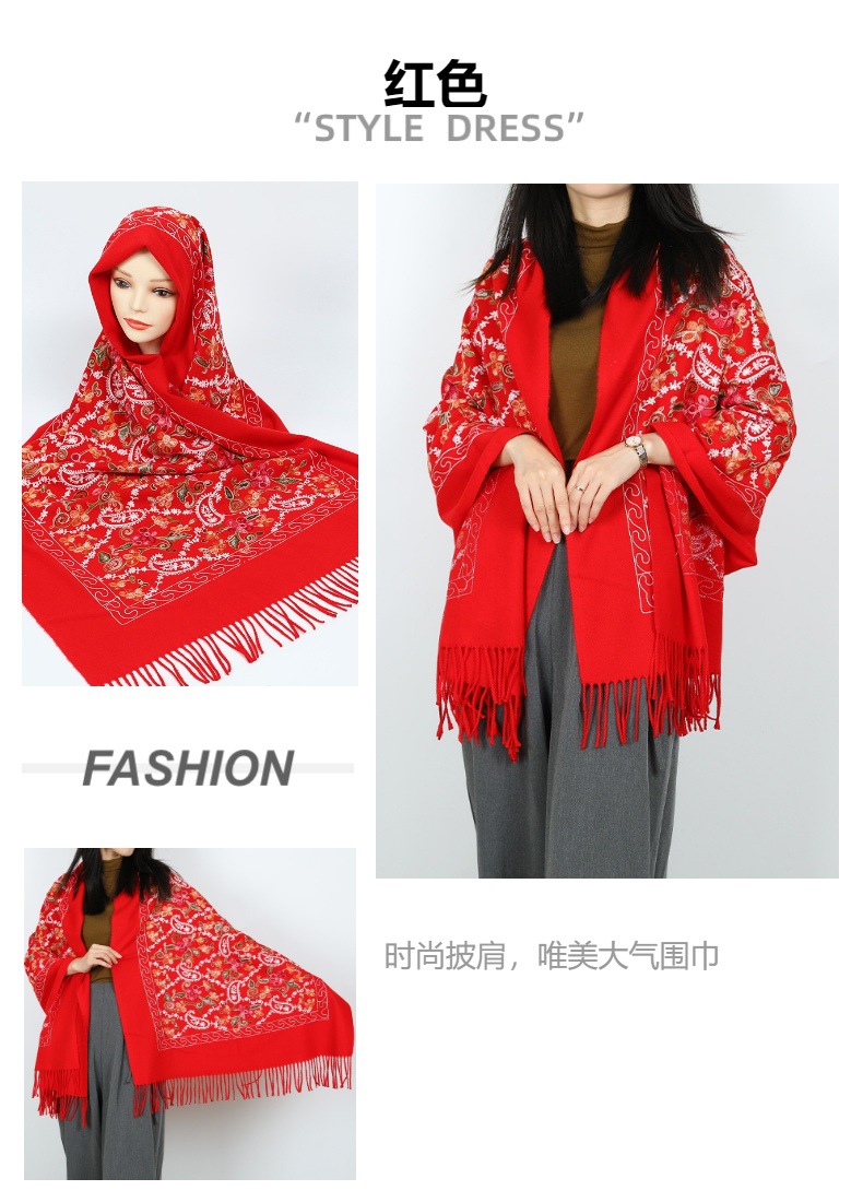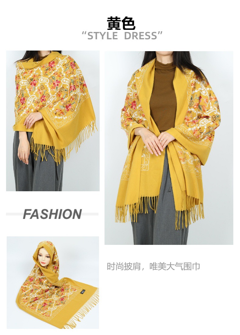 2024 nuevo invierno estilo nacional de invierno bufandas de cachemira flor de caju decoración cálida