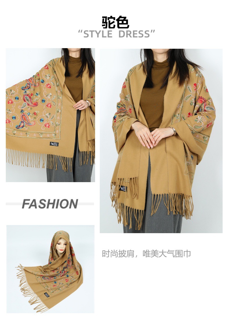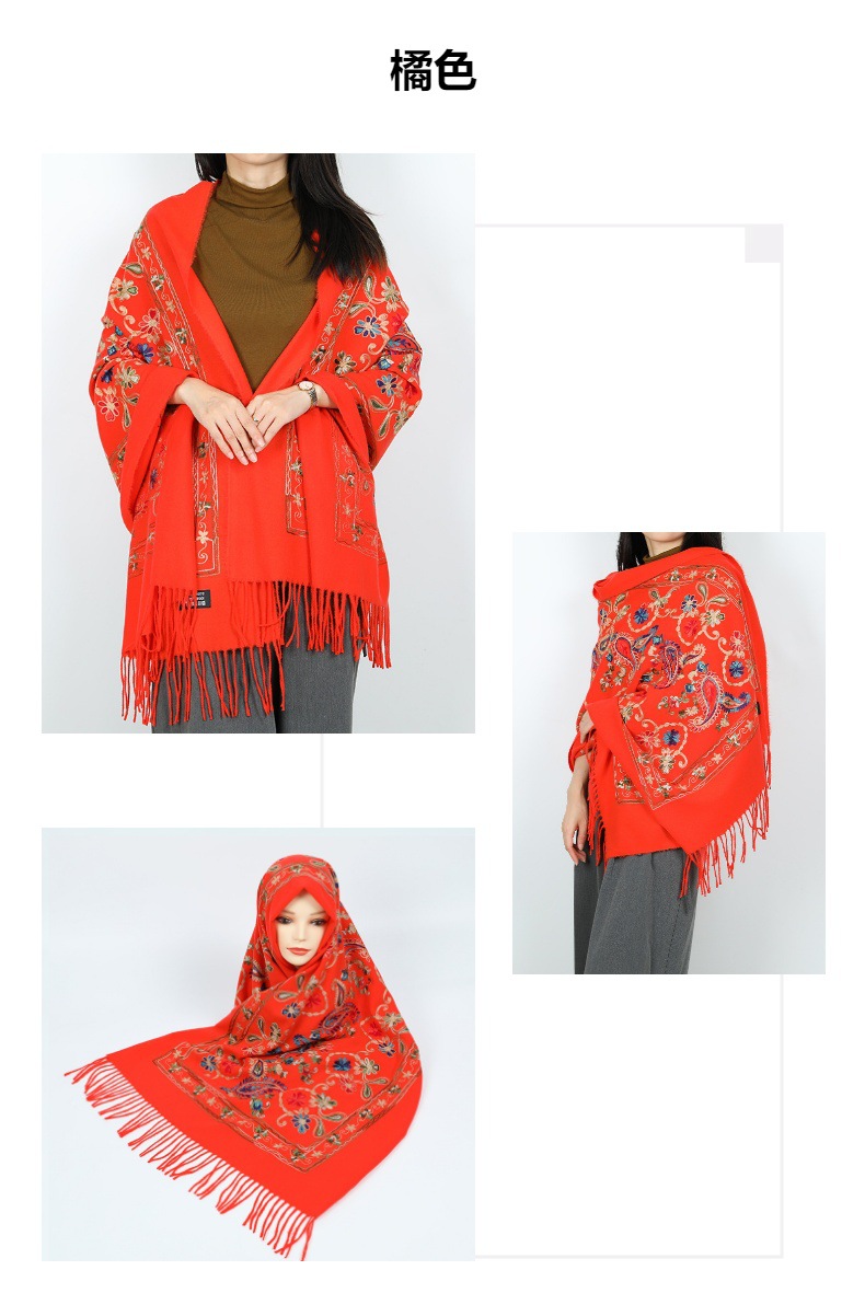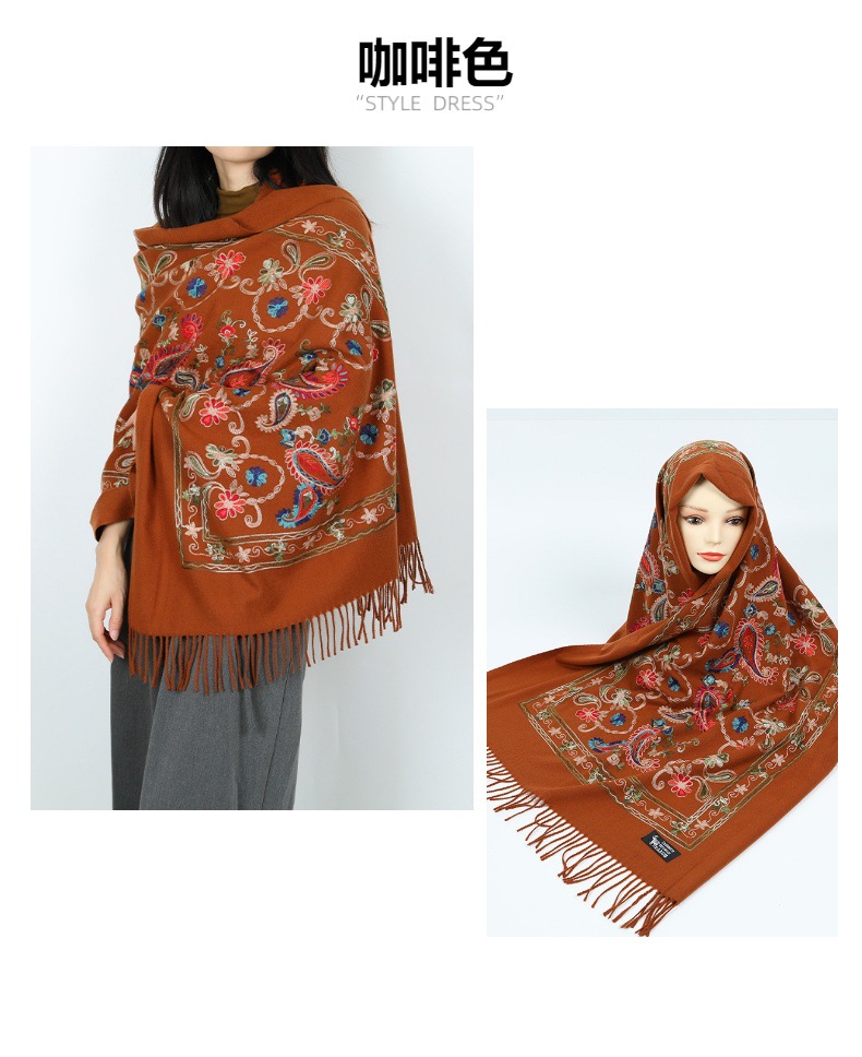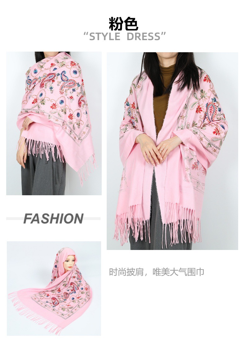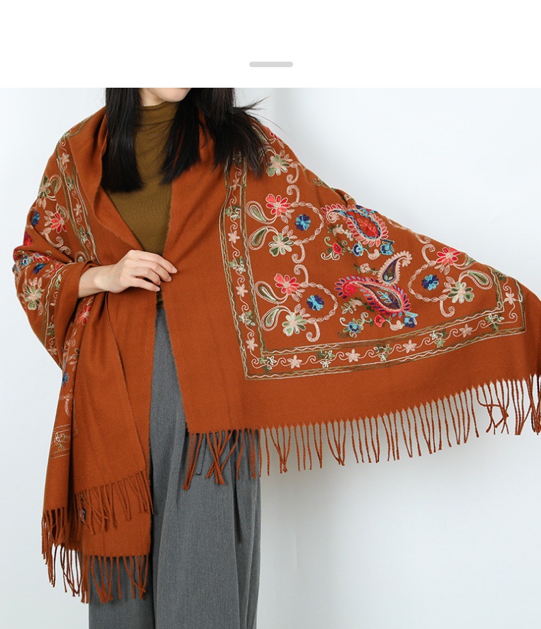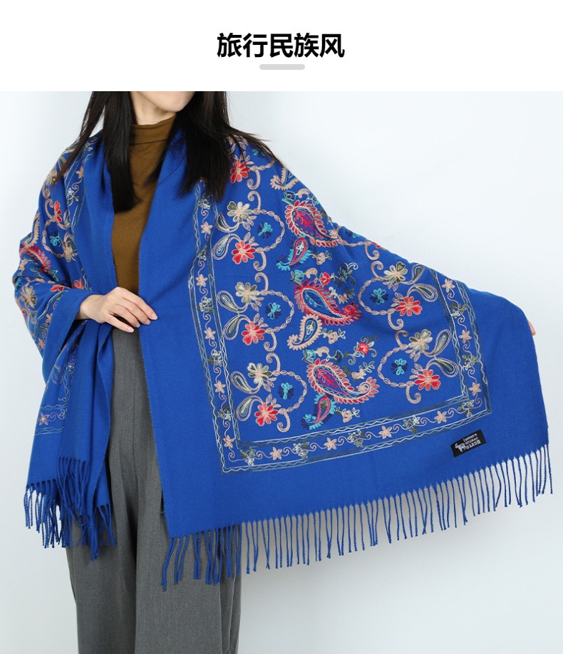 Natural fresco estilo nacional bufandas de flores de moda de mujer gran chal turismo vestir con bordas gruesas y cálidas con mayorista