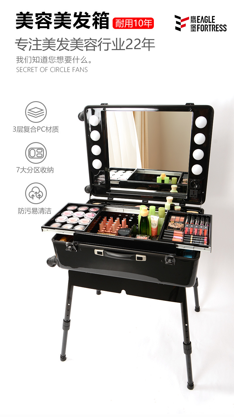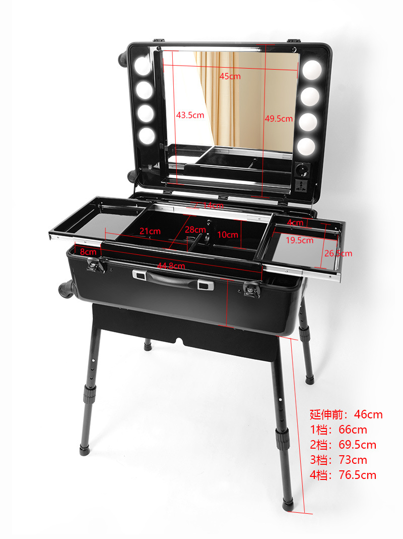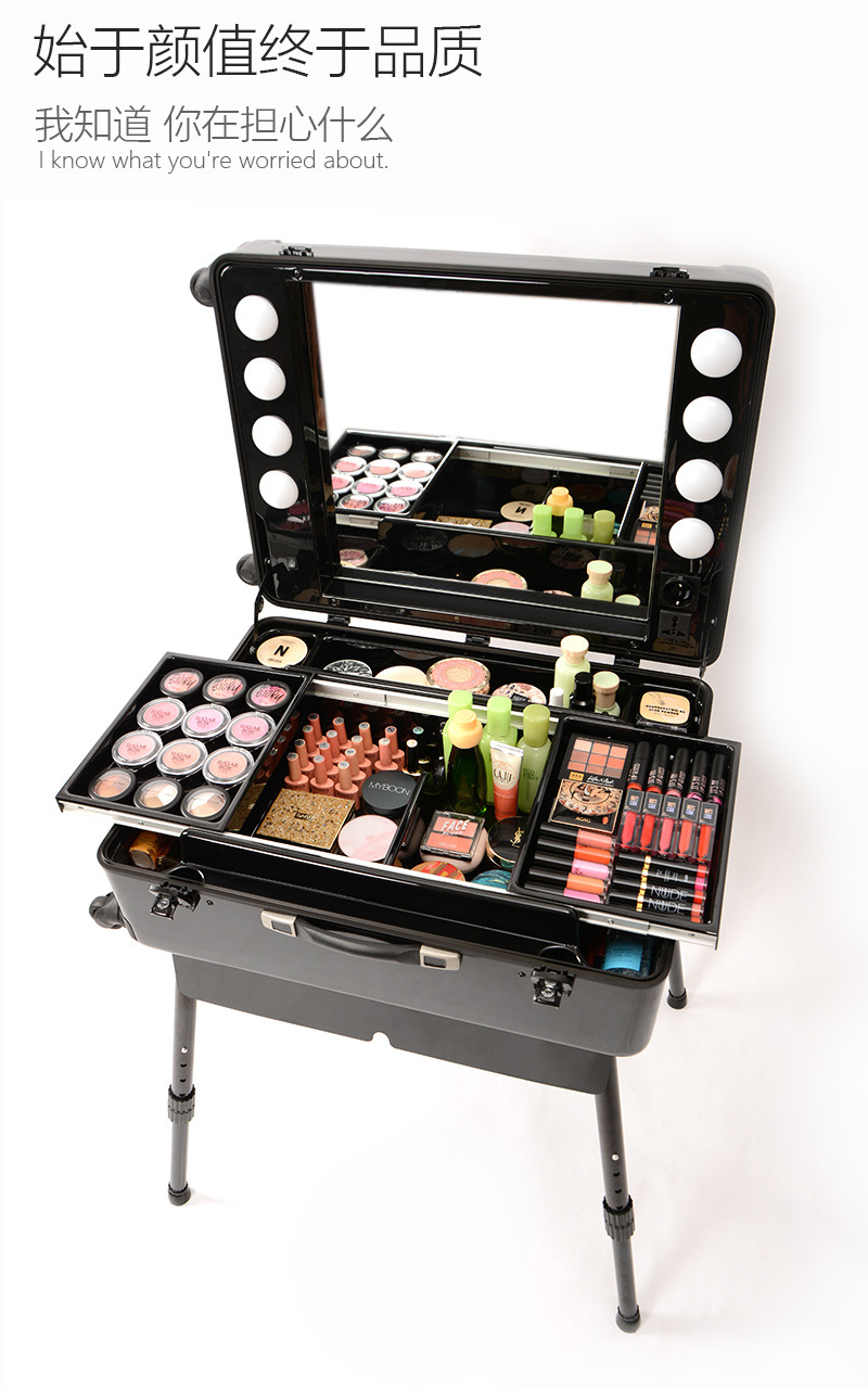 24 pulgadas lámpara de maquillaje caja de lámparas de varilla de tracción universal caja de maquillaje caja de herramientas de belleza de uñas multifuncional bolsa de maquillaje retro