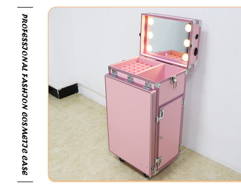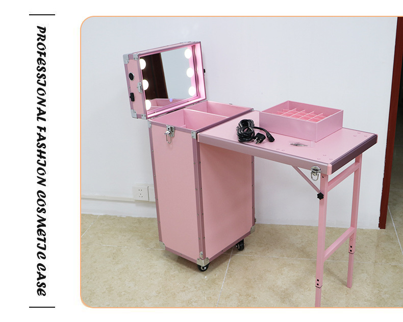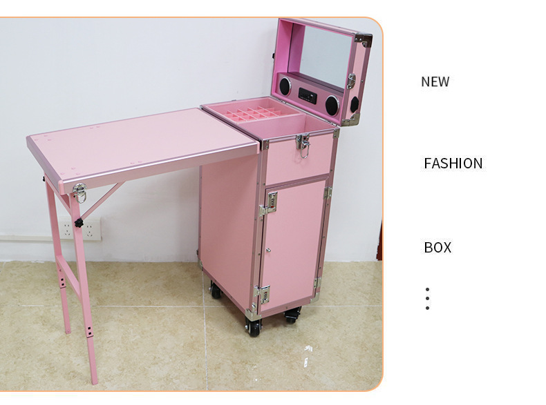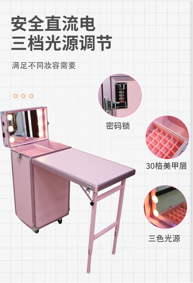 gran capacidad multicapa plegable móvil al aire libre cabina de manicuras mesa bordado caja de herramientas con lámpara batería portátil