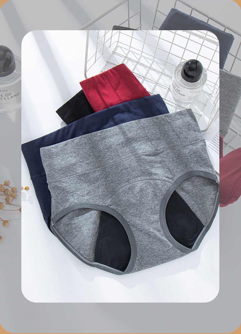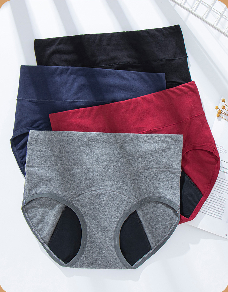 Ropa interior menstrual transfronteriza de gran tamaño para mujeres, período menstrual, seguridad a prueba de fugas, pantalones de tía, período de cintura media, pantalones sanitarios de algodón puro