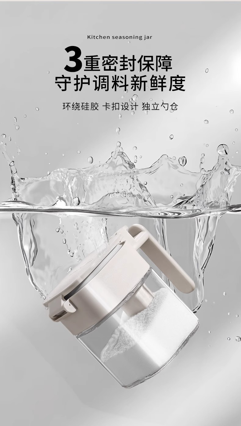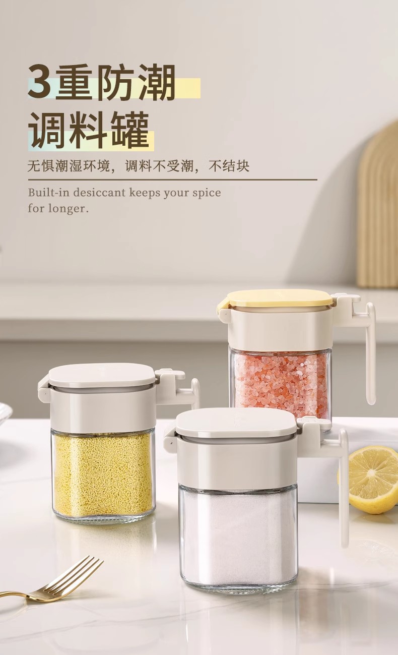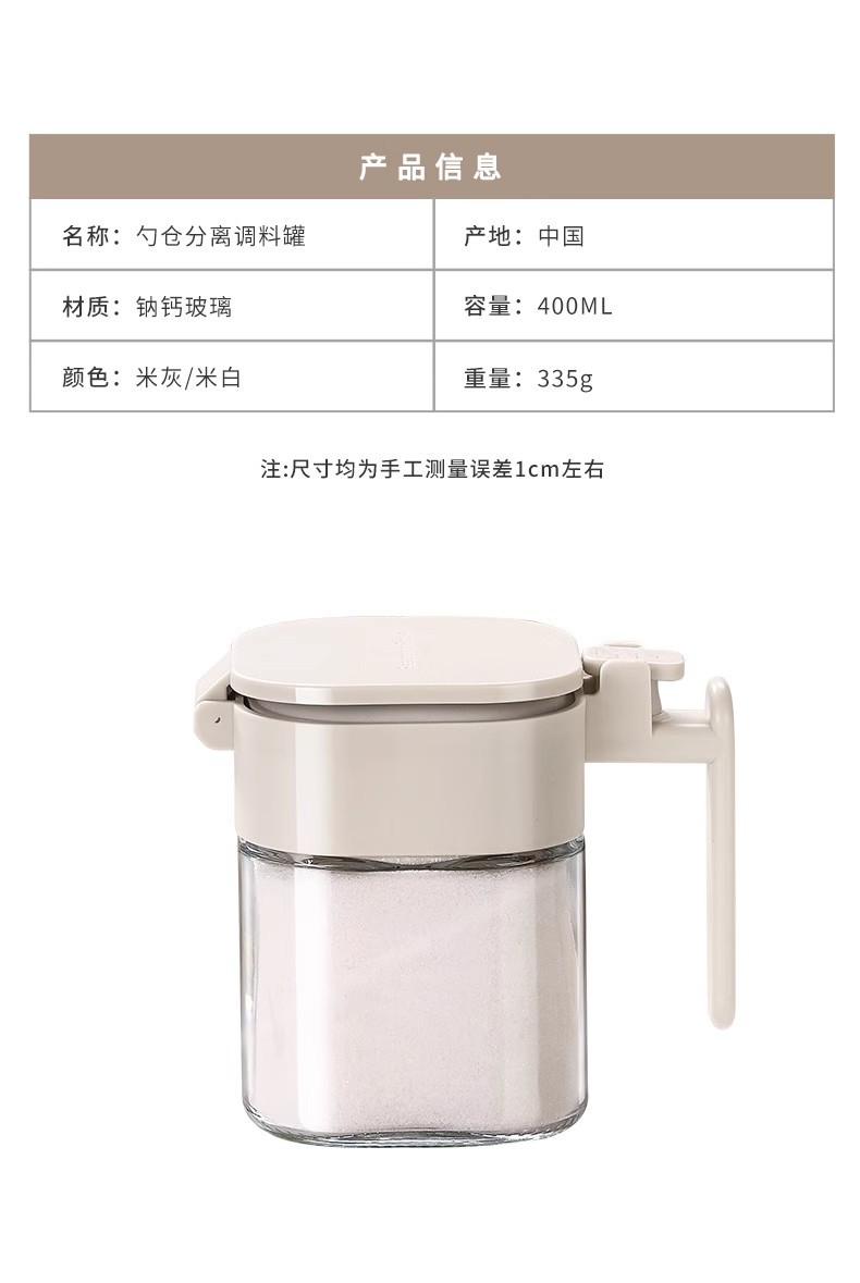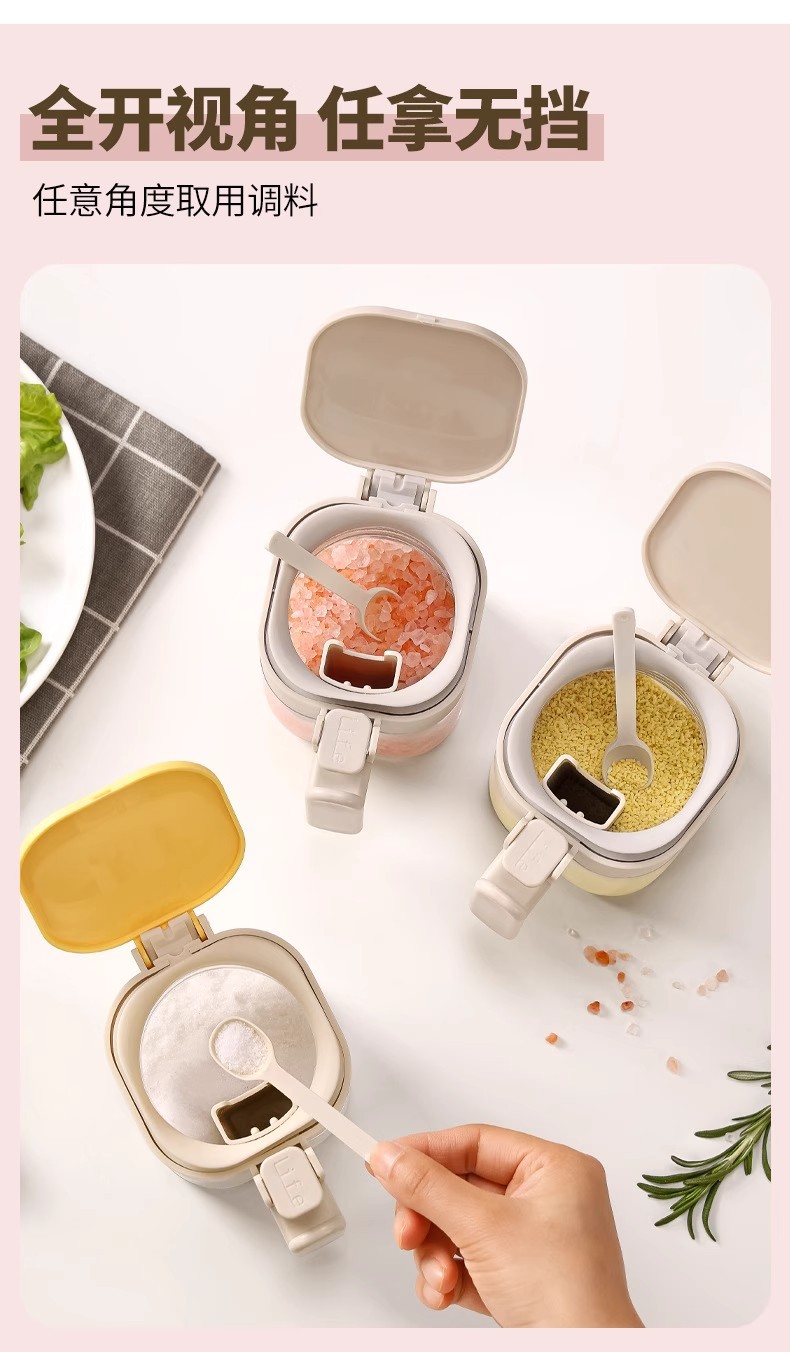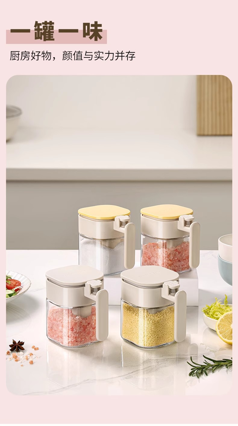 Youqin cuchara silo separación condimento tanque sellado a prueba de humedad condimento caja de sal doméstica de cocina almacenamiento de vidrio condimento botella de lata