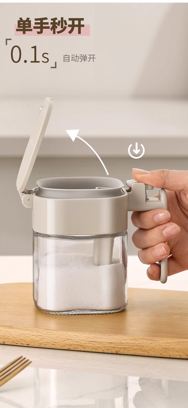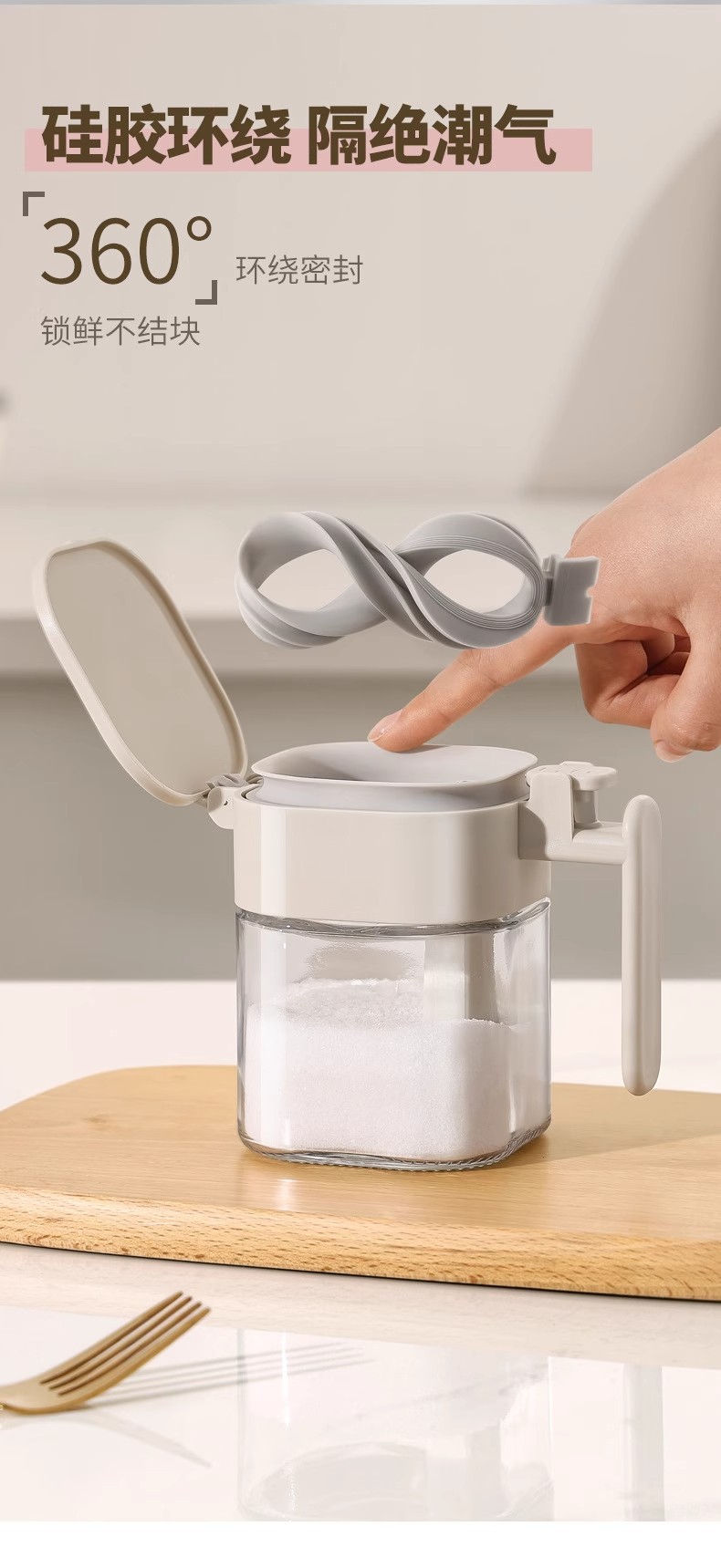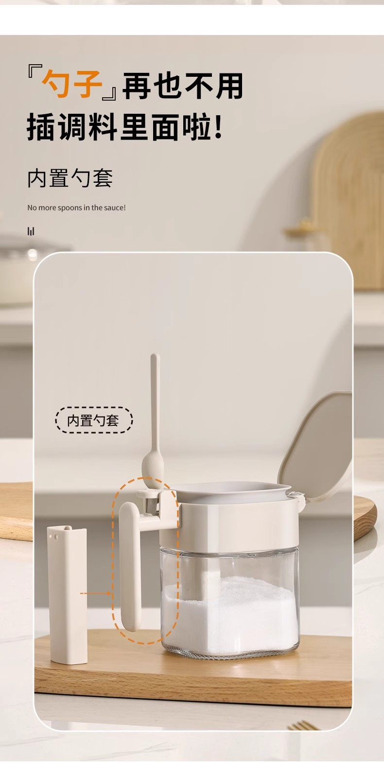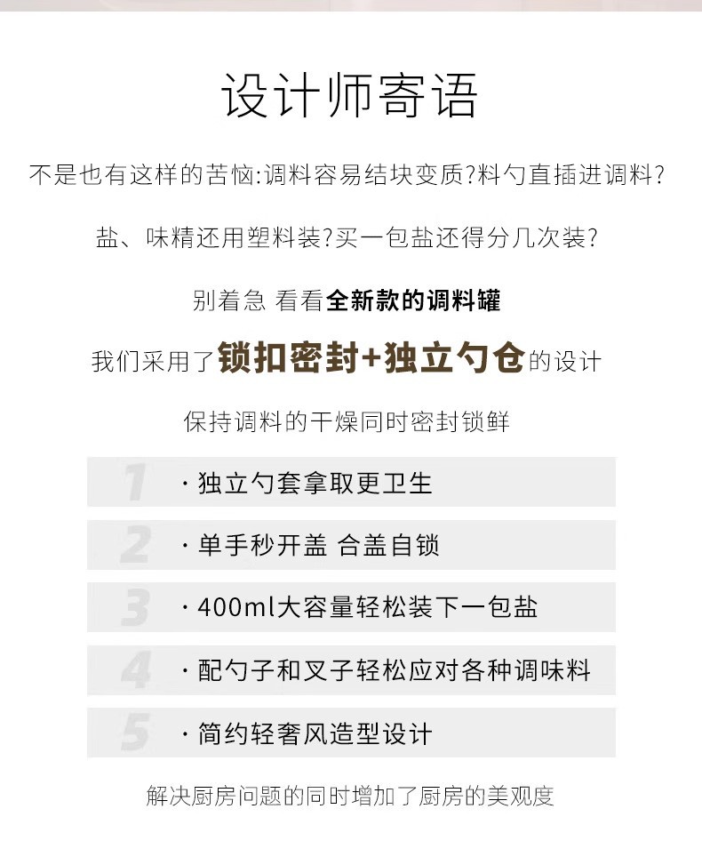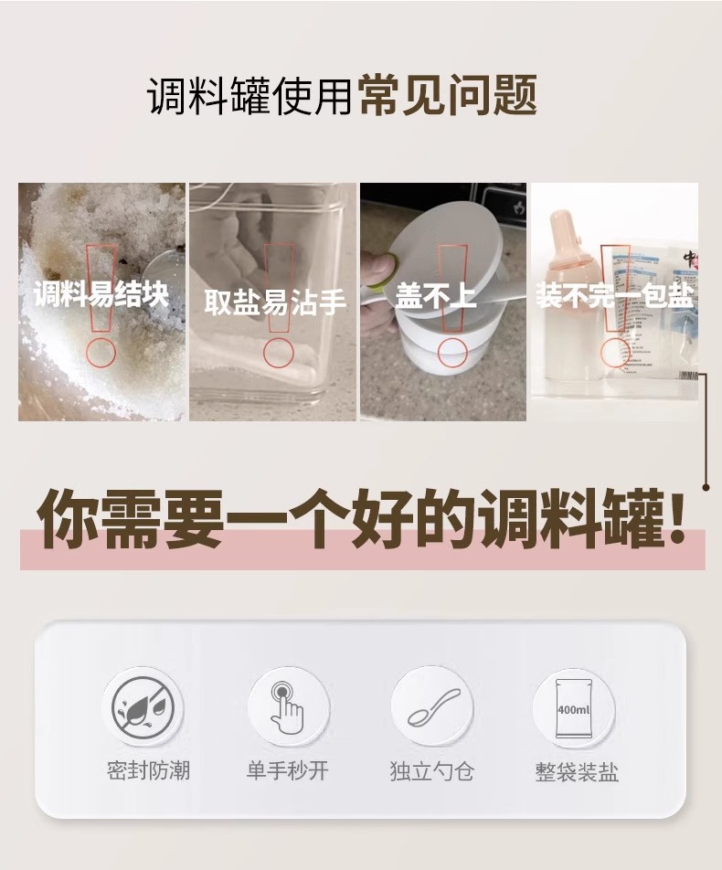 Youqin cuchara silo separación condimento tanque sellado a prueba de humedad condimento caja de sal doméstica de cocina almacenamiento de vidrio condimento botella de lata