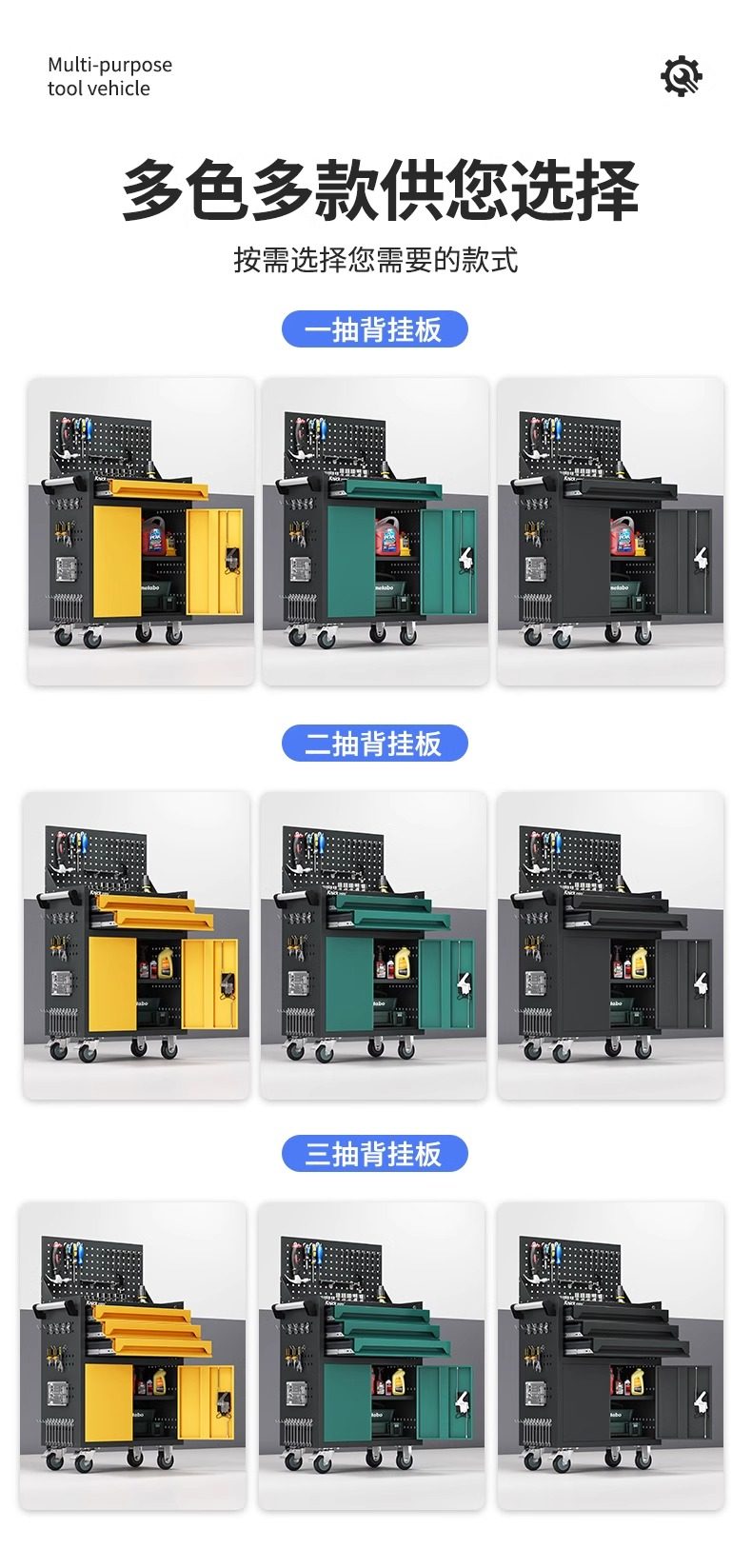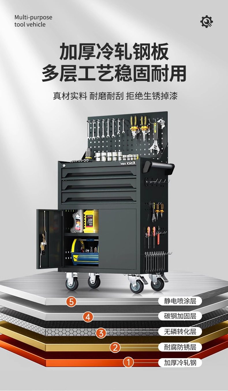 | Nombre del producto | Camión de herramientas de hardware móvil con cajón, carrito de reparación de automóviles Gabinete de almacenamiento multifuncional, Gabinete de herramientas del taller de la fábrica |